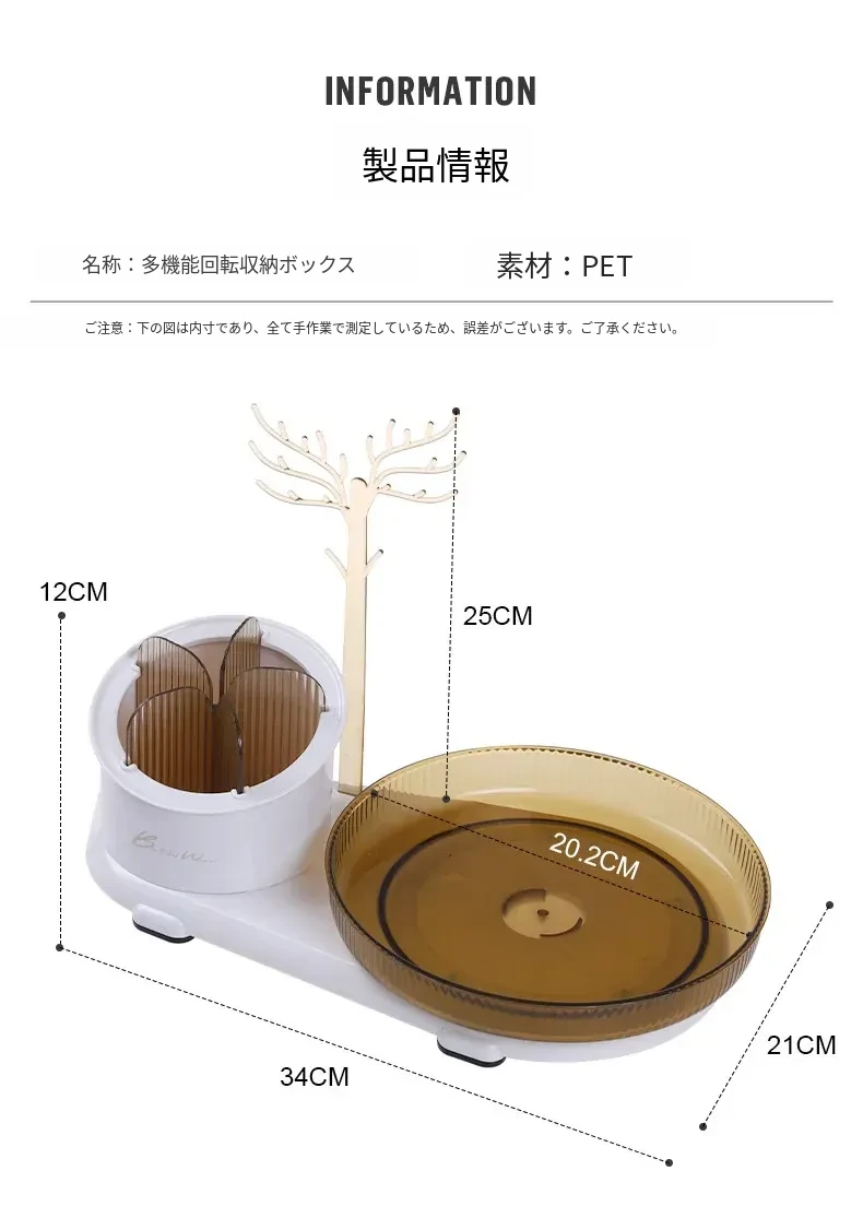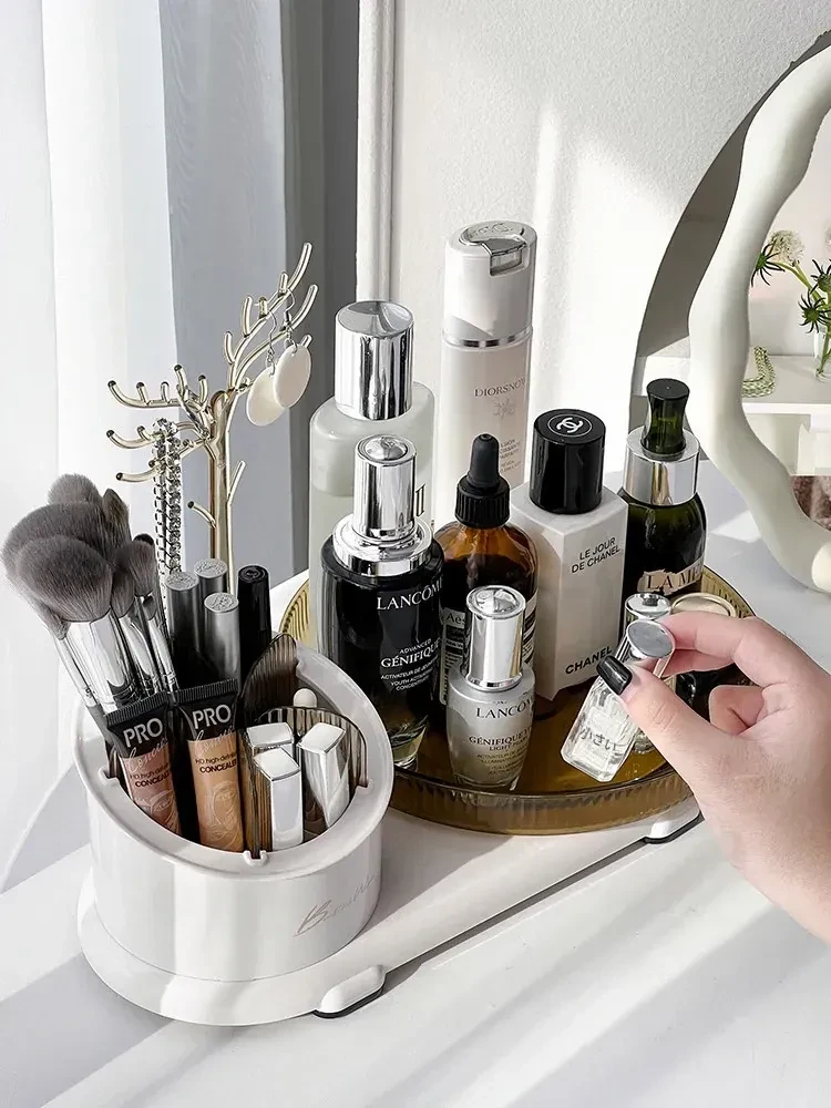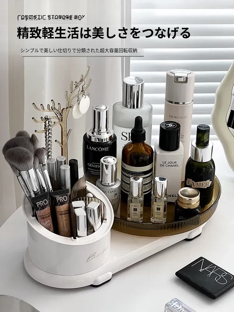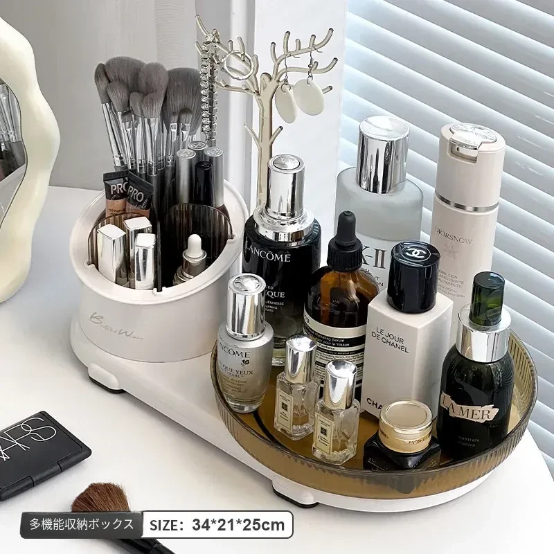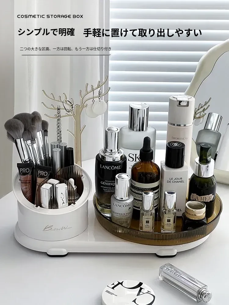 360度回転メイク収納ボックス|デスクトップブラシスタンド|化粧台・スキンケア・香水のトレイ|ジュエリーディスプレイラックでおしゃれに整理整頓!