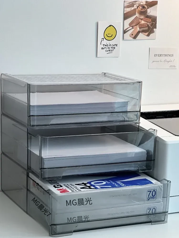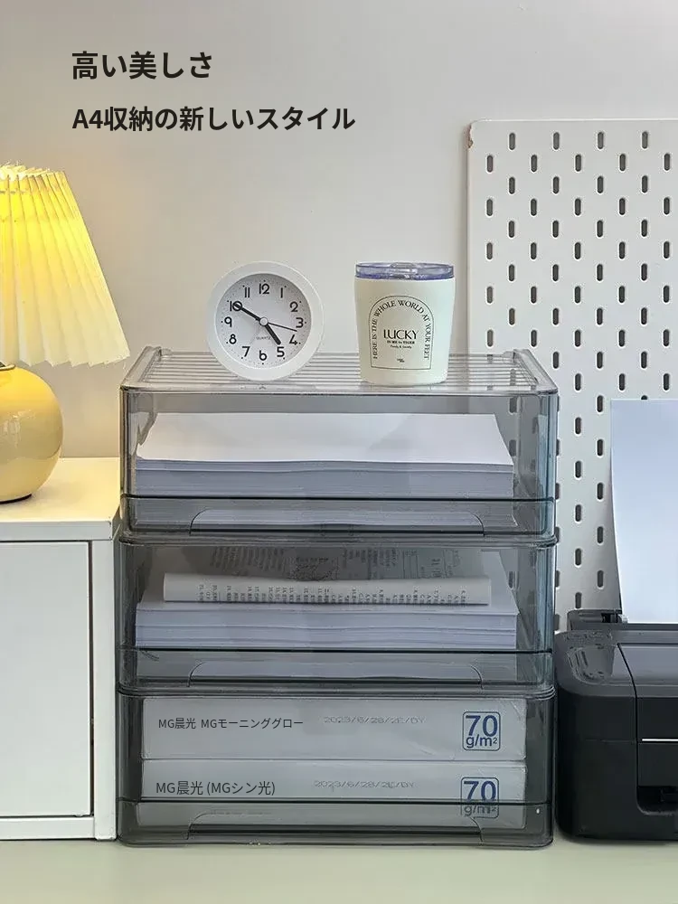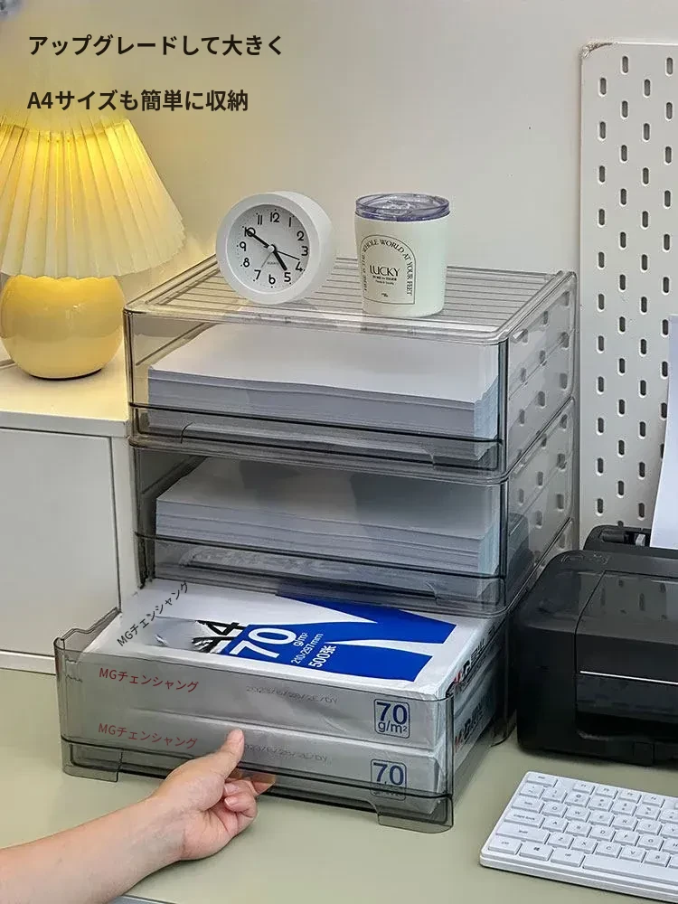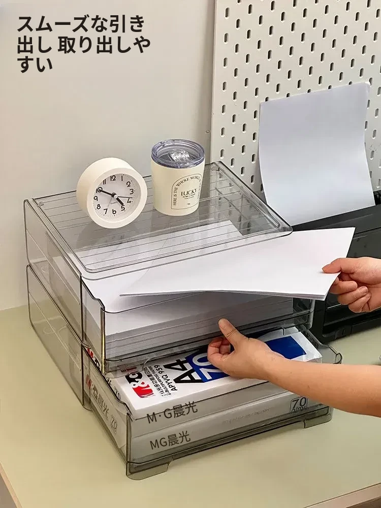 A4プリント用紙収納ボックス - オフィスの引き出し型ファイル整理・デスク上の整理整頓に最適な便利アイテム!効率的にスペースを活用し、作業環境をスッキリ整えましょう!