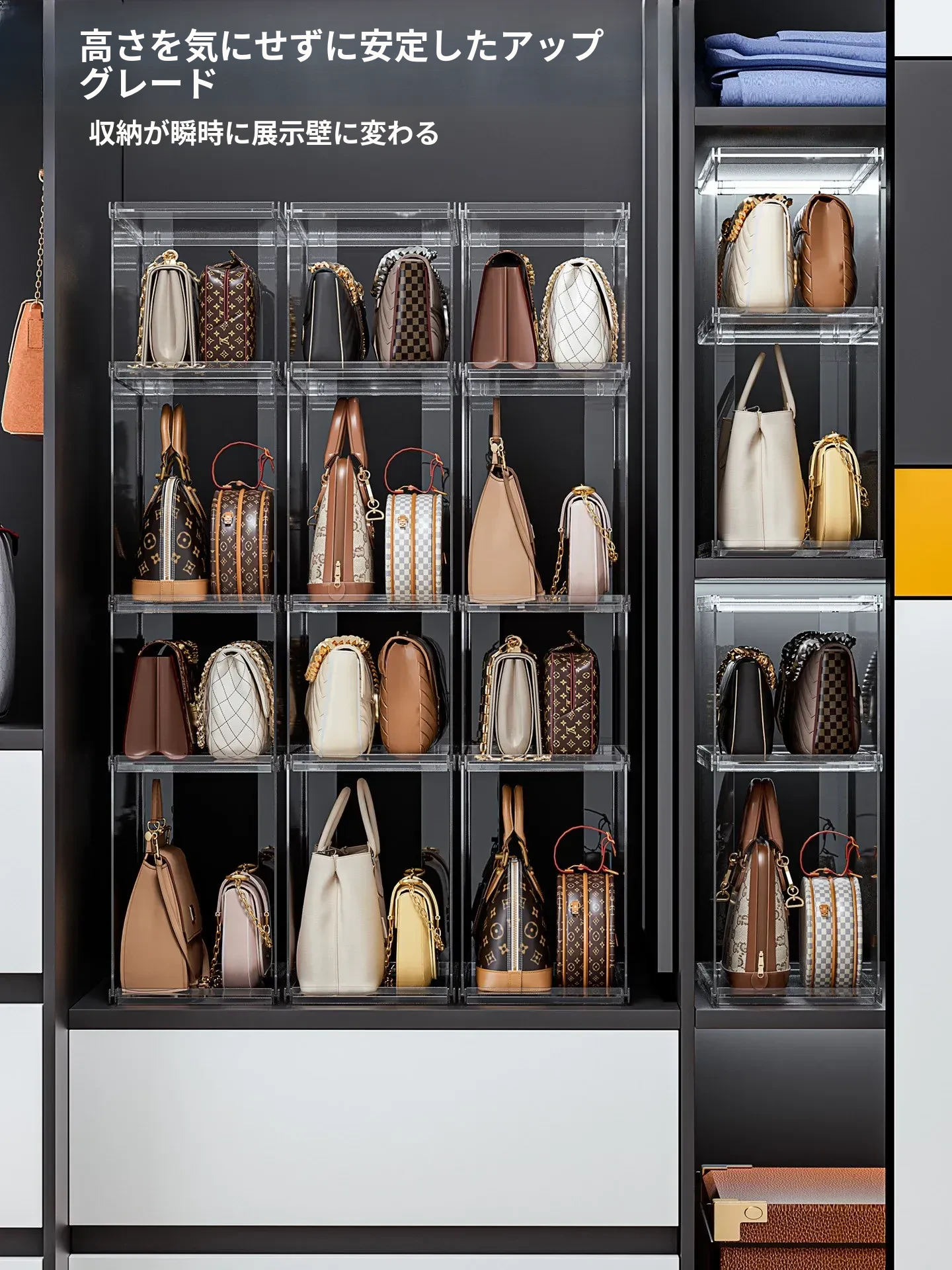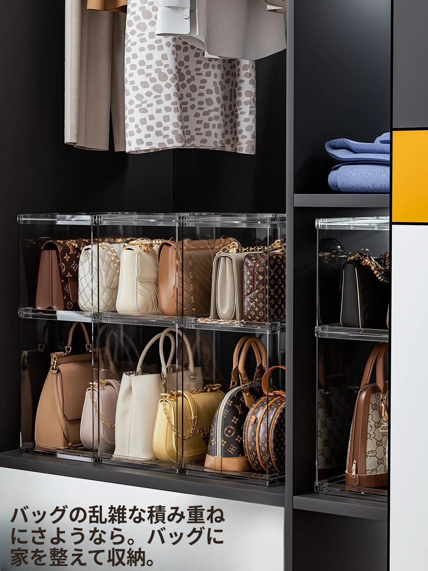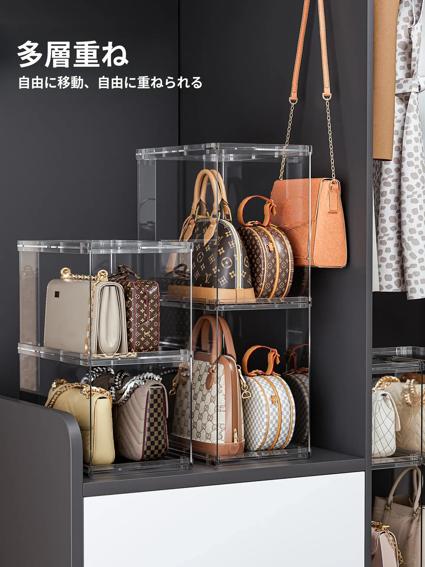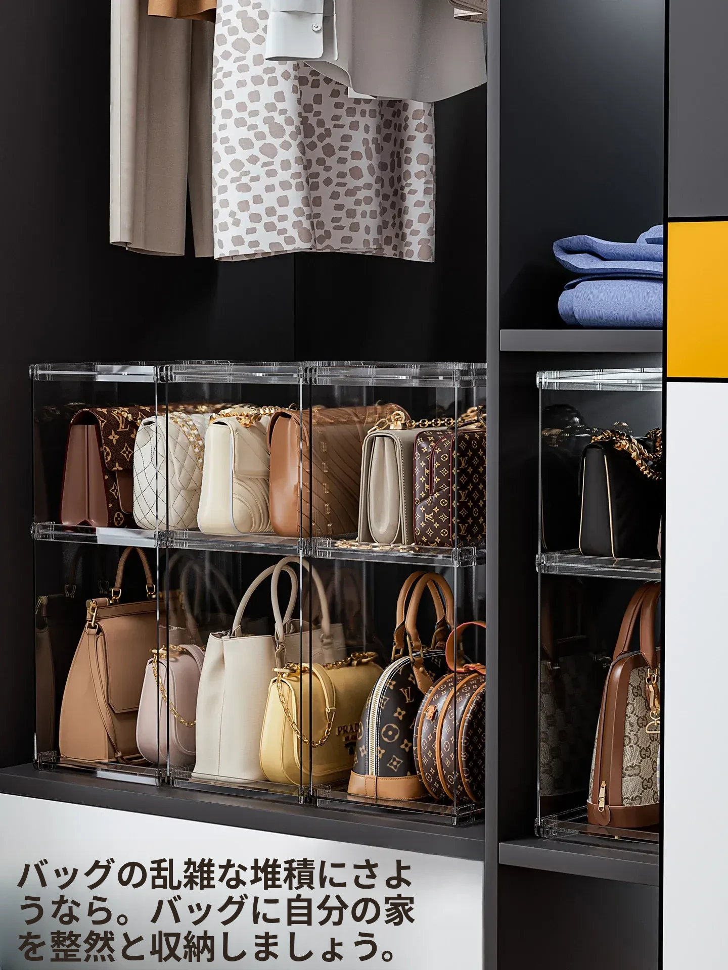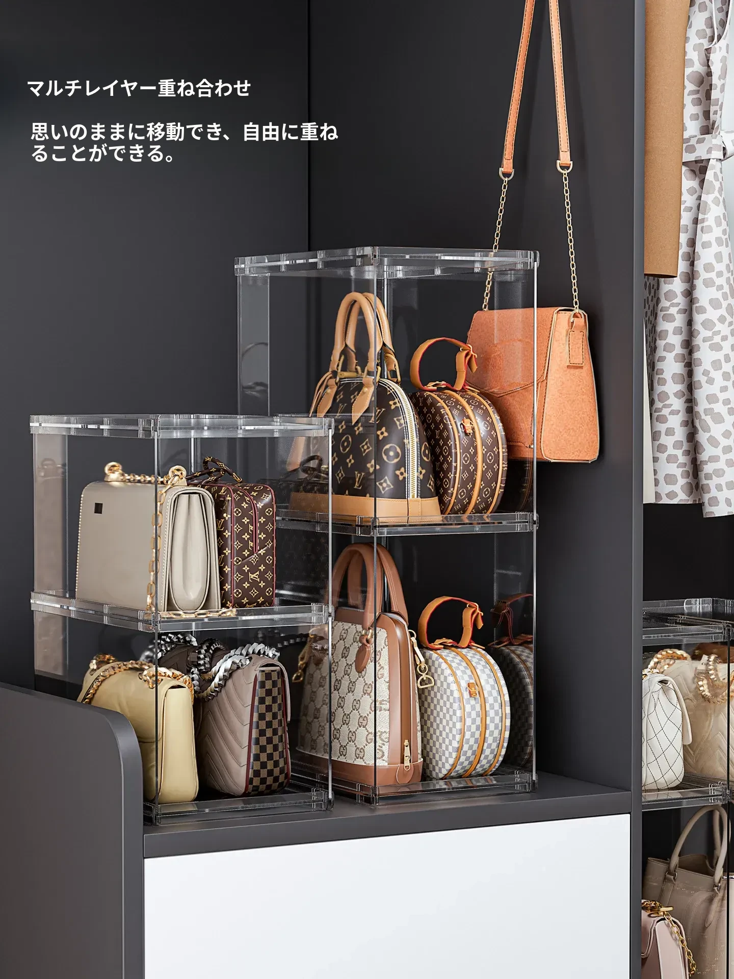 バッグ収納のマジック!アクリル製の家庭用クローゼット小物収納ラック、透明ディスプレイキャビネットで、あなたのバッグを美しく整理整頓。おしゃれで機能的な収納ソリューション!