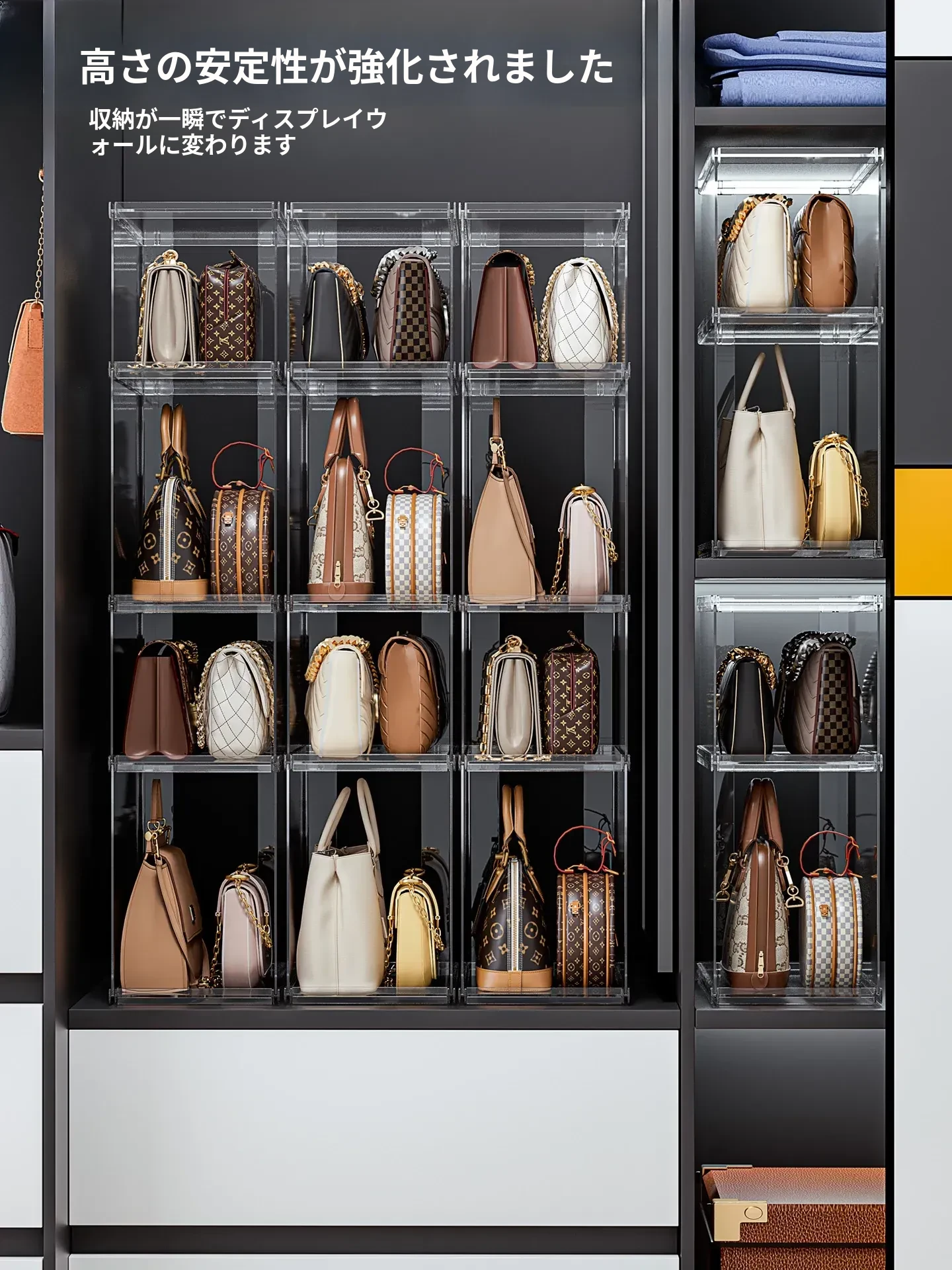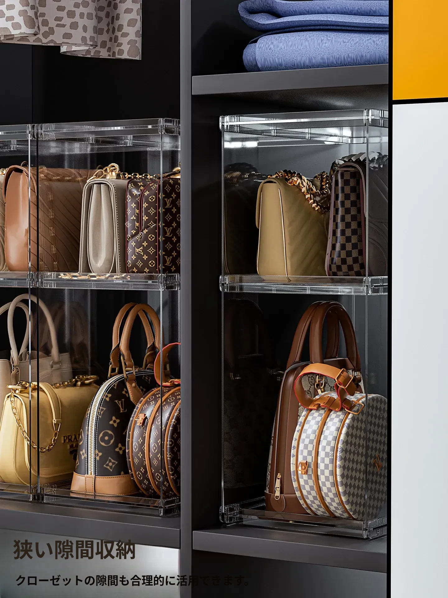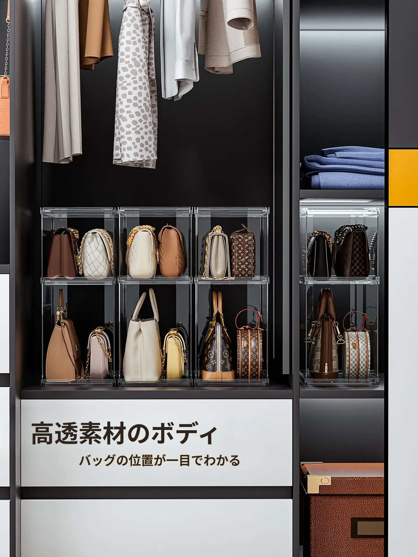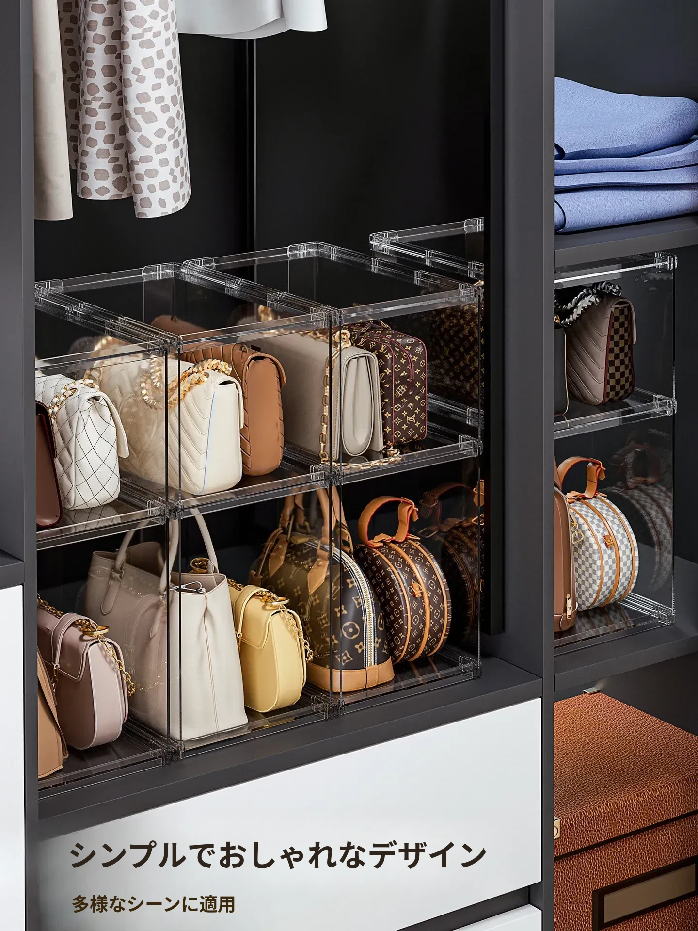 バッグ収納のマジック!アクリル製の家庭用クローゼット小物収納ラック、透明ディスプレイキャビネットで、あなたのバッグを美しく整理整頓。おしゃれで機能的な収納ソリューション!