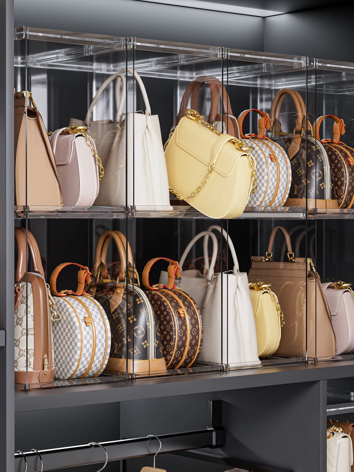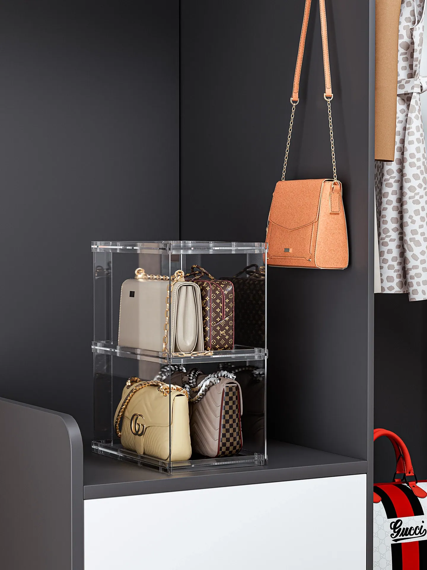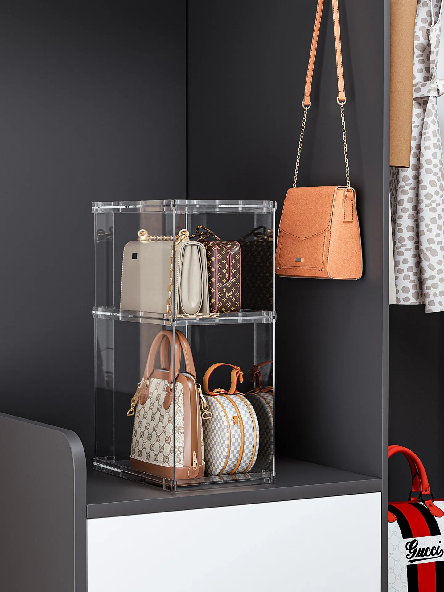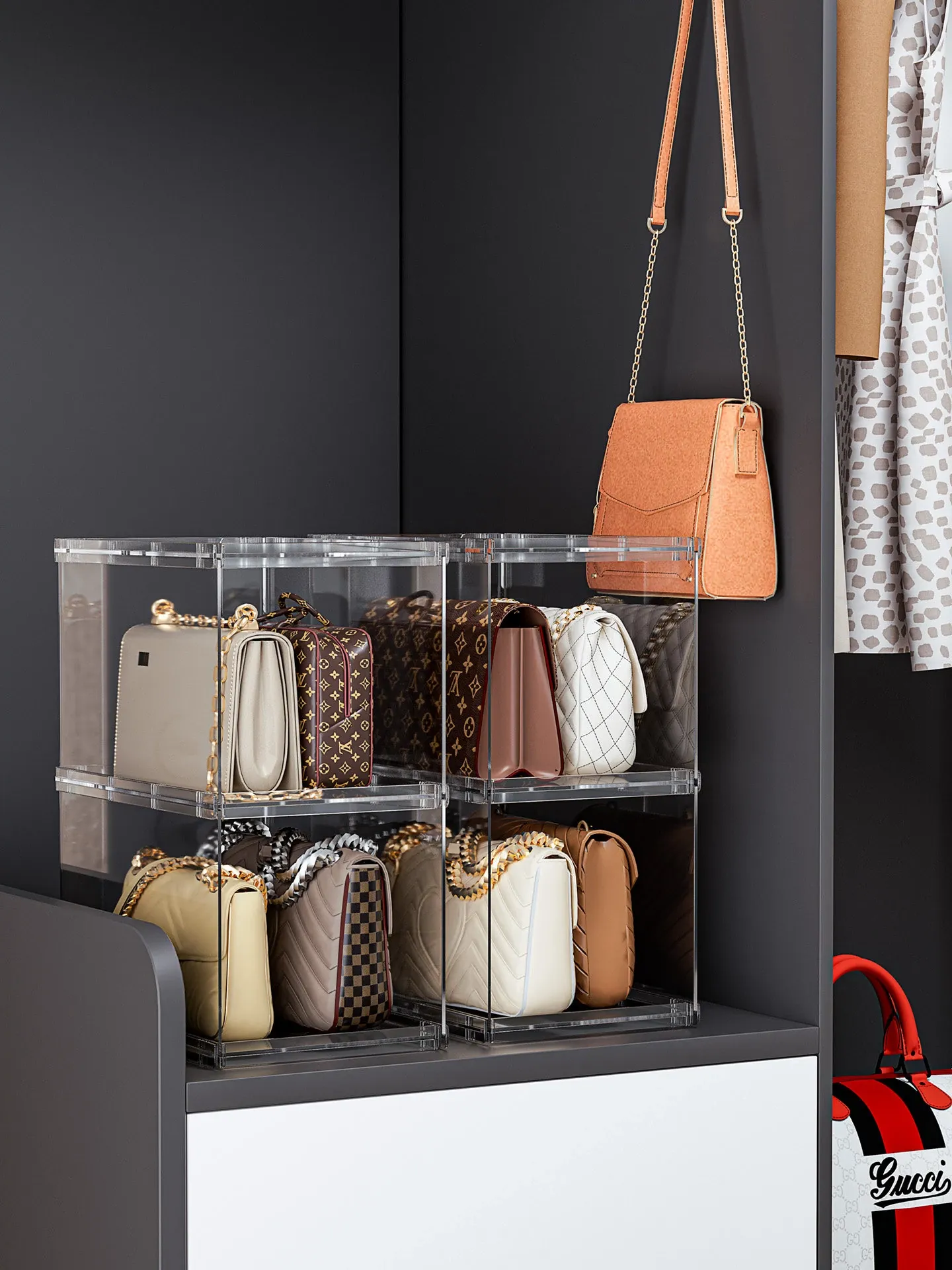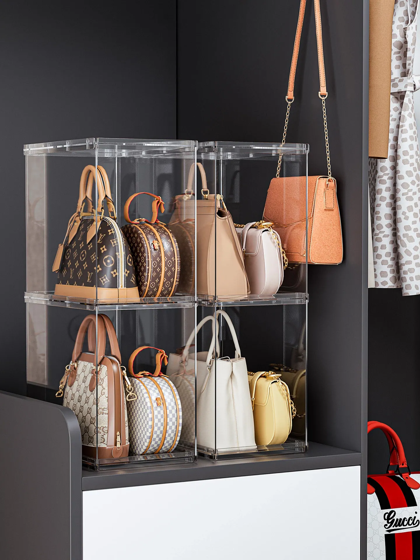バッグ収納のマジック!アクリル製の家庭用クローゼット小物収納ラック、透明ディスプレイキャビネットで、あなたのバッグを美しく整理整頓。おしゃれで機能的な収納ソリューション!