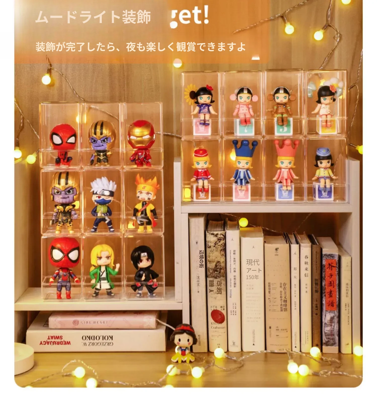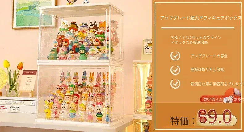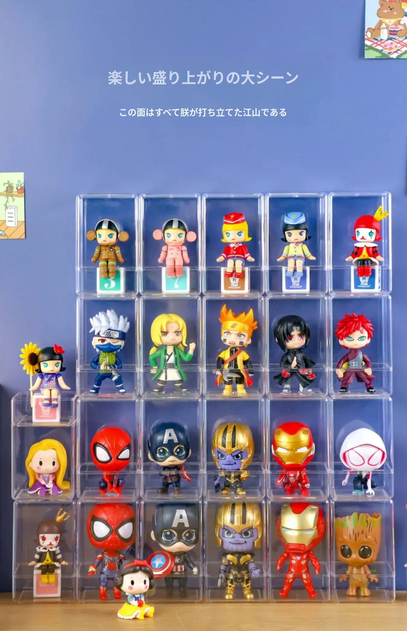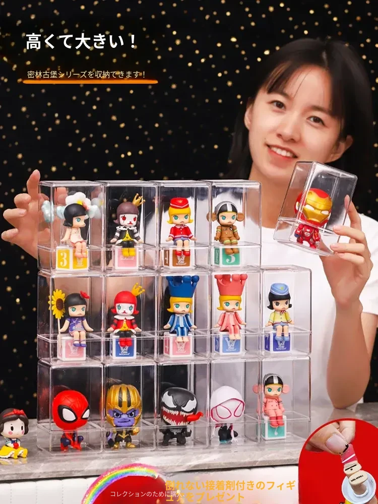 アクリル製ブラインドボックス収納ディスプレイラック 大型ポップマート展示ボックス フィギュア用透明防塵ディスプレイキャビネット 寝室にもぴったり!あなたのコレクションを美しく保護し、魅力的に見せる!