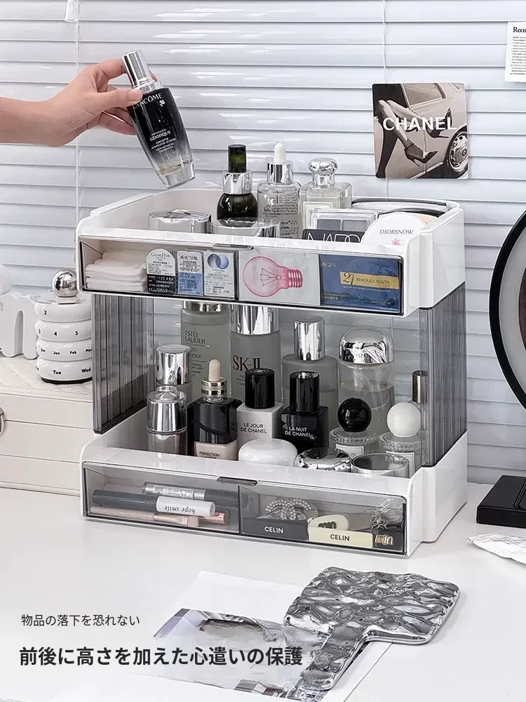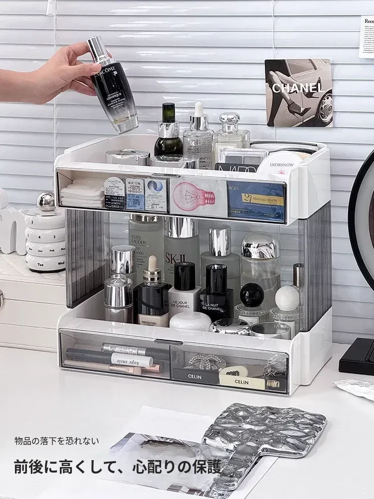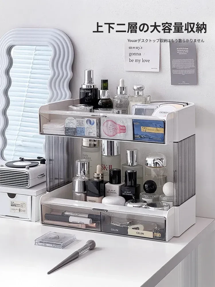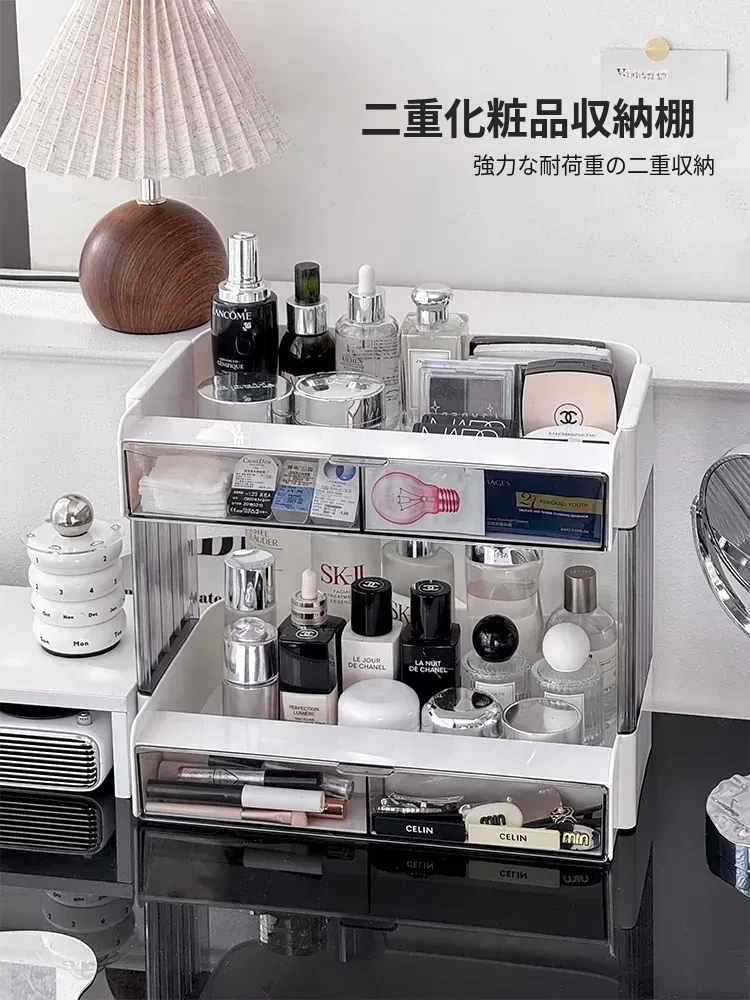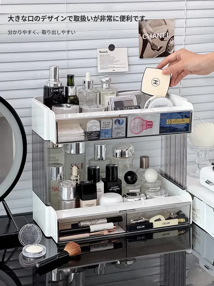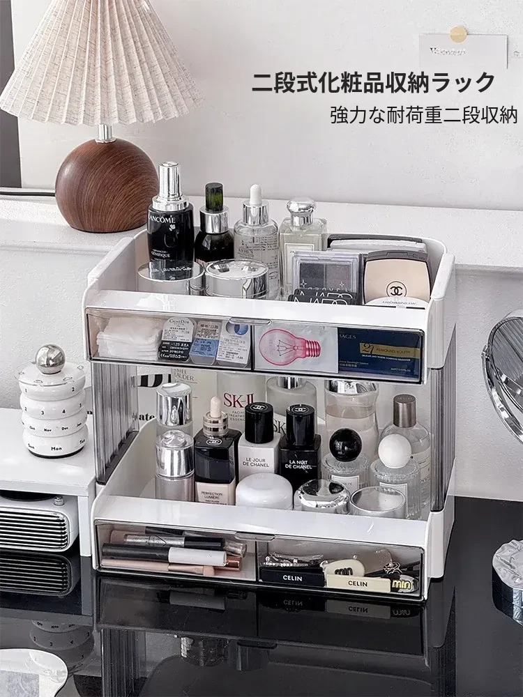 大容量アクリル化粧品収納ラック - デスクトップ用スキンケア・香水整理ボックス、メイク台にぴったりのリップスタンド!美しさをいつでも手元に。