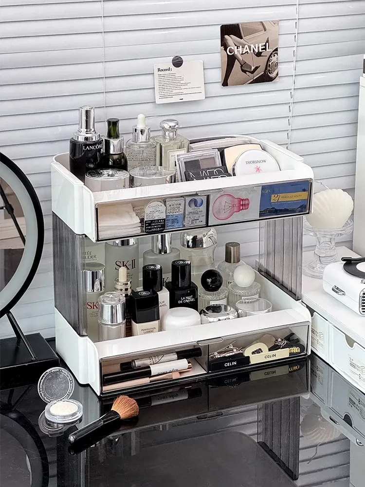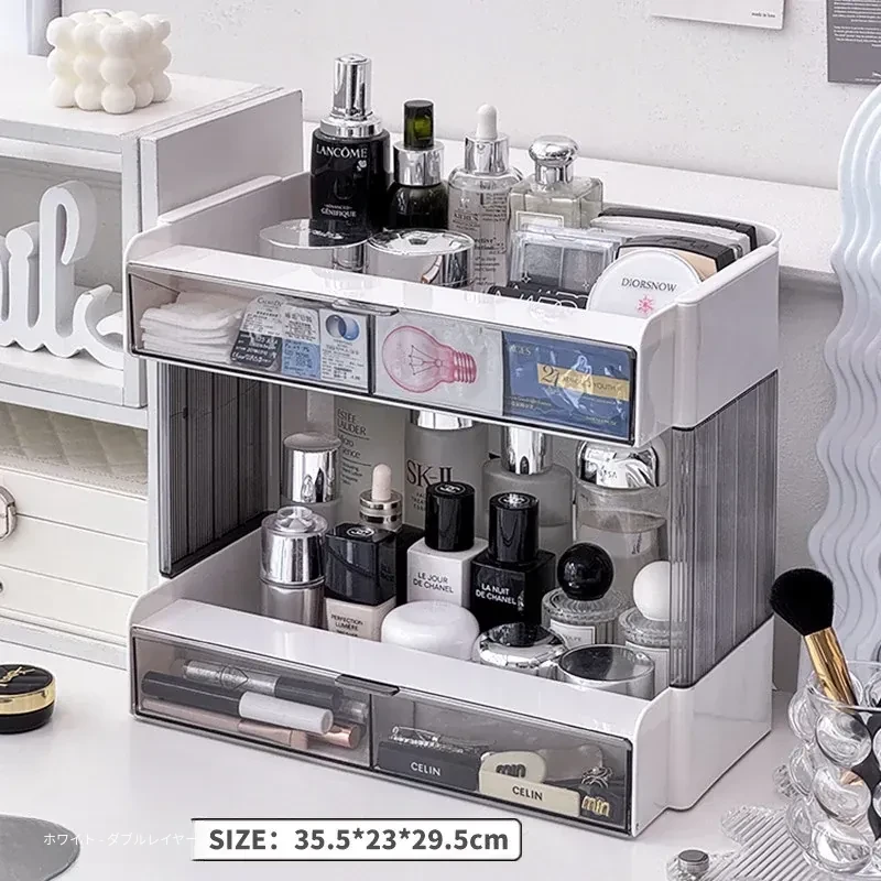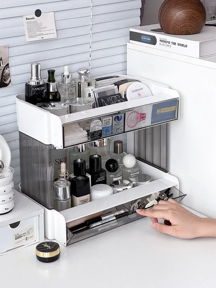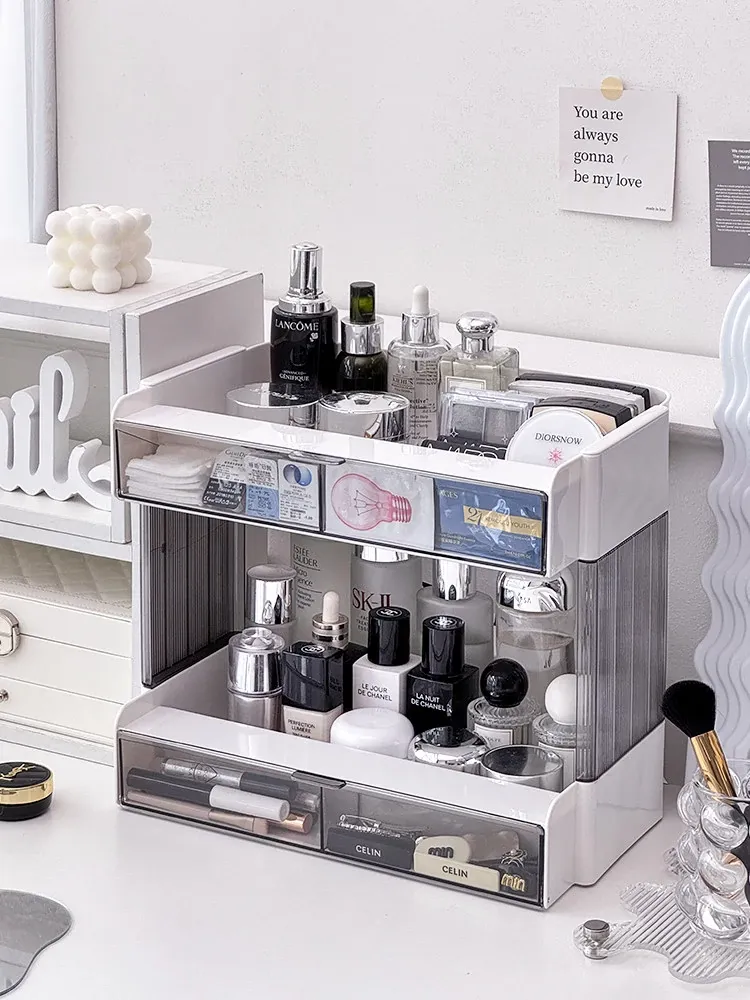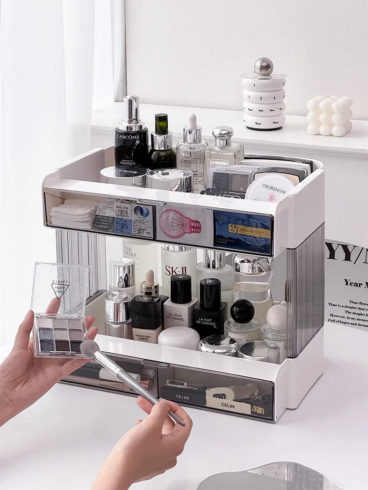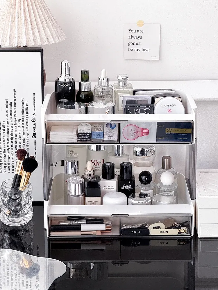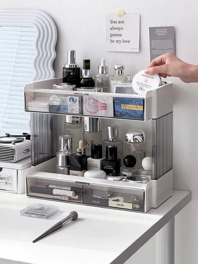 大容量アクリル化粧品収納ラック - デスクトップ用スキンケア・香水整理ボックス、メイク台にぴったりのリップスタンド!美しさをいつでも手元に。