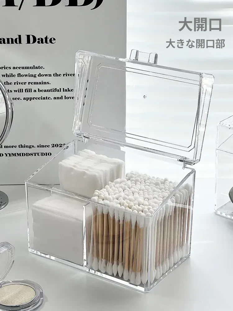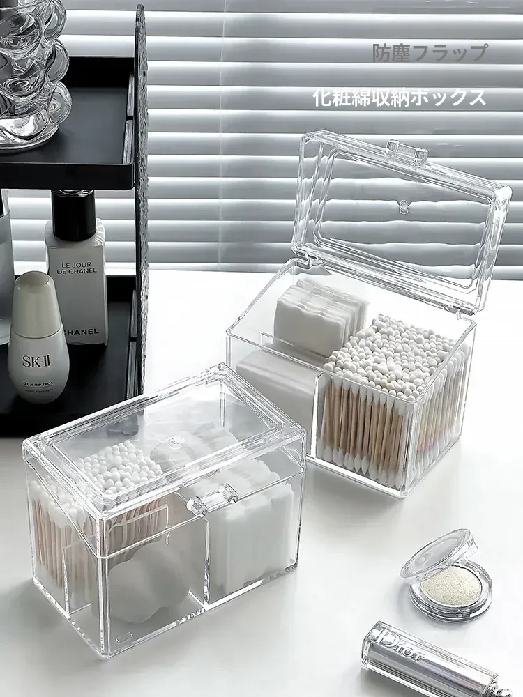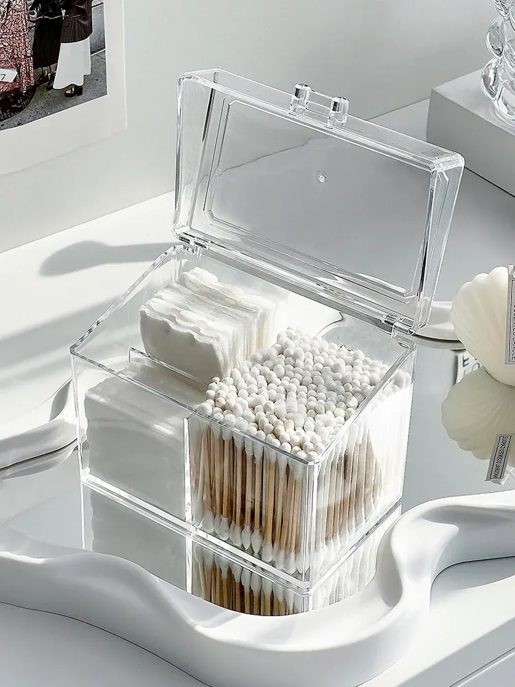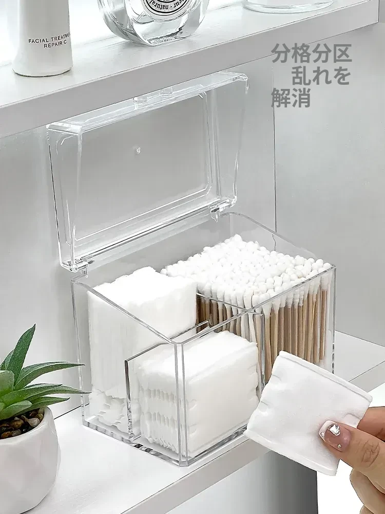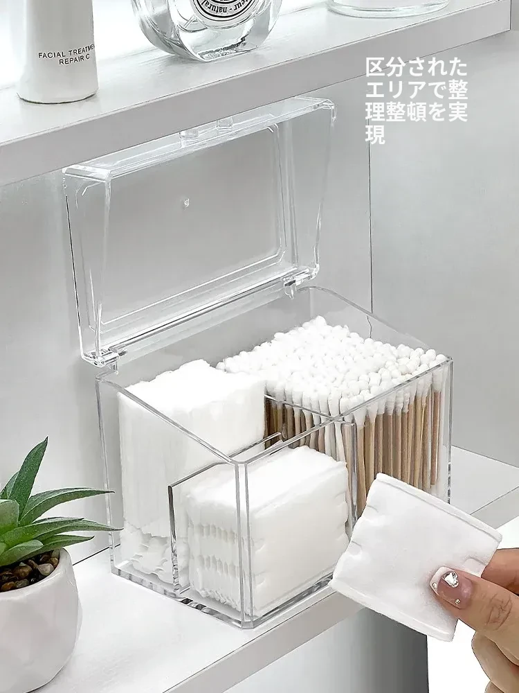 アクリル製コットンティッシュ収納ボックス - 美容院向けの蓋付きメイクアップコットンケース、化粧台にぴったりなクリーンでスタイリッシュなデザイン!おしゃれに整理整頓して、メイクアップをもっと楽しく!