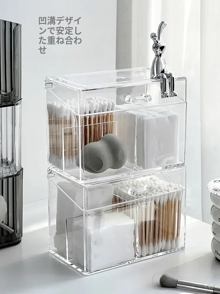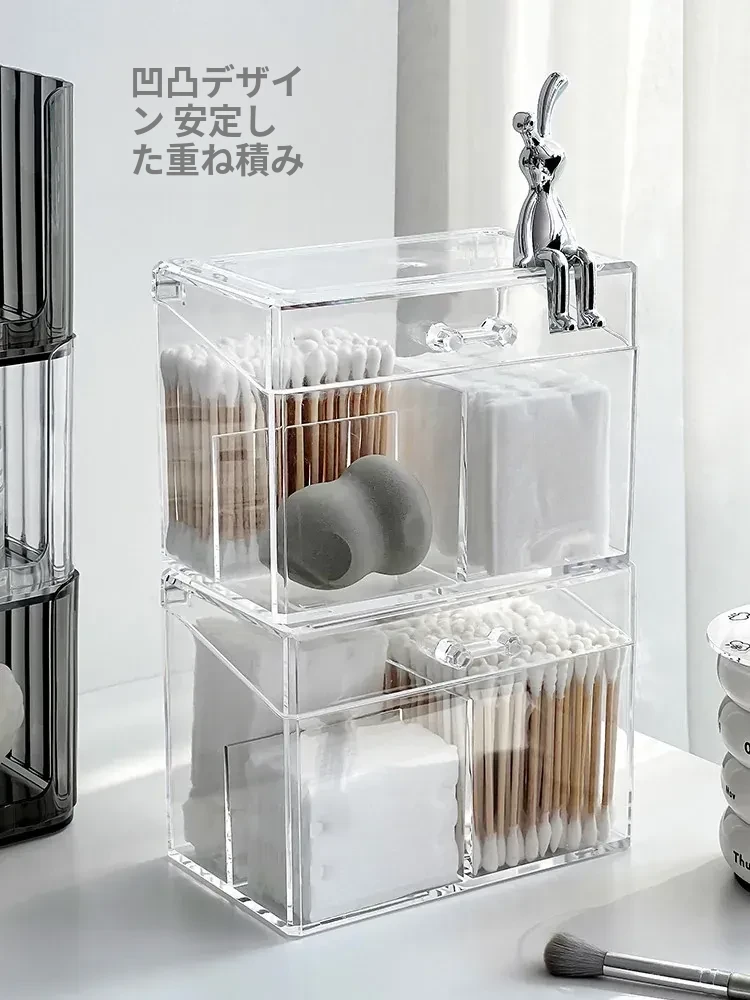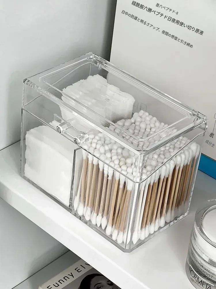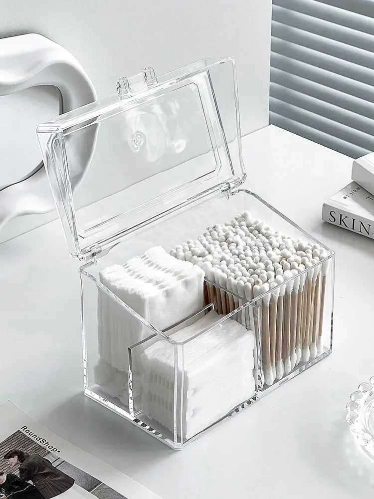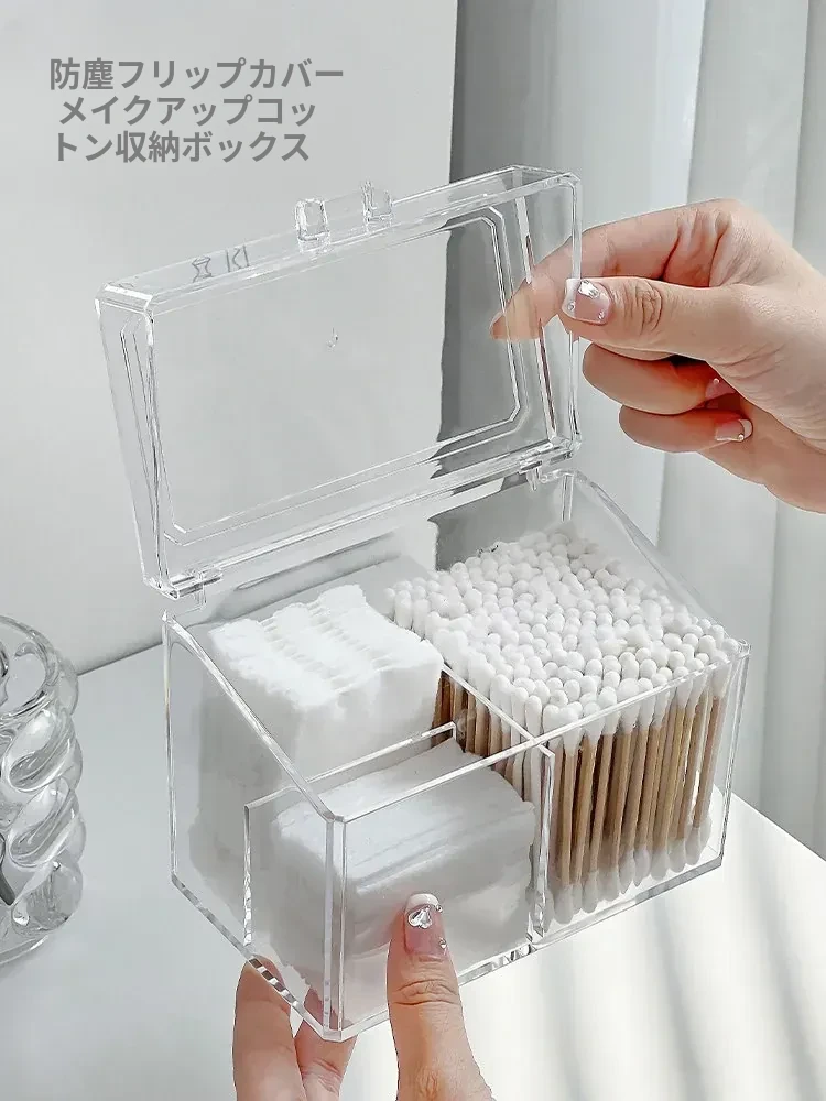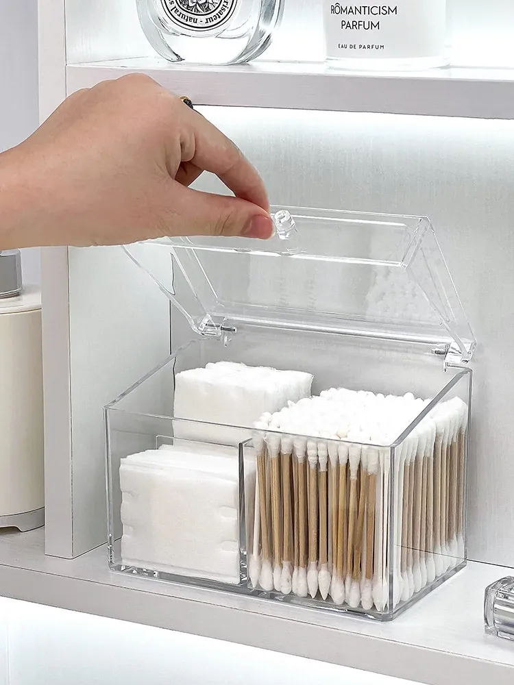アクリル製コットンティッシュ収納ボックス - 美容院向けの蓋付きメイクアップコットンケース、化粧台にぴったりなクリーンでスタイリッシュなデザイン!おしゃれに整理整頓して、メイクアップをもっと楽しく!