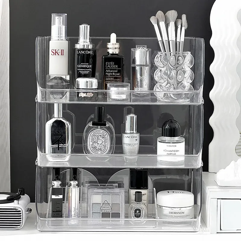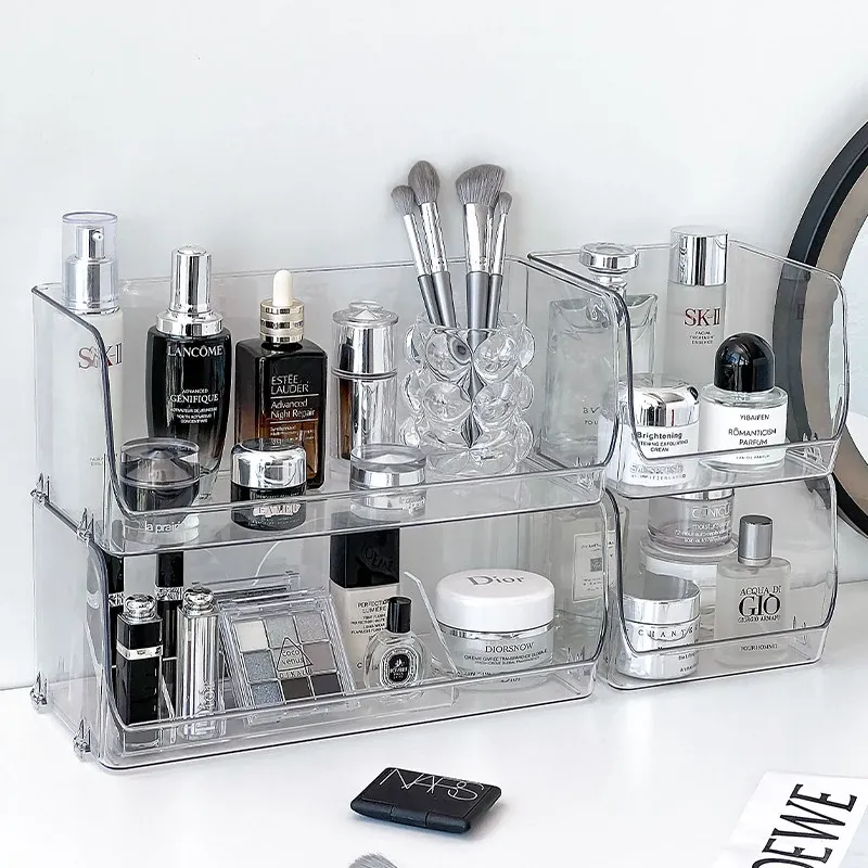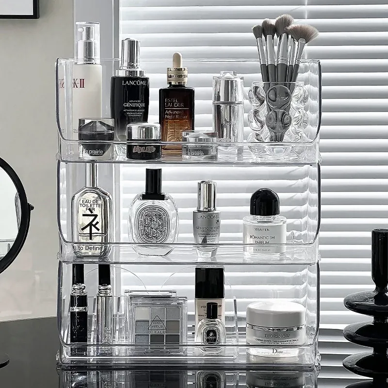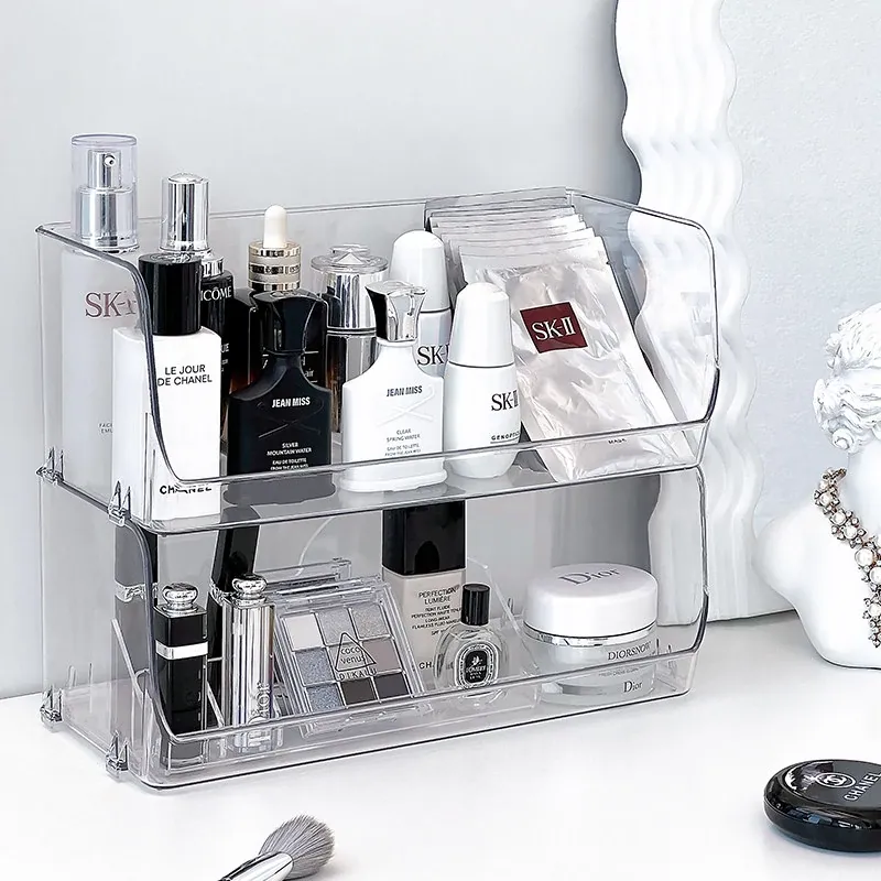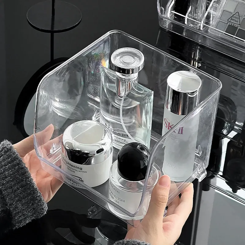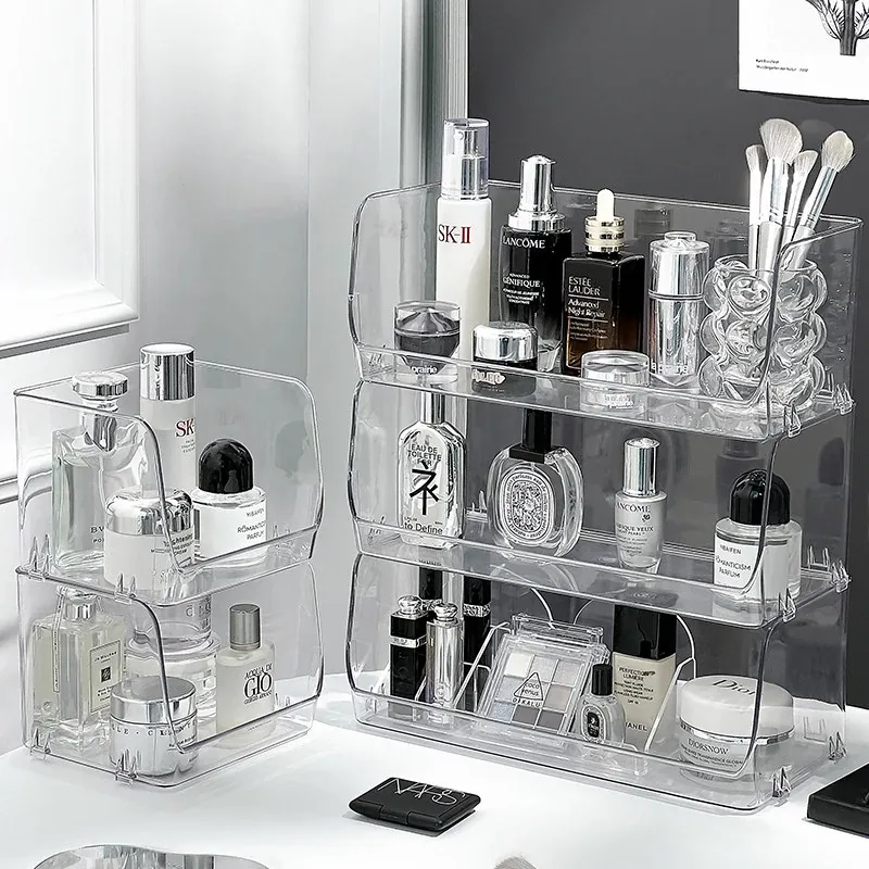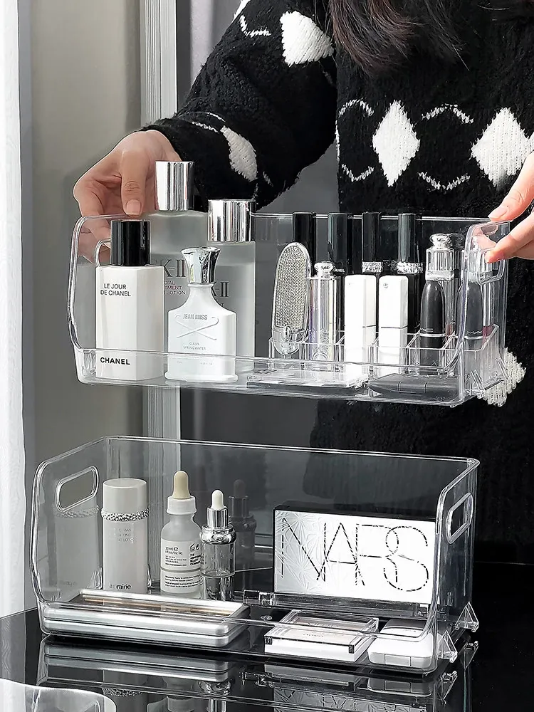 デスクトップ化粧品収納ボックス メイクアップ台 スキンケアアイテム用ラック アクリル製 バスルーム洗面台の小物入れ 整理整頓で美しさを保つ!