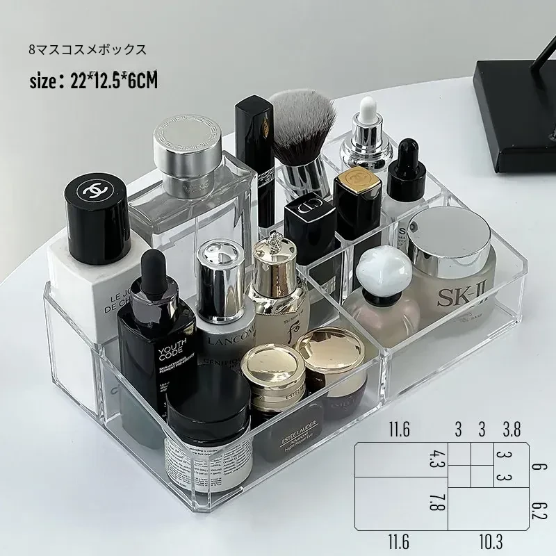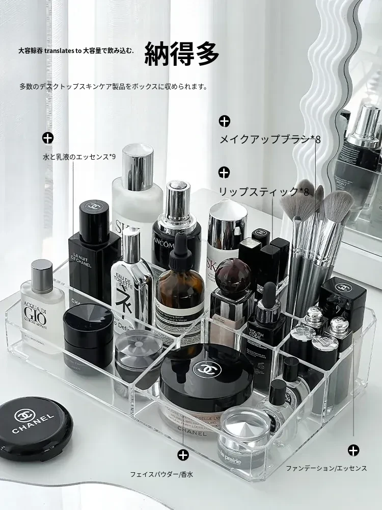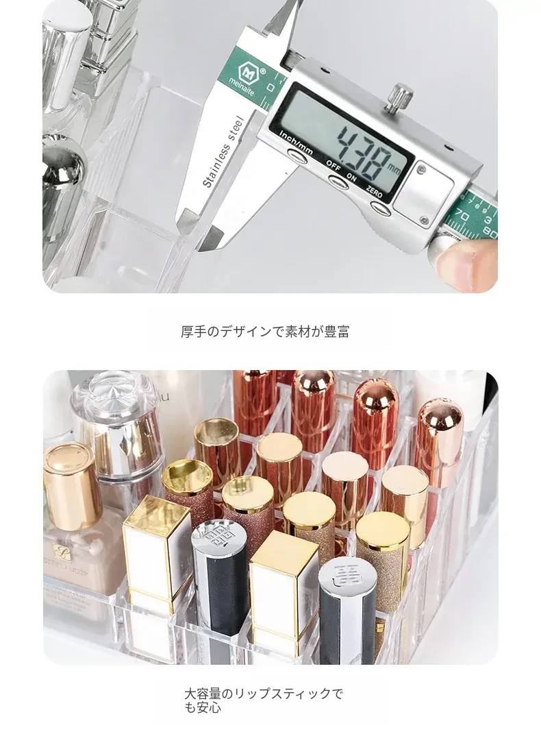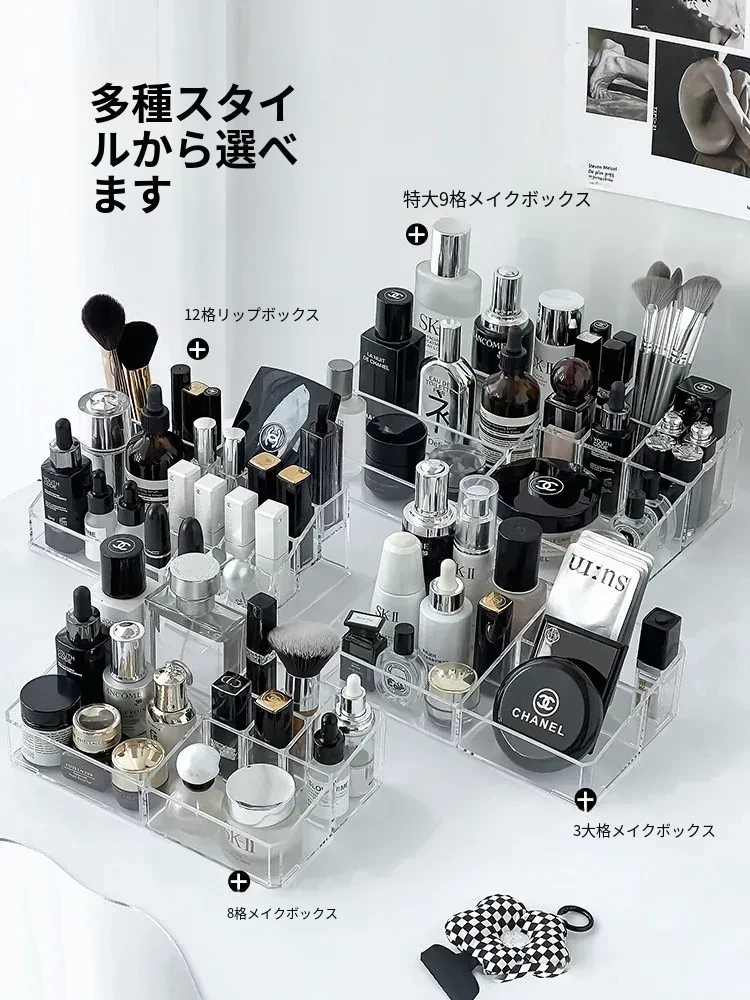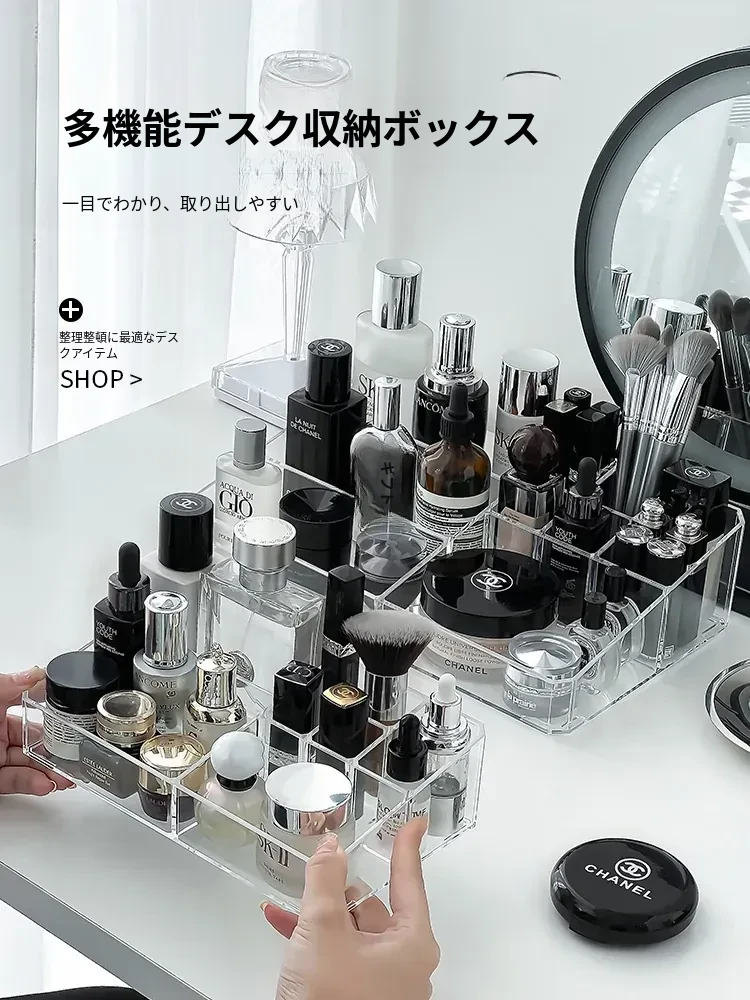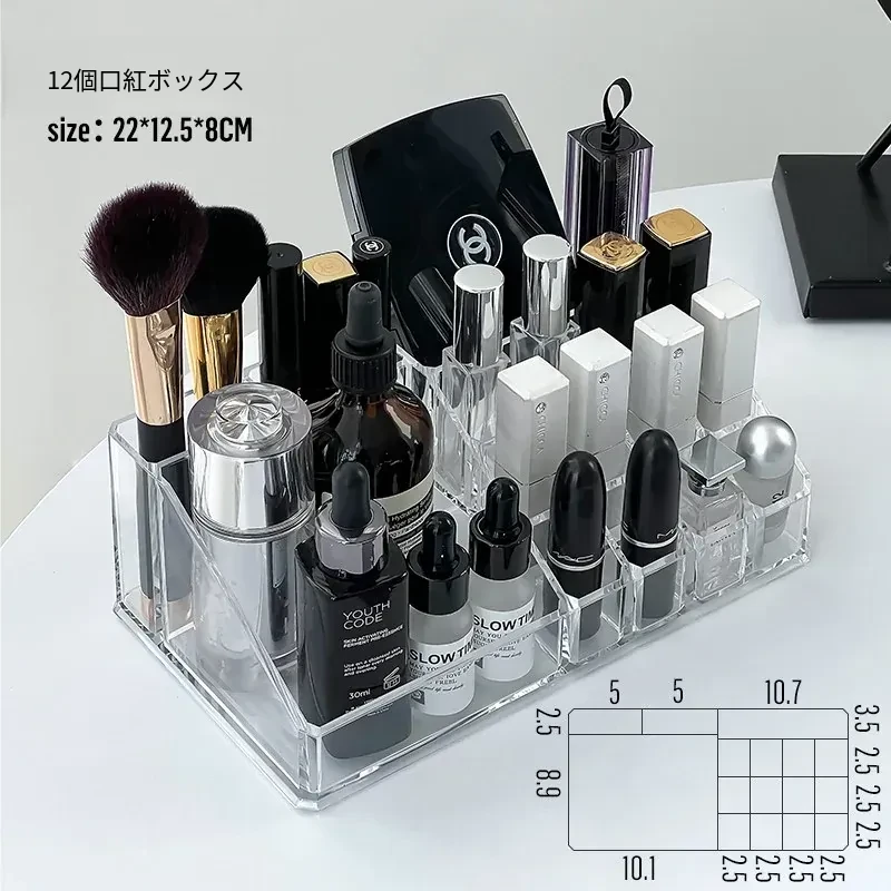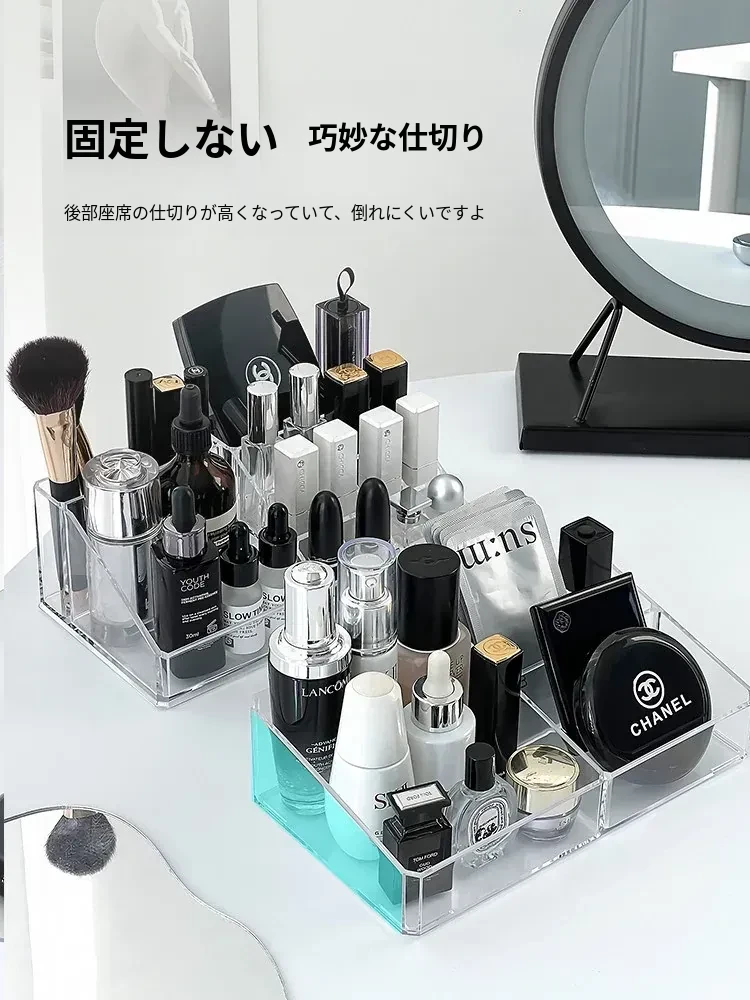 デスクトップ化粧品収納ボックス メイク台用スキンケア用品ラック アクリル製 透明仕切りのリップケース 宿舎にもぴったり!整理整頓で美しさを引き立てるアイテム!