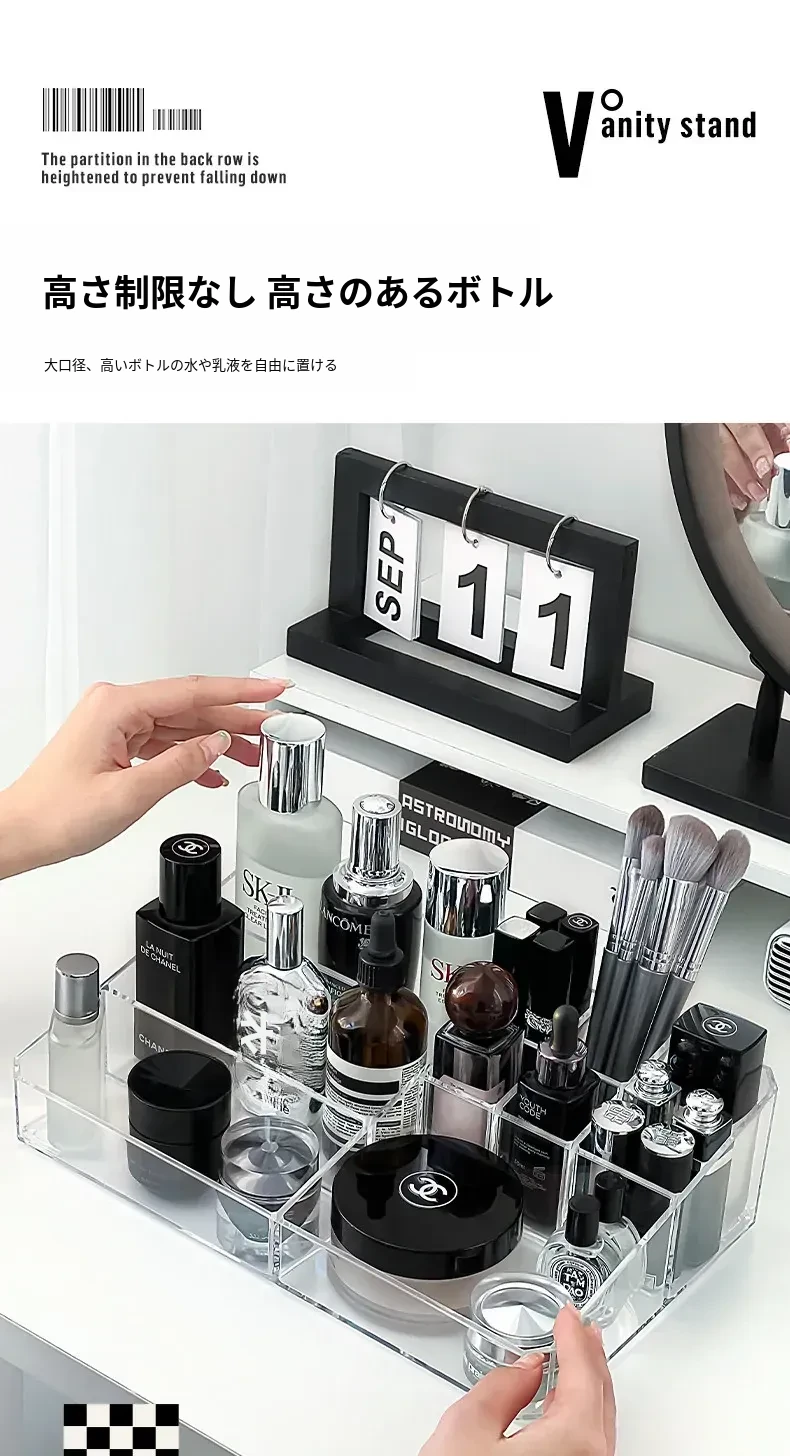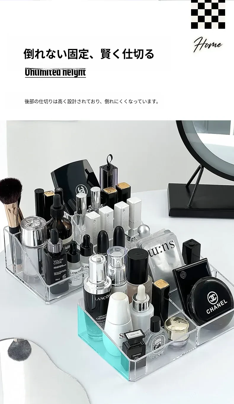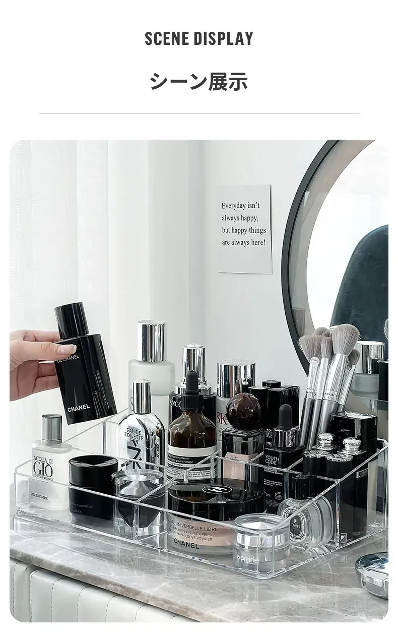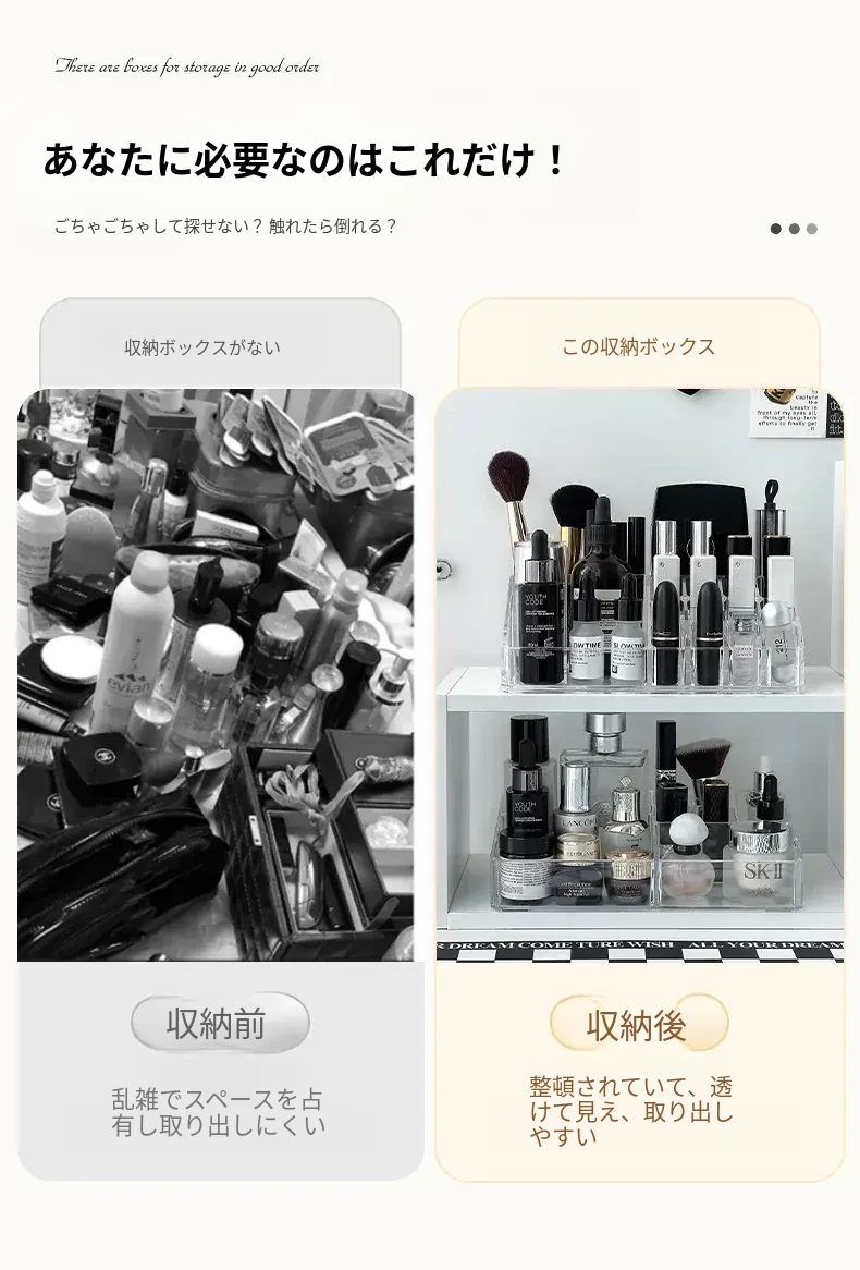 デスクトップ化粧品収納ボックス メイク台用スキンケア用品ラック アクリル製 透明仕切りのリップケース 宿舎にもぴったり!整理整頓で美しさを引き立てるアイテム!