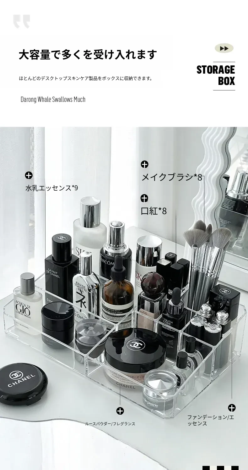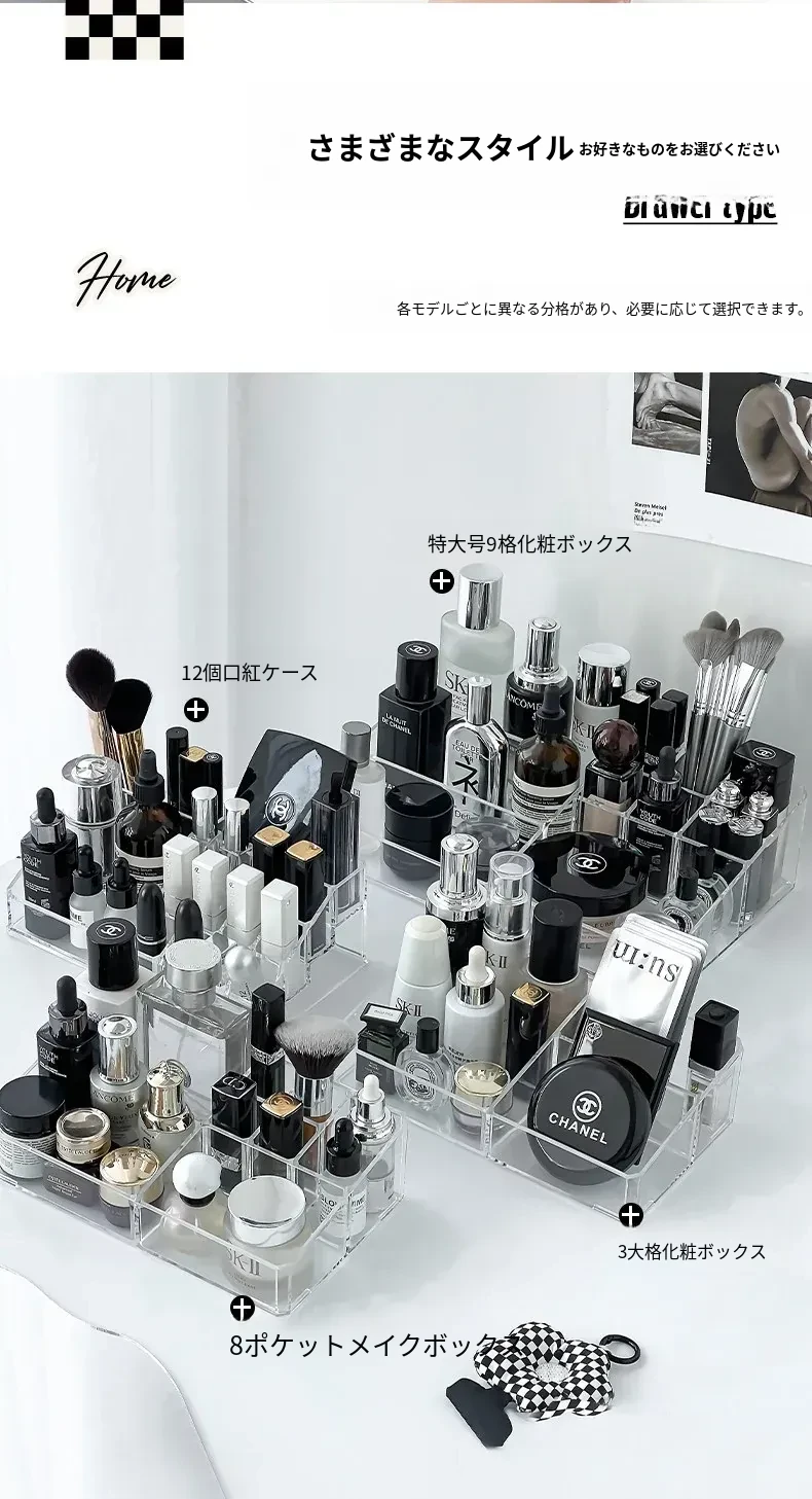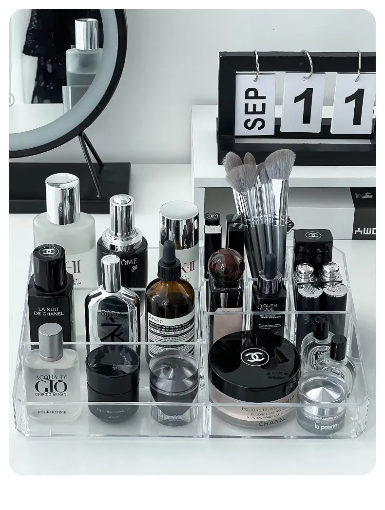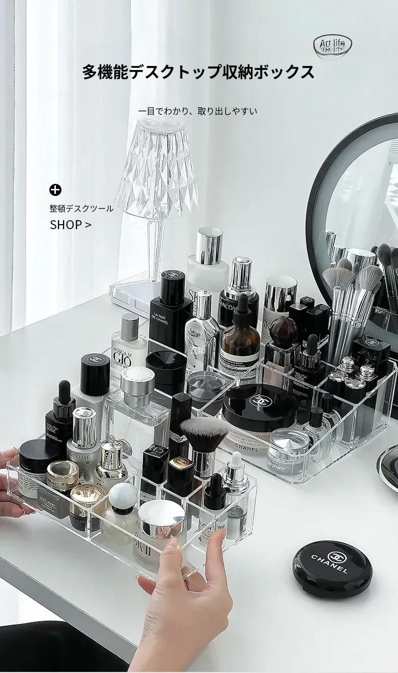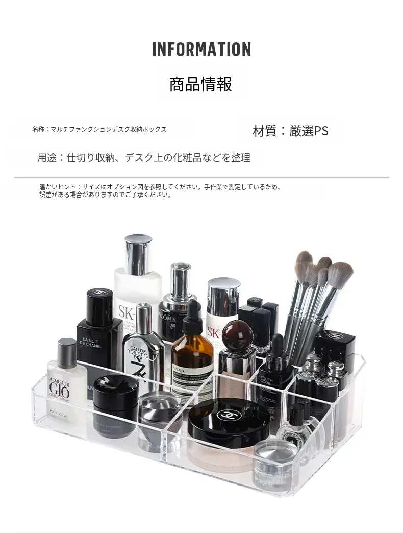 デスクトップ化粧品収納ボックス メイク台用スキンケア用品ラック アクリル製 透明仕切りのリップケース 宿舎にもぴったり!整理整頓で美しさを引き立てるアイテム!