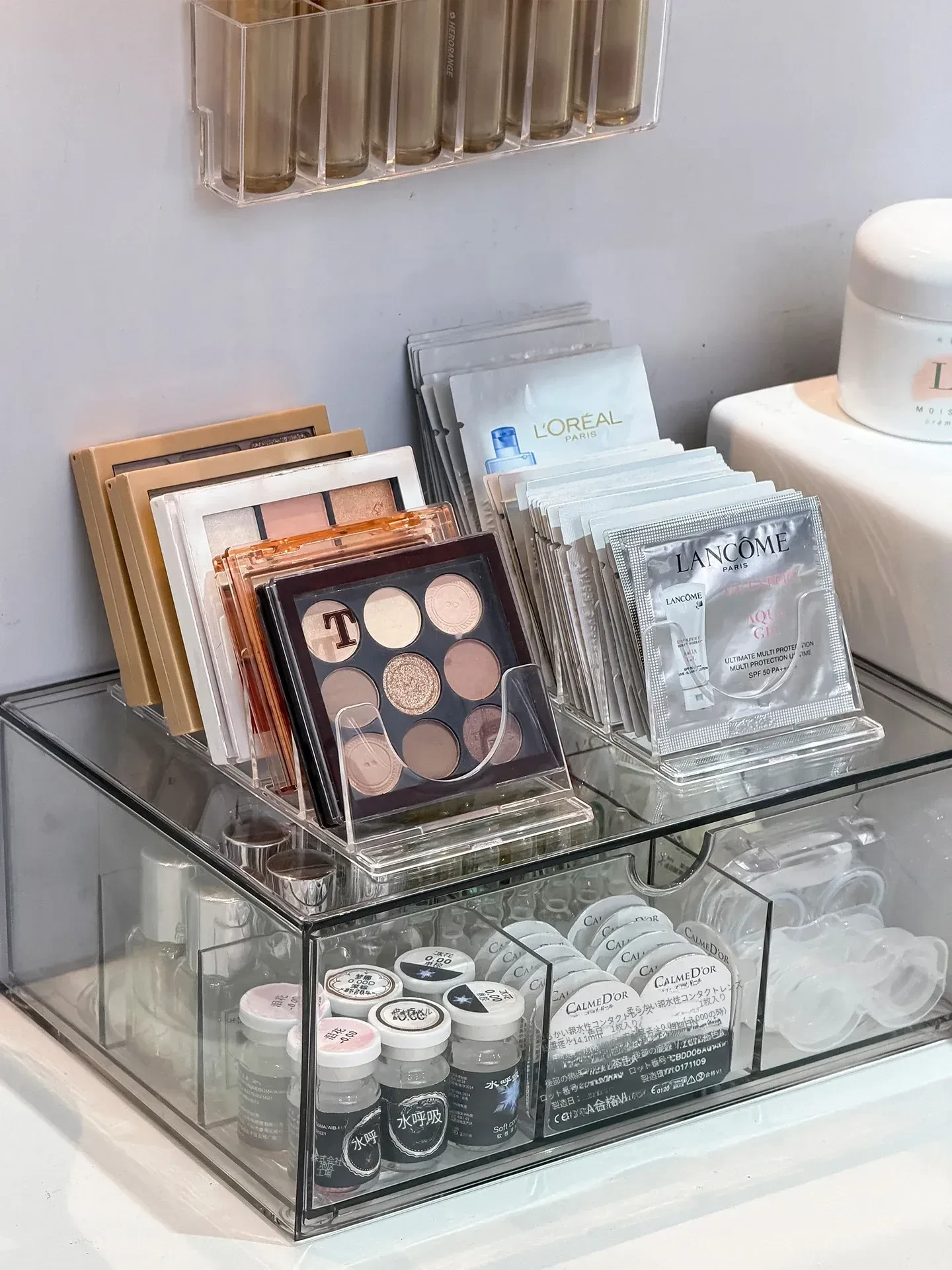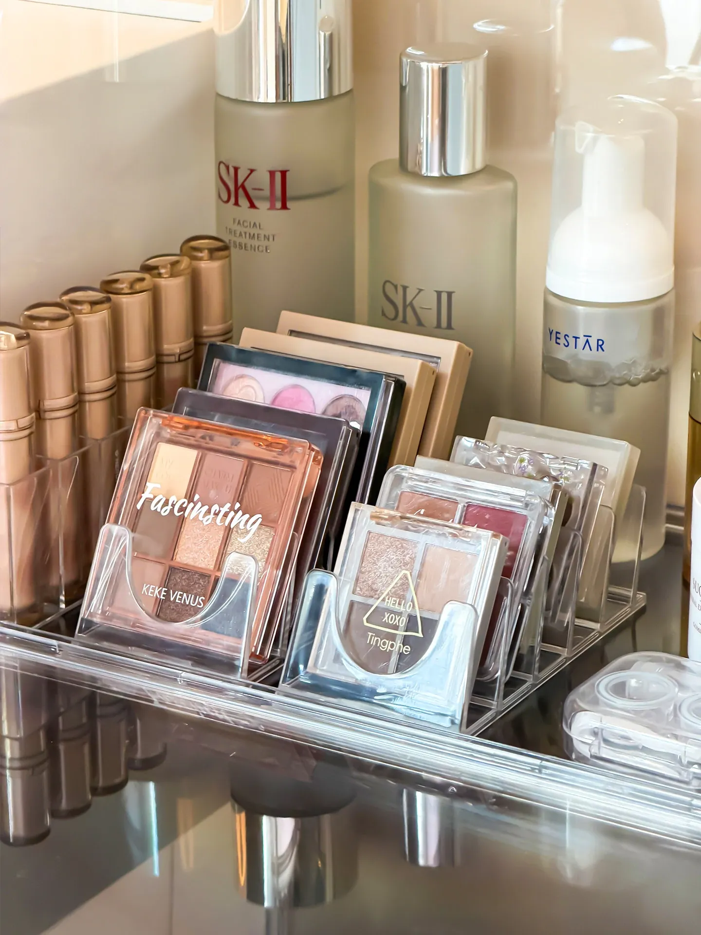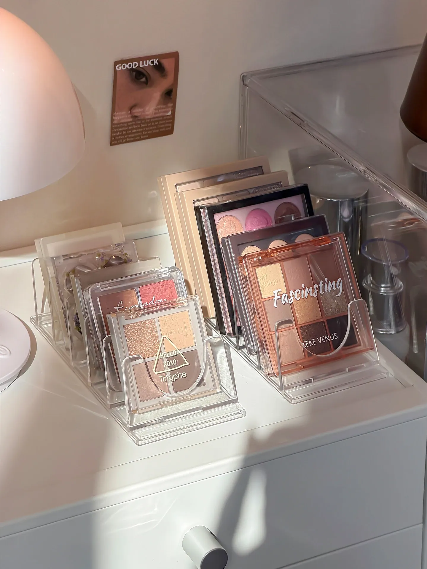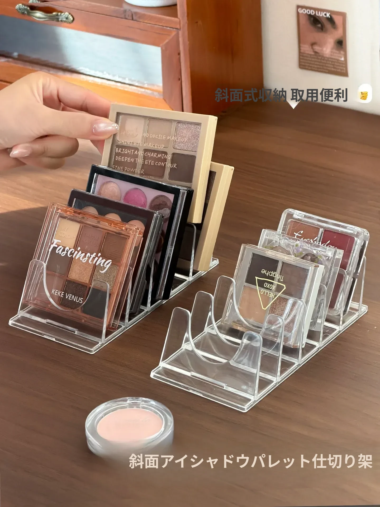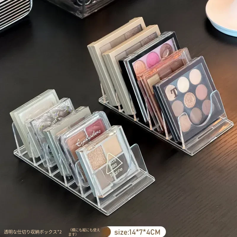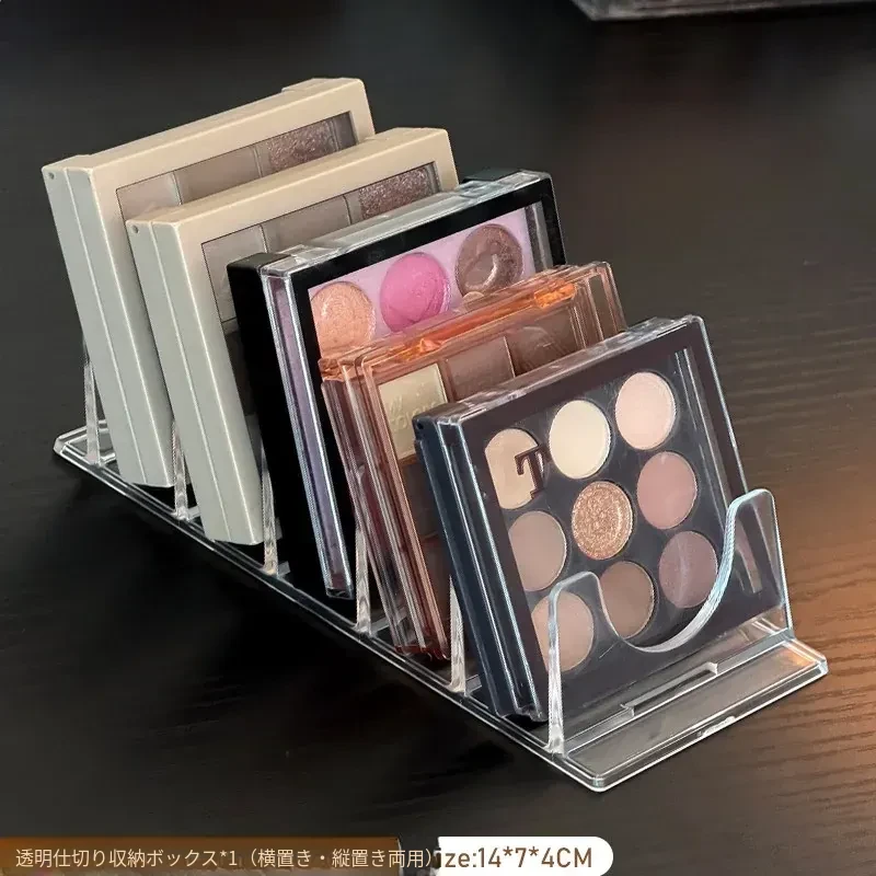 デスクトップ化粧品収納ボックス アクリル仕切り付き パウダー&アイシャドウパレットディスプレイスタンド 多機能サンプル整理神器!おしゃれで機能的、あなたのメイクアップスペースをスッキリ整頓!
