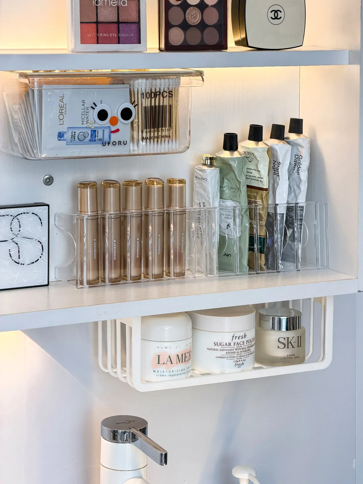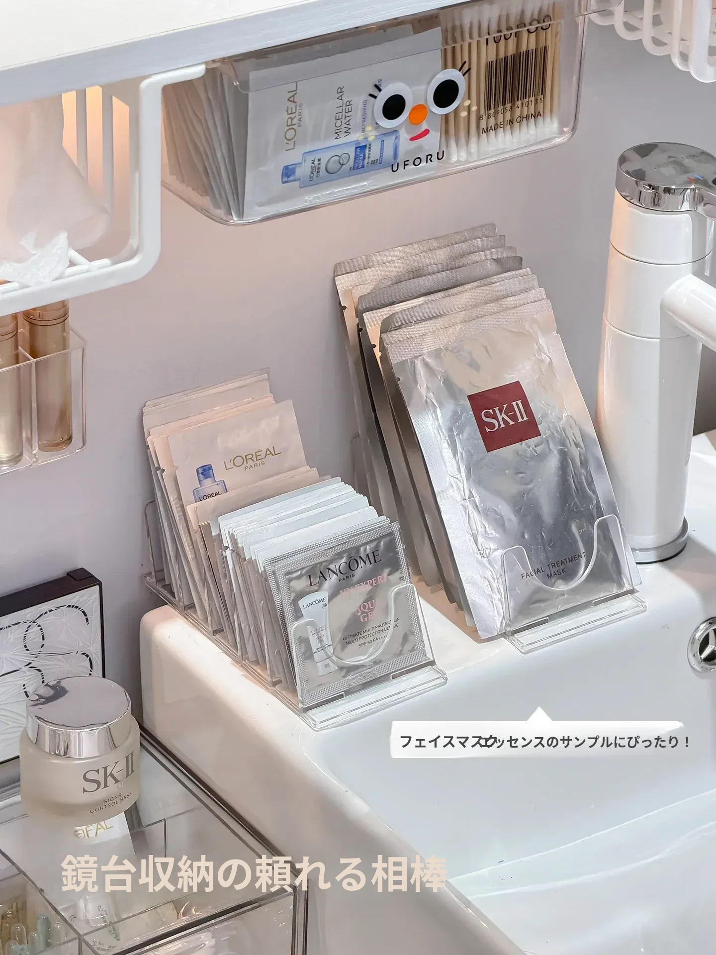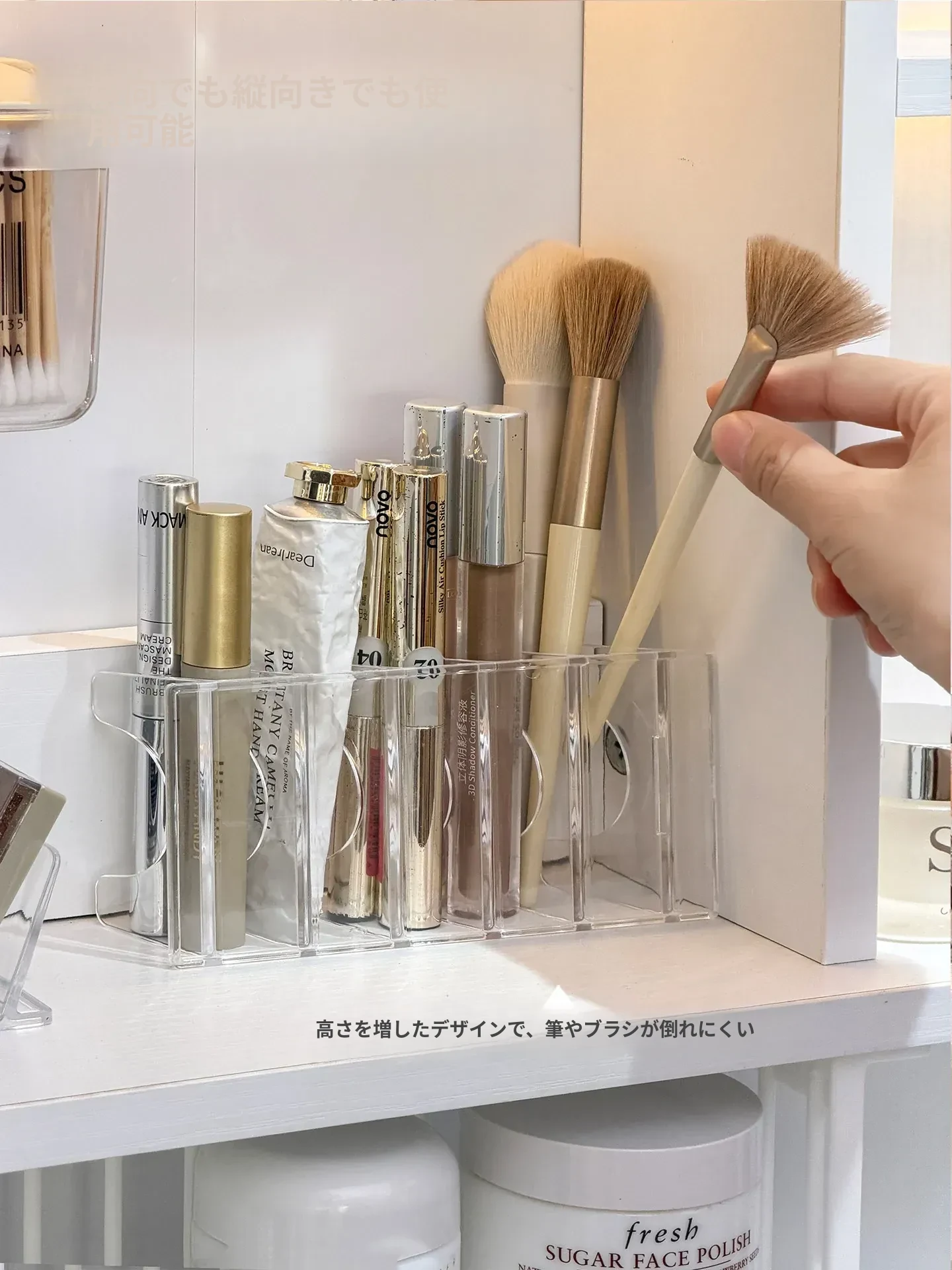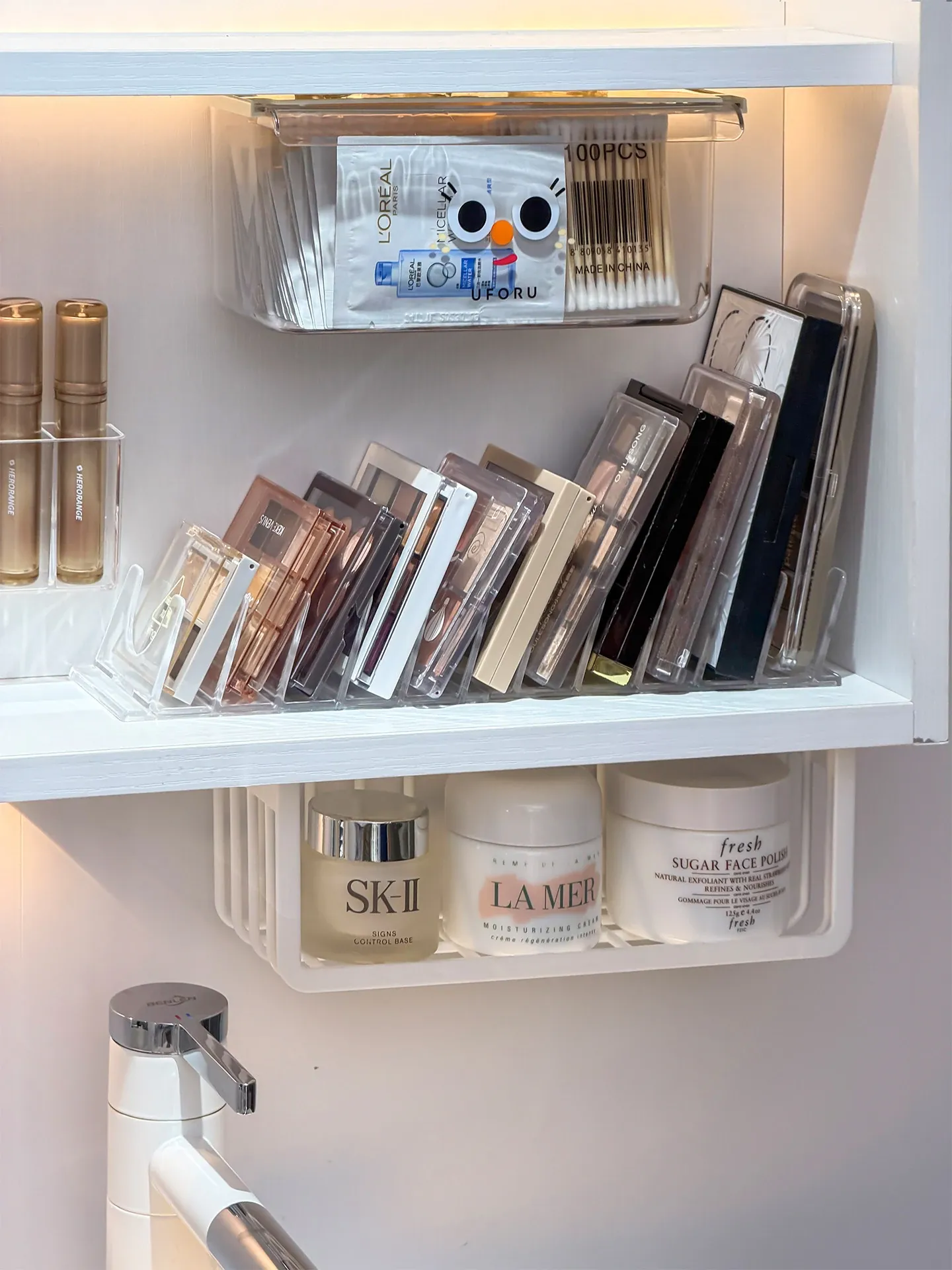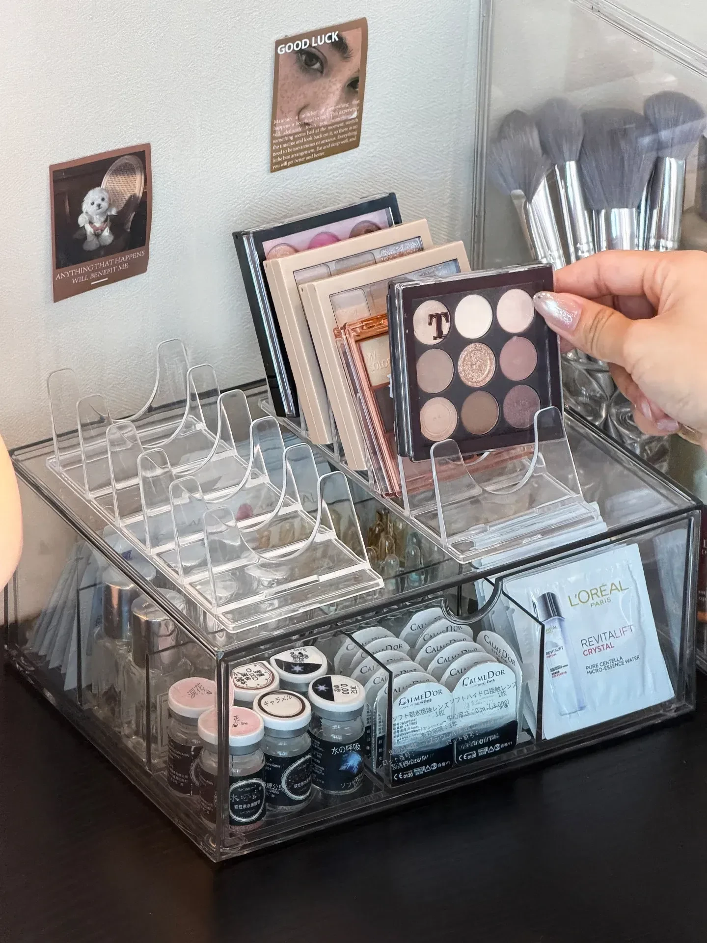 デスクトップ化粧品収納ボックス アクリル仕切り付き パウダー&アイシャドウパレットディスプレイスタンド 多機能サンプル整理神器!おしゃれで機能的、あなたのメイクアップスペースをスッキリ整頓!