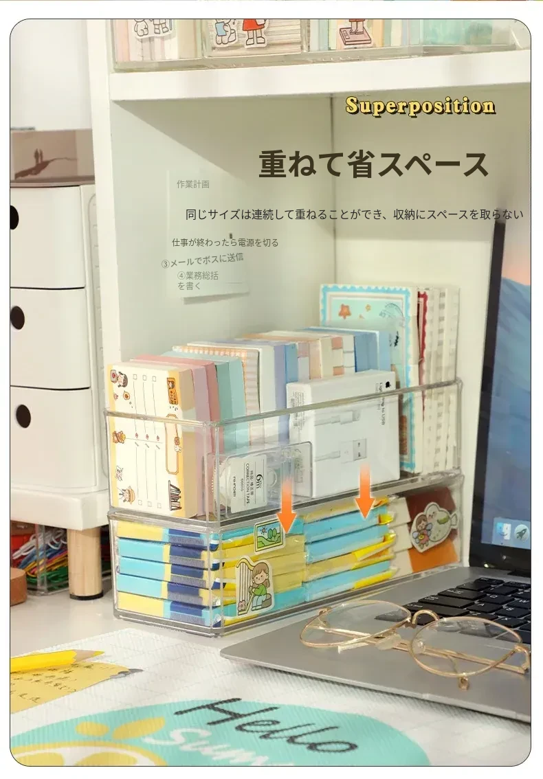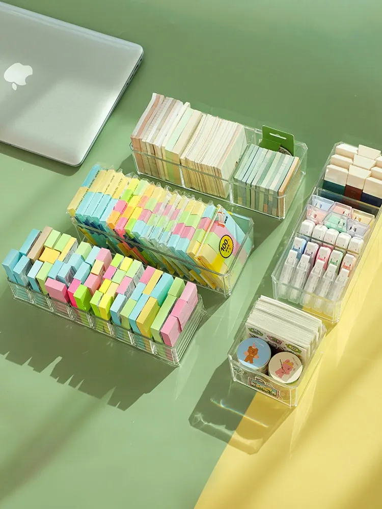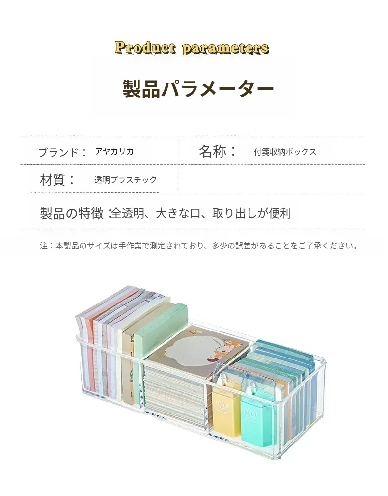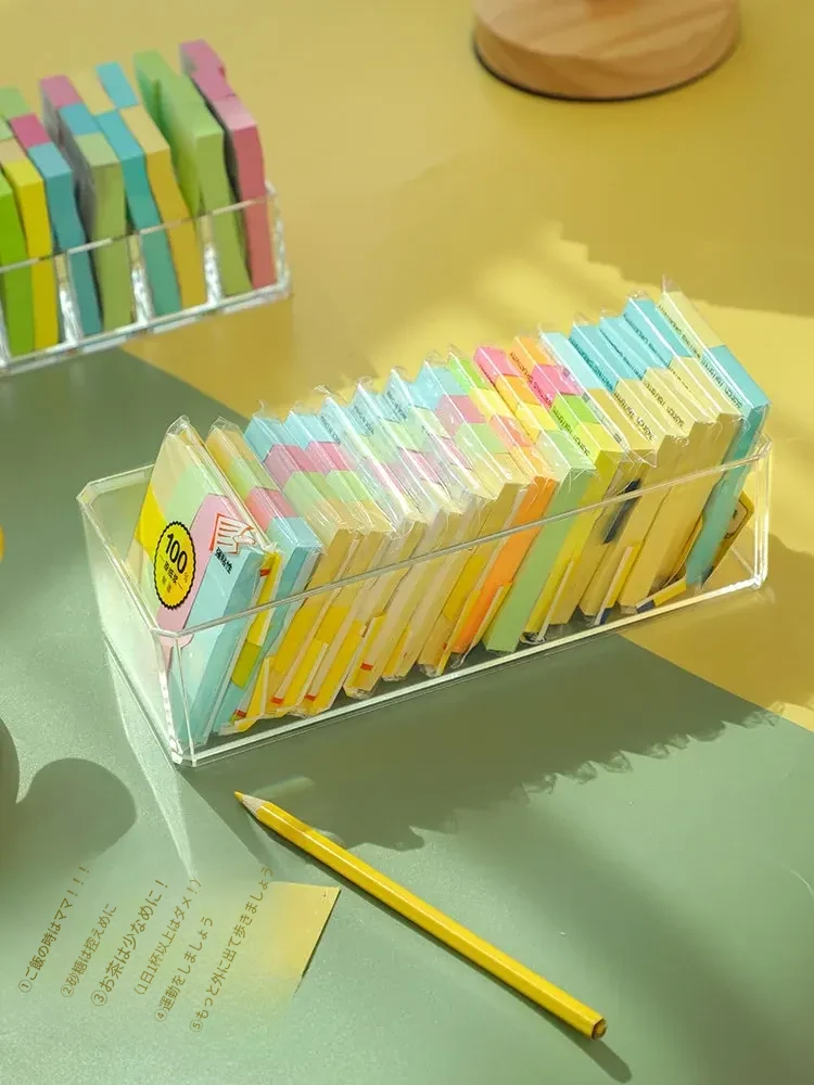 アクリルデスクトップ付箋収納ボックス 透明な便利メモスタンド 文房具や雑貨を整理整頓!長方形のスタイリッシュなデザインで、おしゃれなオフィスを演出します。