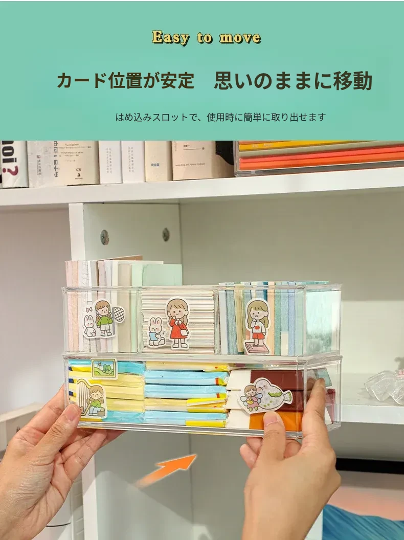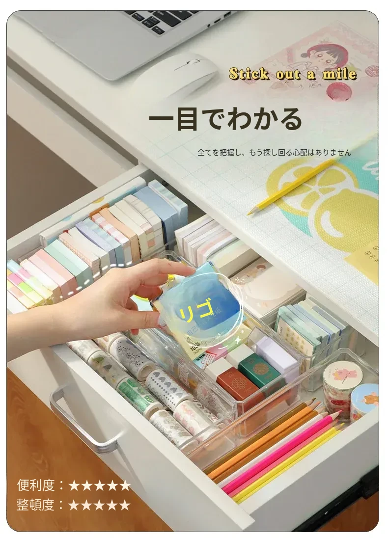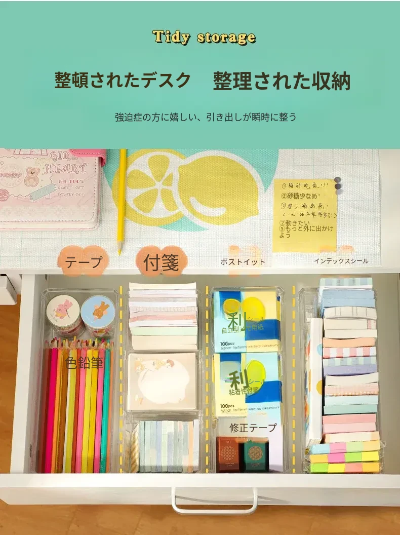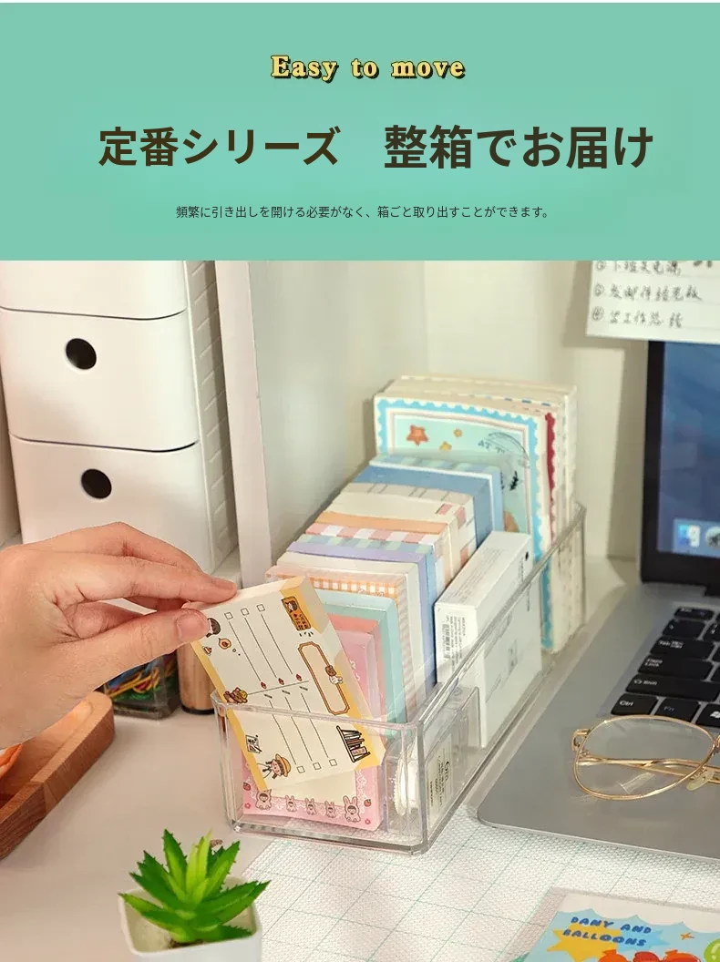 アクリルデスクトップ付箋収納ボックス 透明な便利メモスタンド 文房具や雑貨を整理整頓!長方形のスタイリッシュなデザインで、おしゃれなオフィスを演出します。