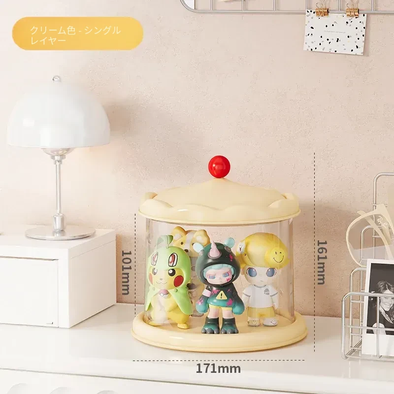 【一層-クリーム色】回転フィギュアディスプレイボックス-DF-6334