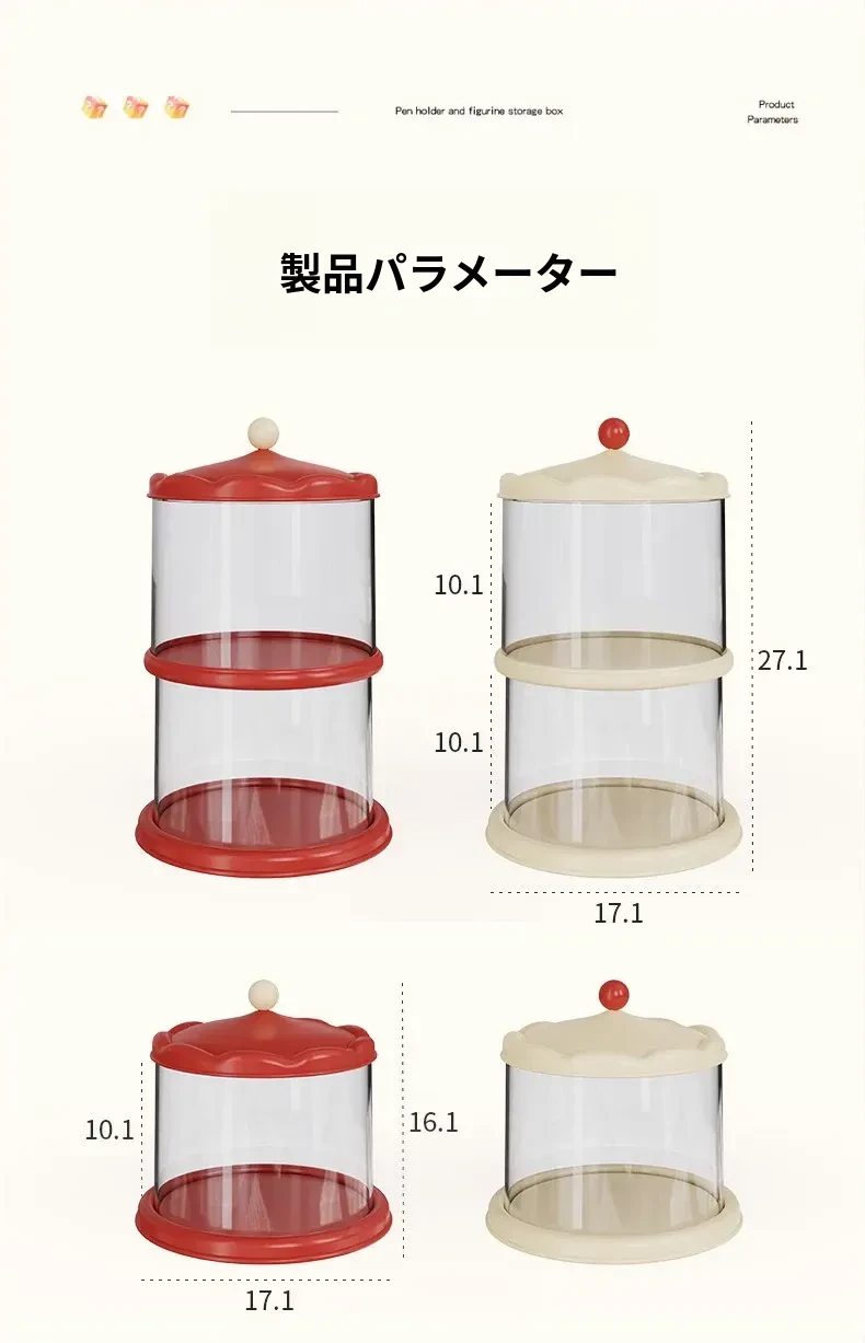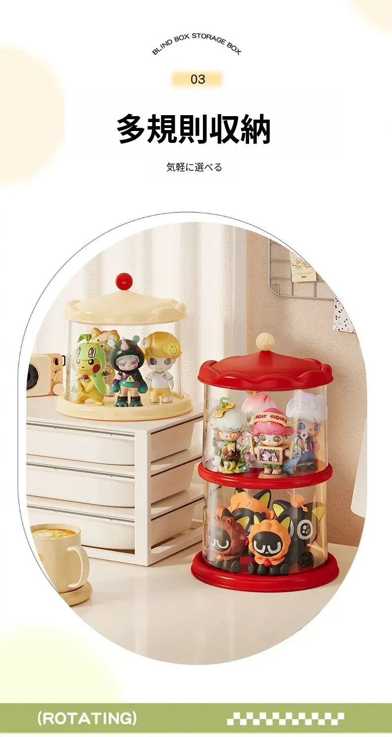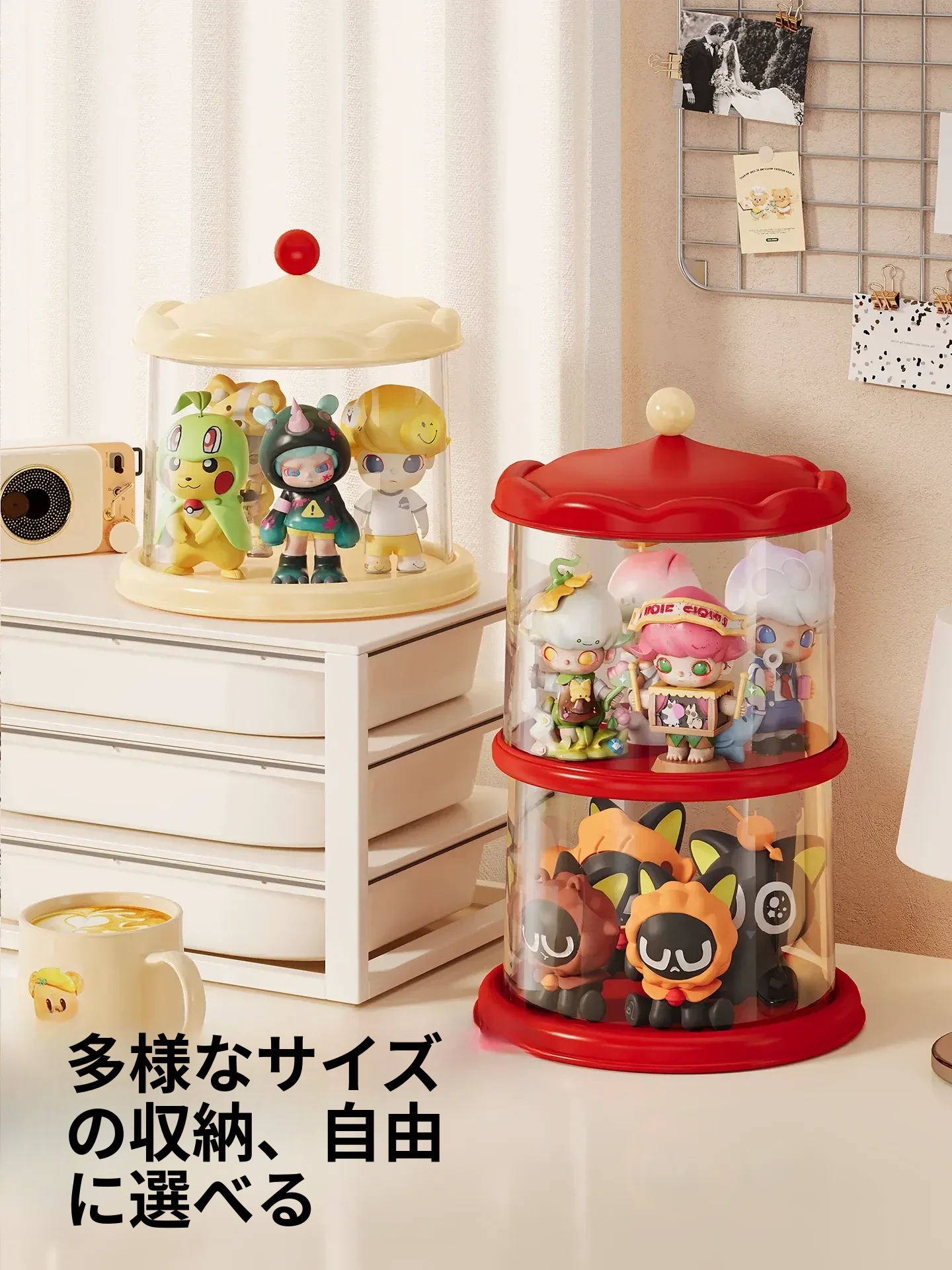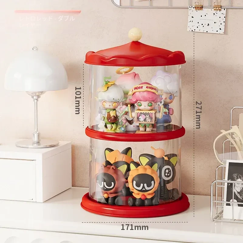 【二層-クリームレッド】回転フィギュアディスプレイボックス-DF-6331
