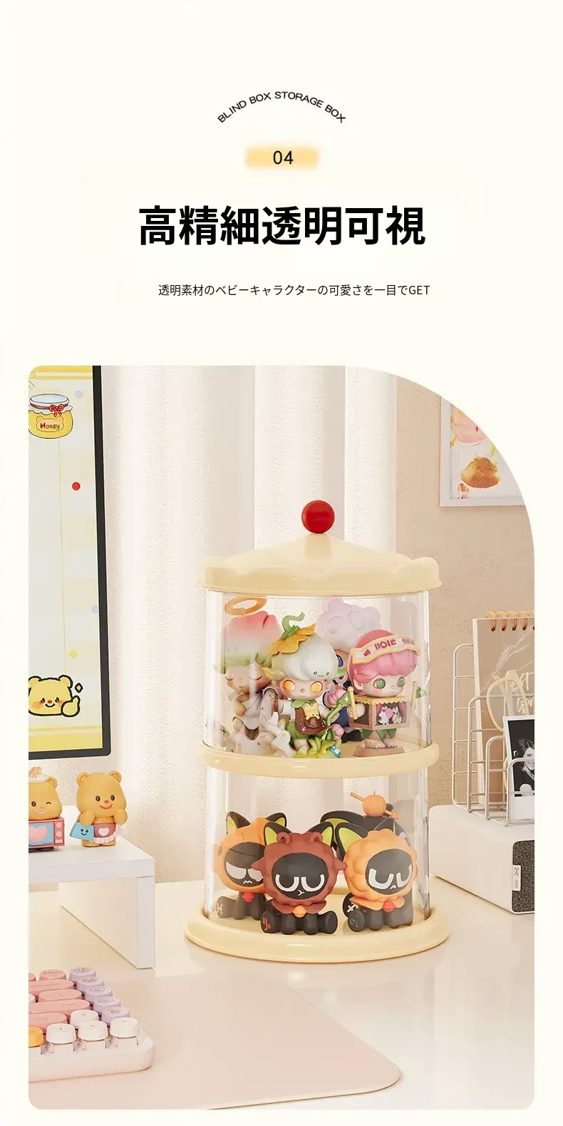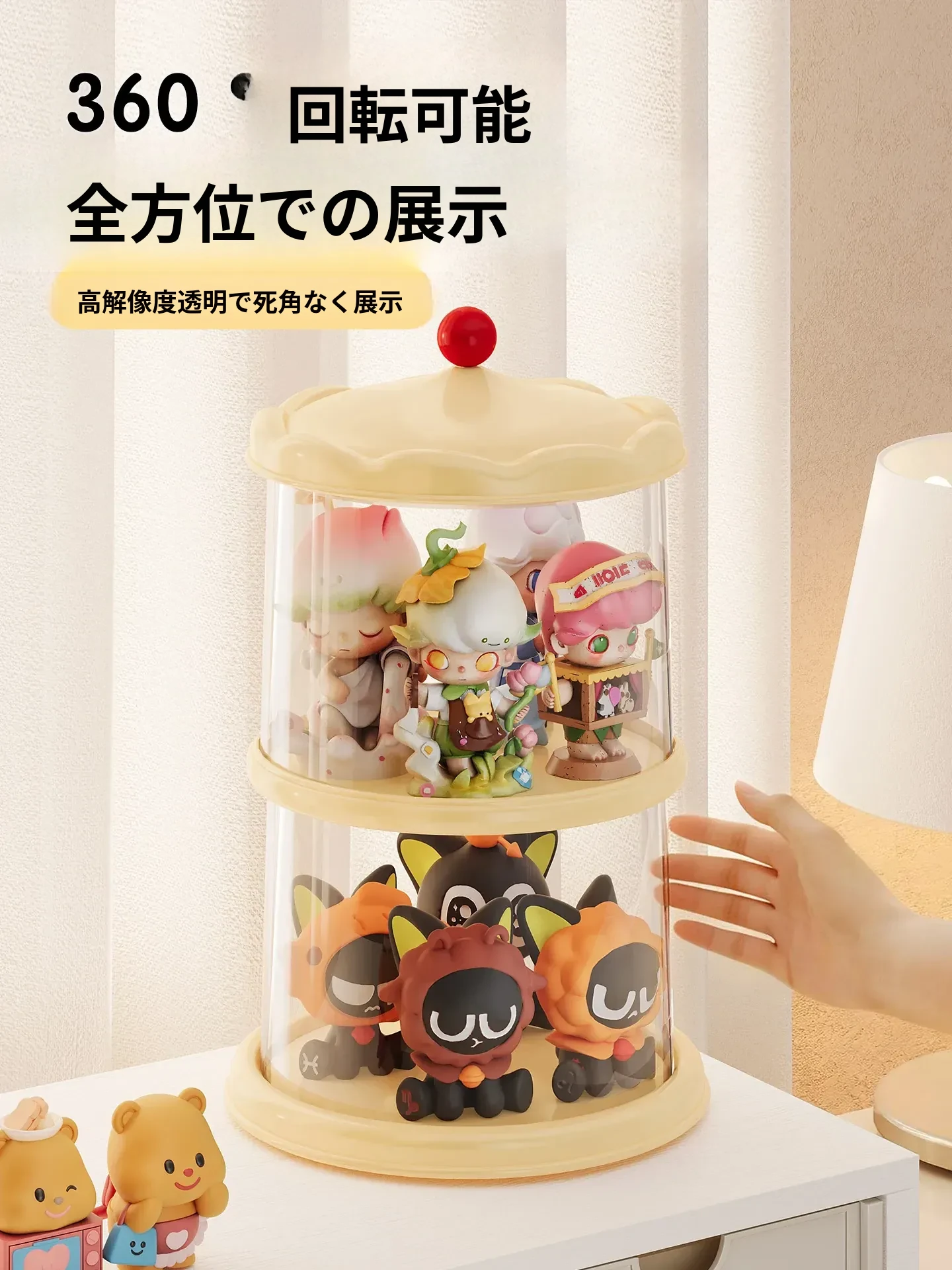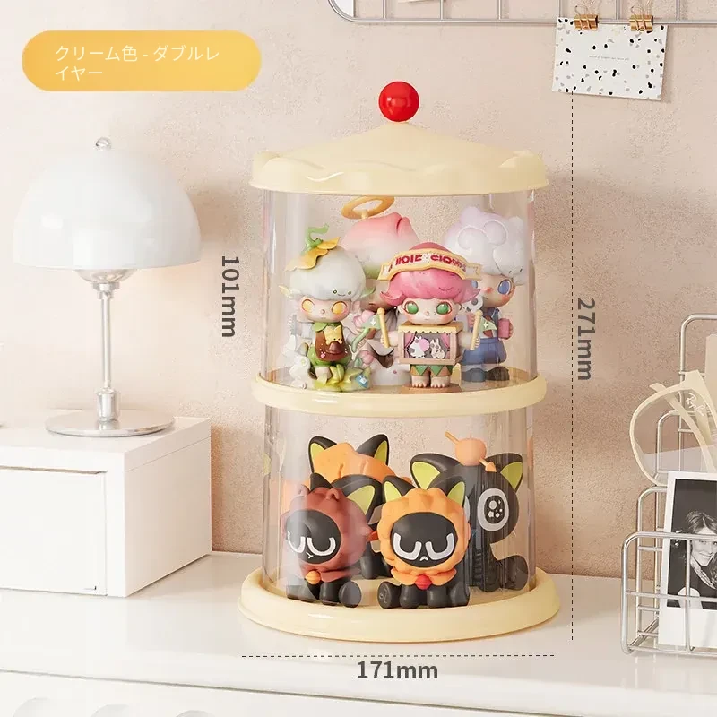 【二層-クリーム色】回転フィギュアディスプレイボックス-DF-6332