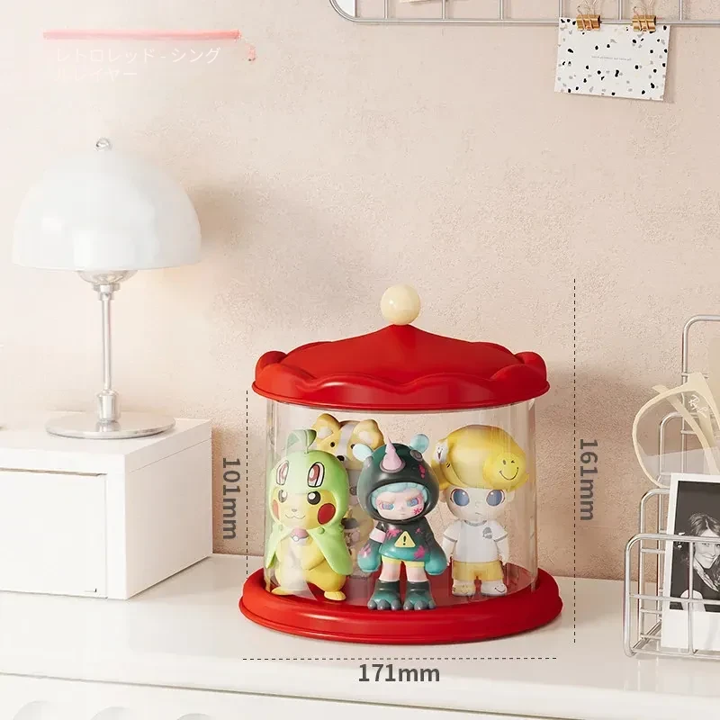【一層-クリームレッド】回転フィギュアディスプレイボックス-DF-6333