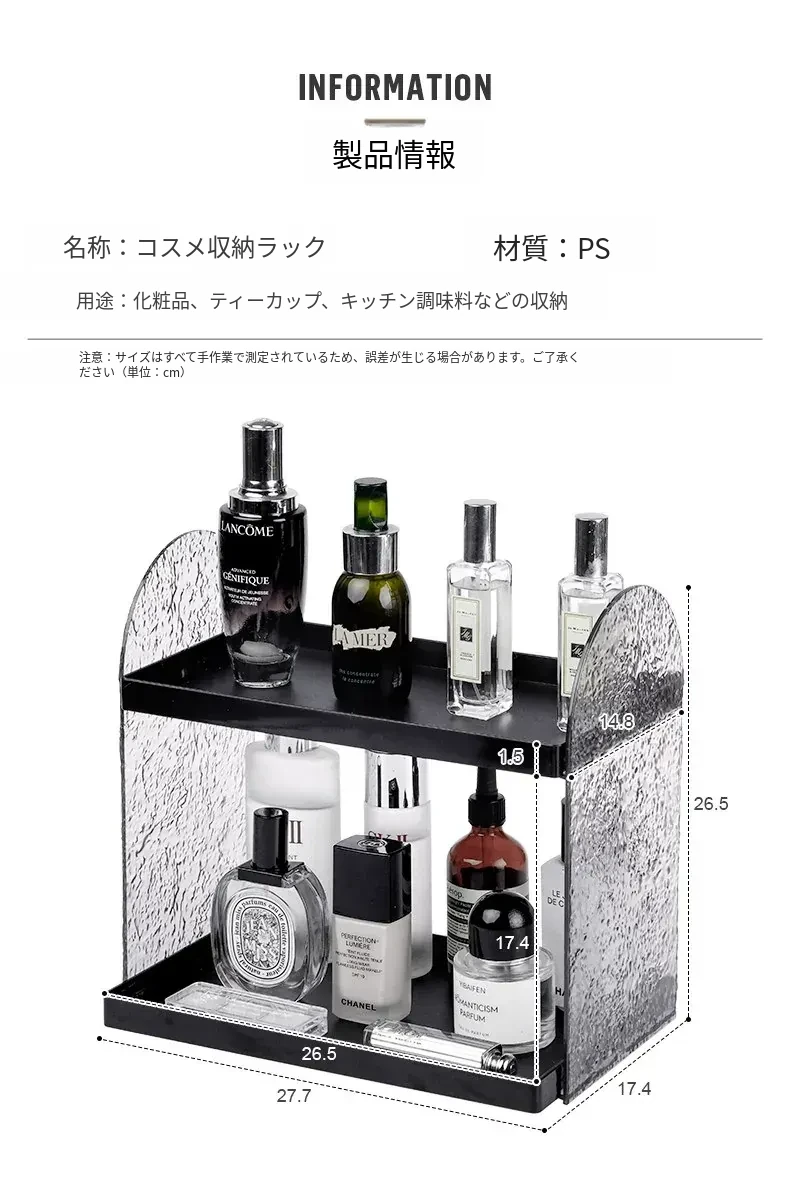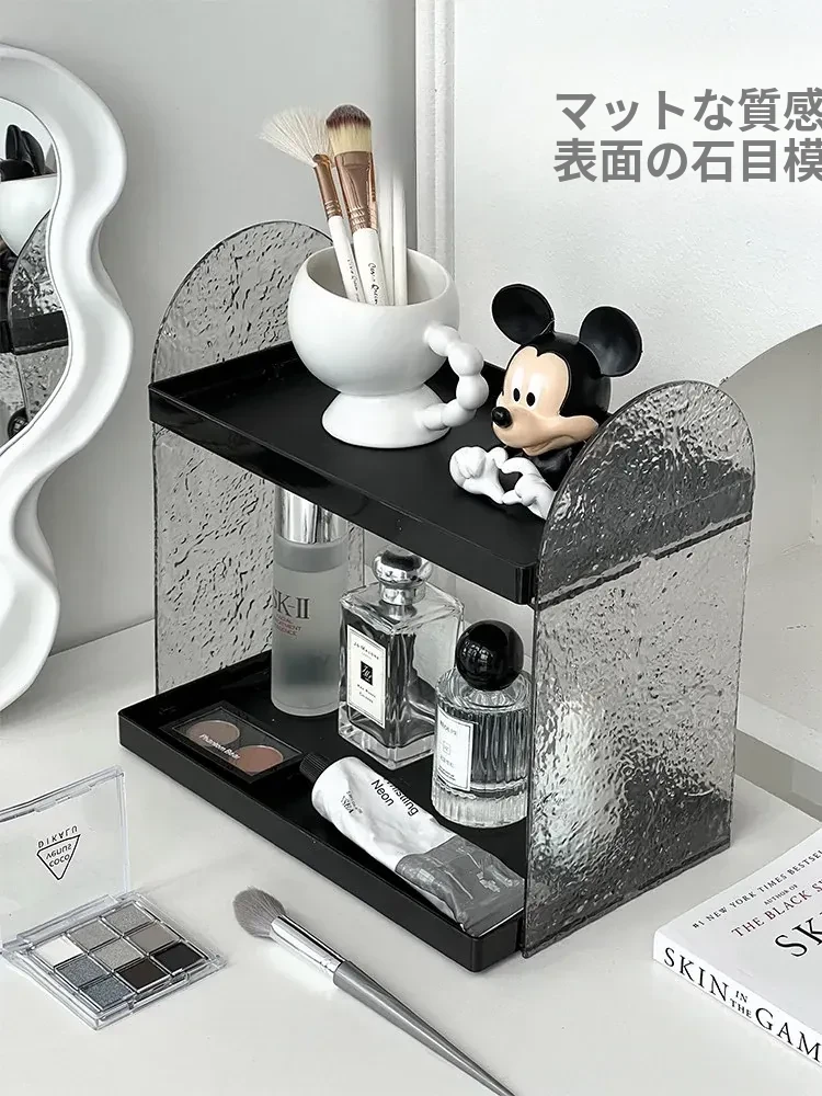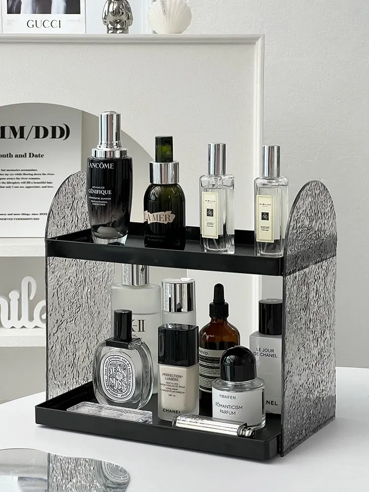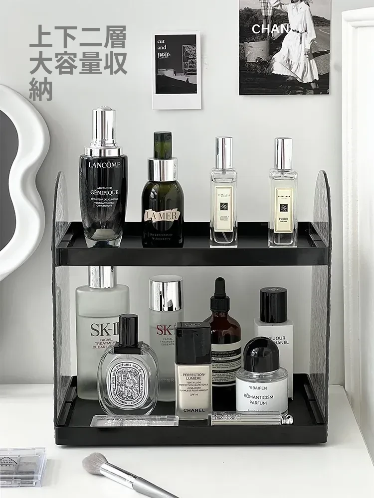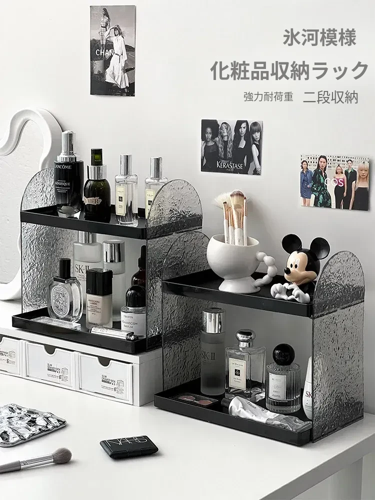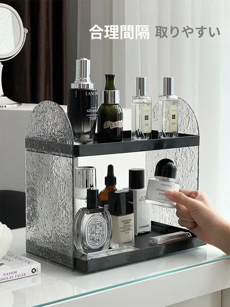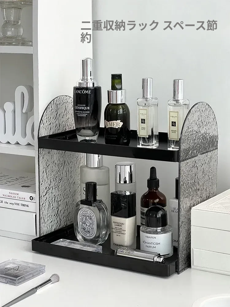 化粧品収納ラック 美しいドレッサーのための香水・スキンケア用品収納ボックス デスクトップ用アクリル製二段式口紅スタンドで、あなたのメイクアップをもっと魅力的に!