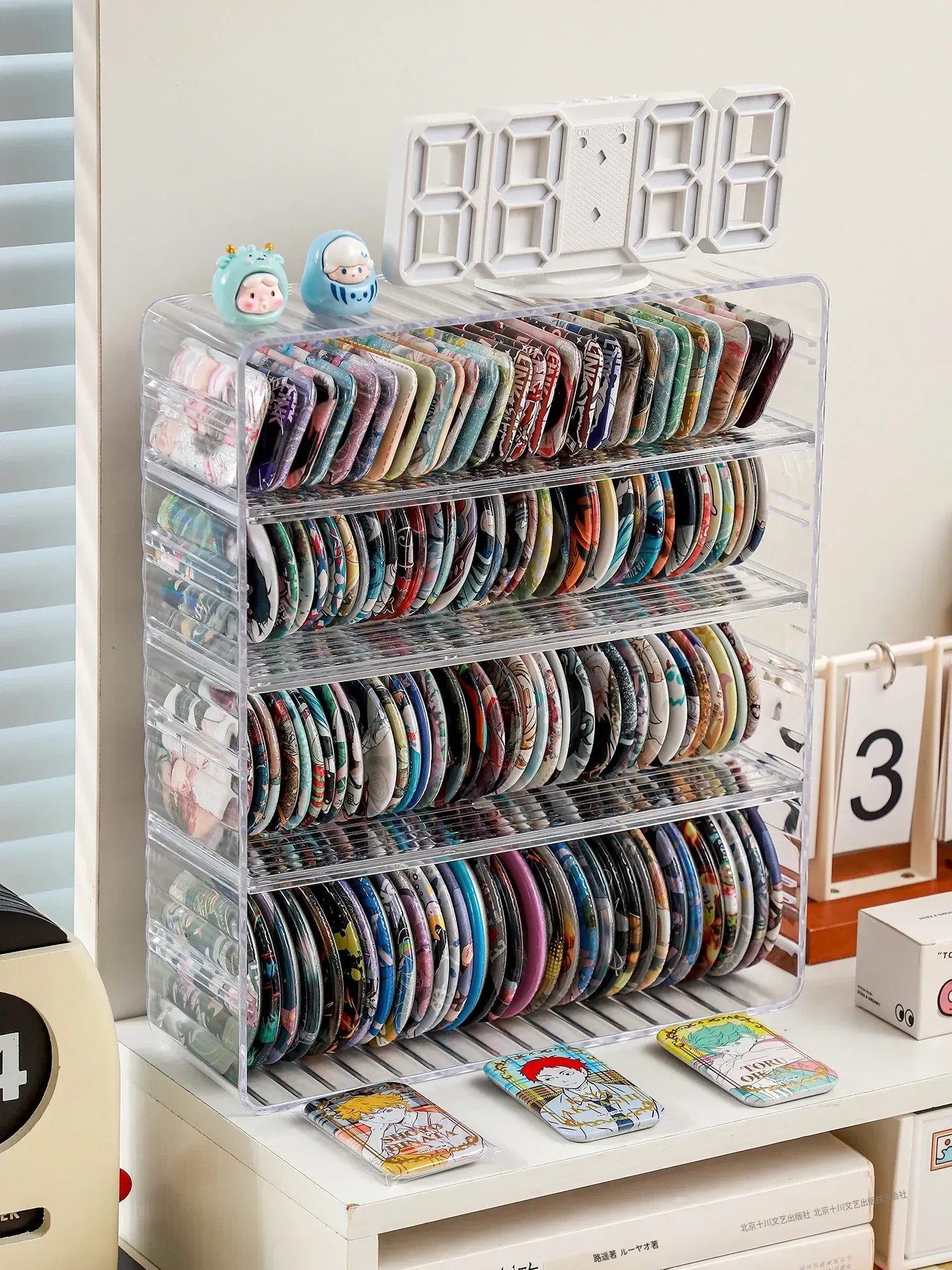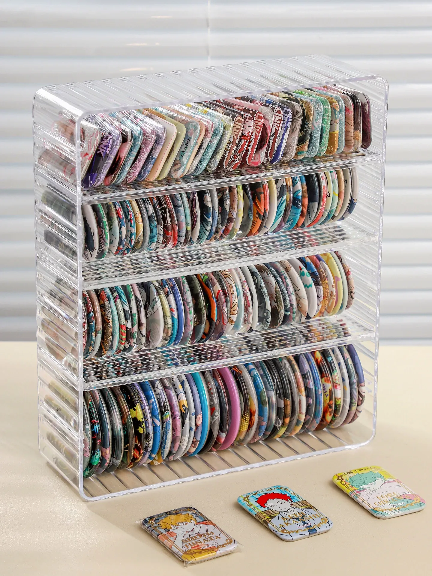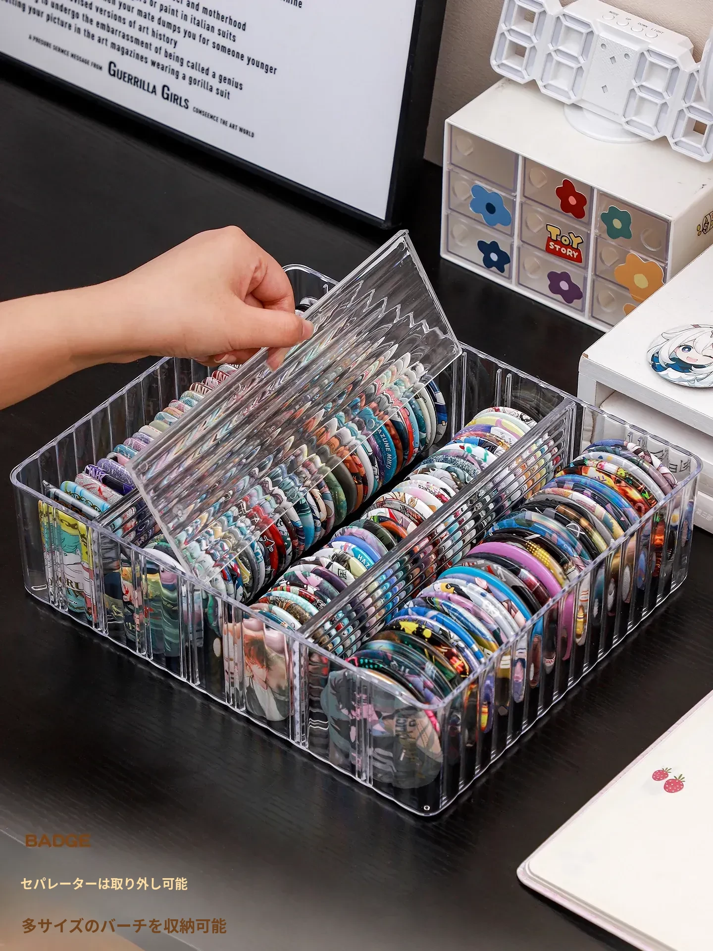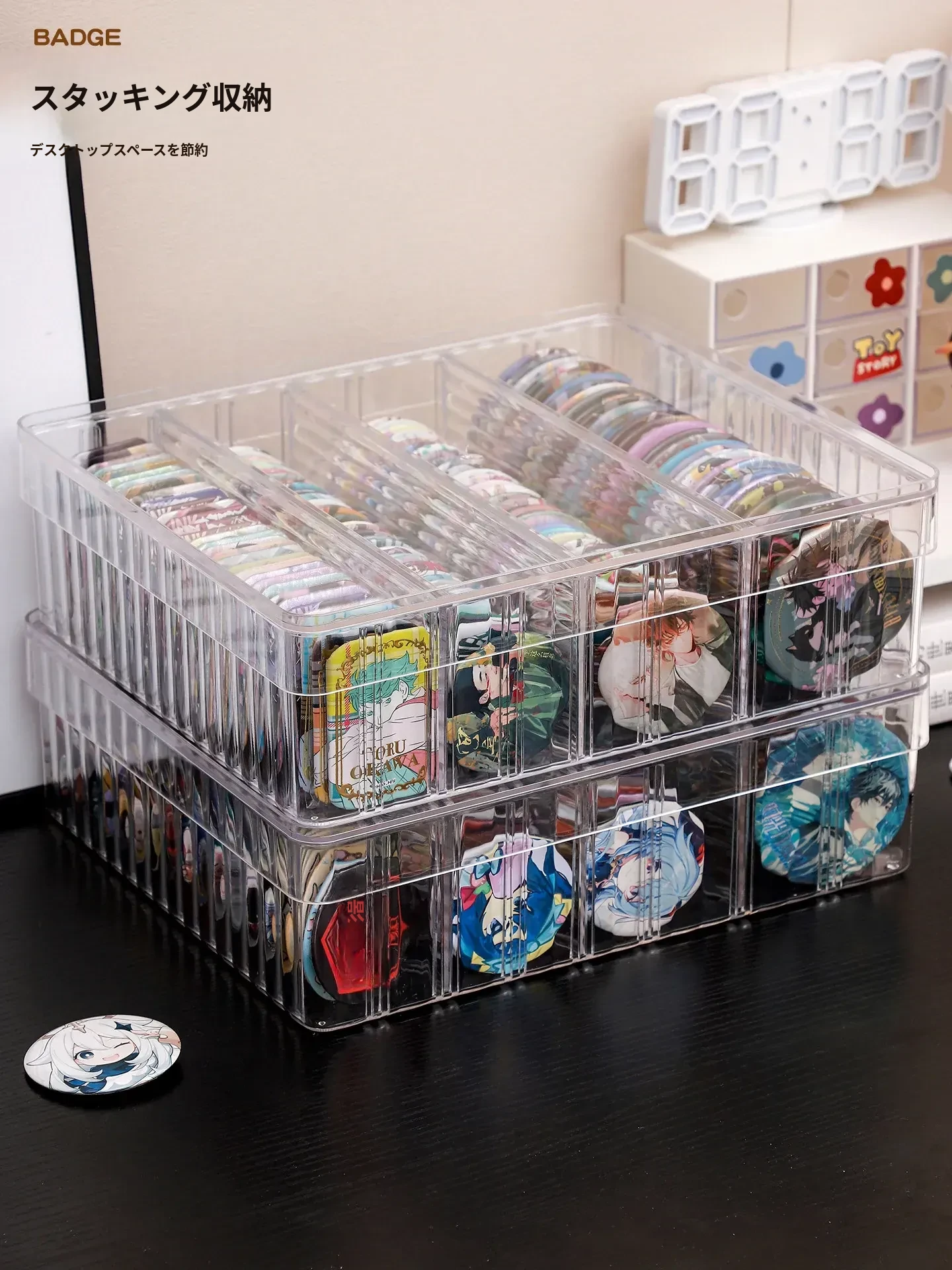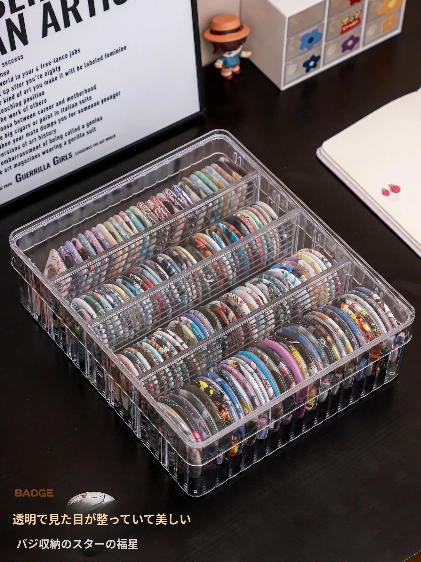 防塵機能付き「バジ収納ボックス」 - 食品愛好者必見!アクリル製デスクトップ用のオシャレな米バッジディスプレイスタンド。整理整頓も簡単に!あなたのスペースを美しく演出します。