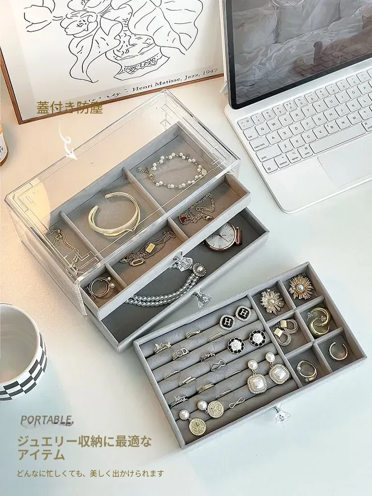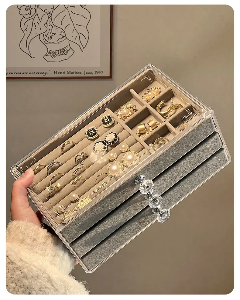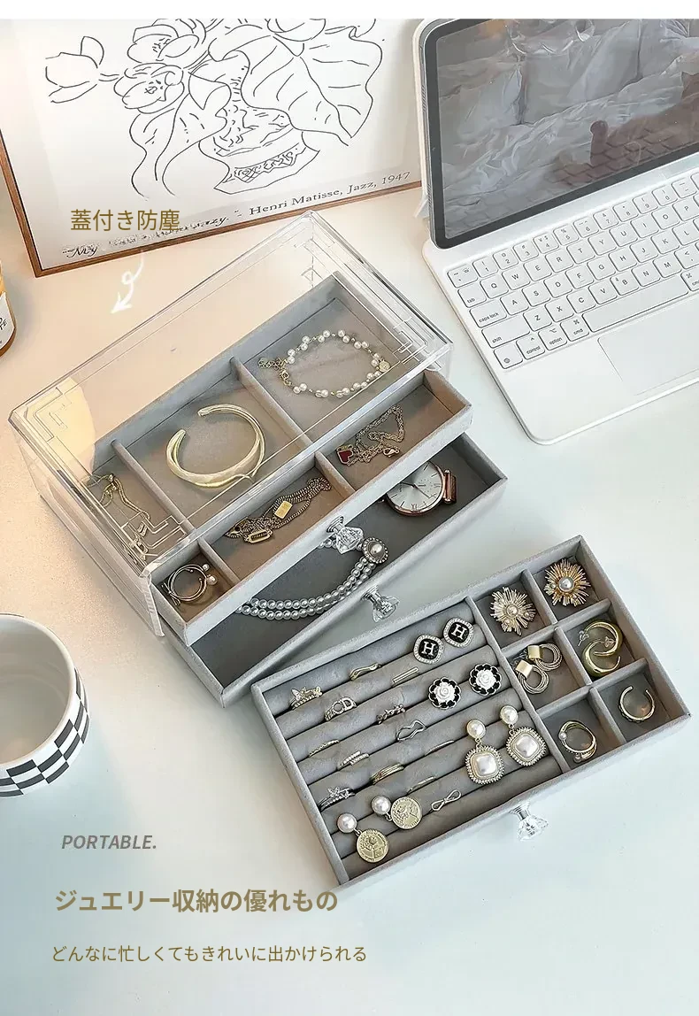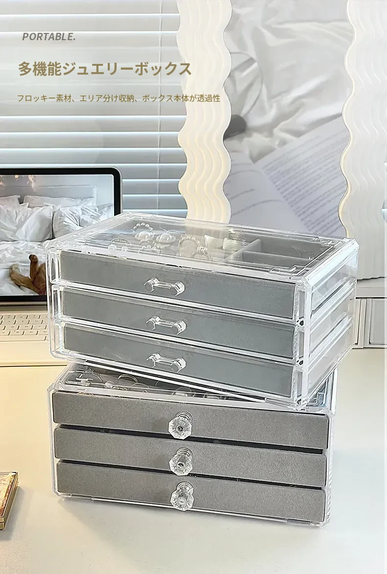 酸化防止!おしゃれなアクリル製イヤリング収納ボックス - ネックレスやピアス、ブレスレットを整理できる分格デザイン。美しいネイルアクセサリーもすっきり収納!あなたのジュエリーを守る最適なアイテムです。