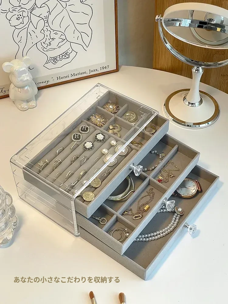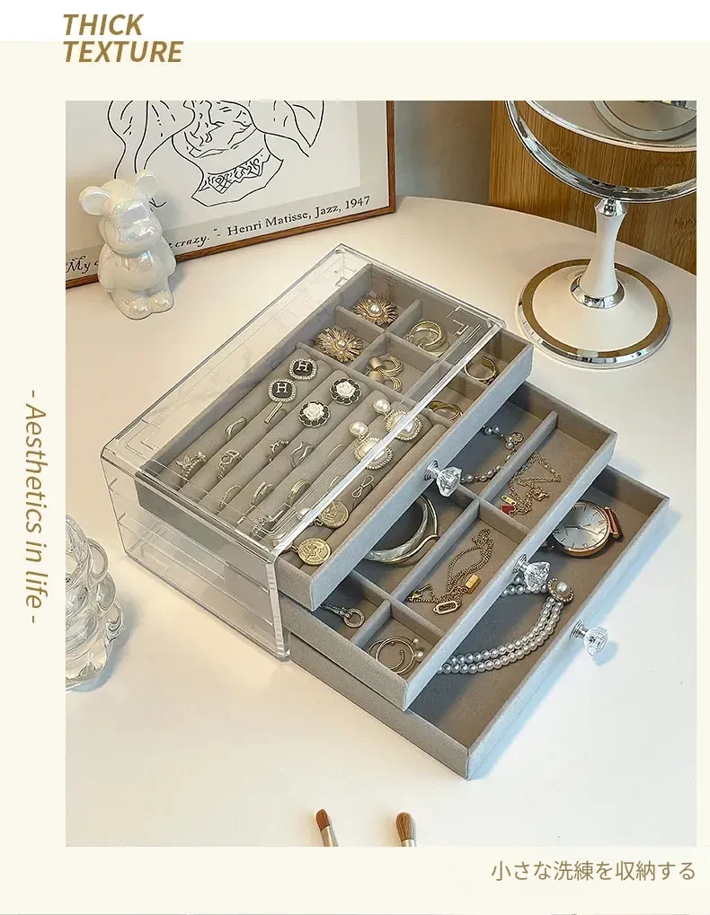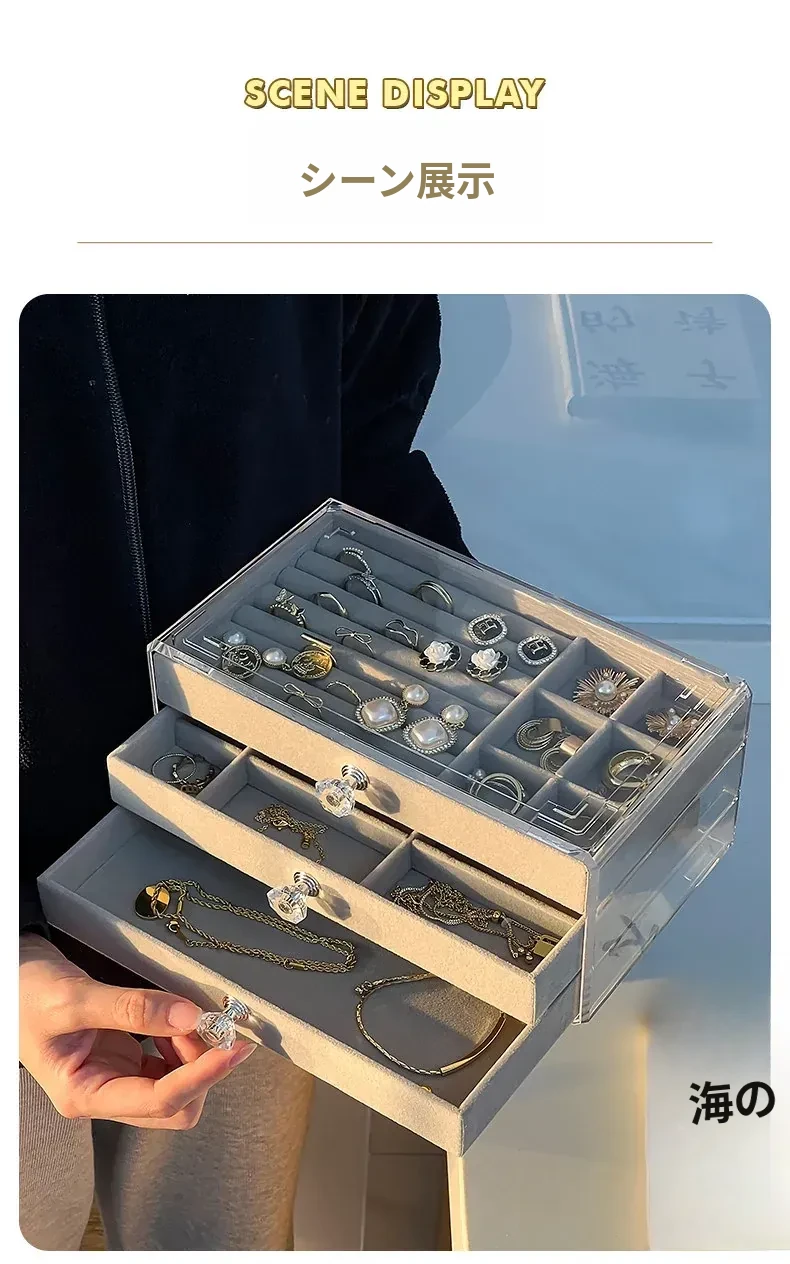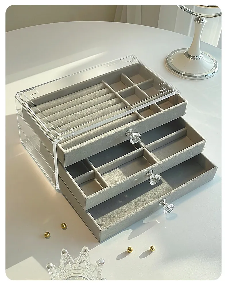 酸化防止!おしゃれなアクリル製イヤリング収納ボックス - ネックレスやピアス、ブレスレットを整理できる分格デザイン。美しいネイルアクセサリーもすっきり収納!あなたのジュエリーを守る最適なアイテムです。