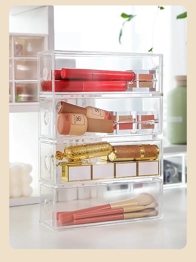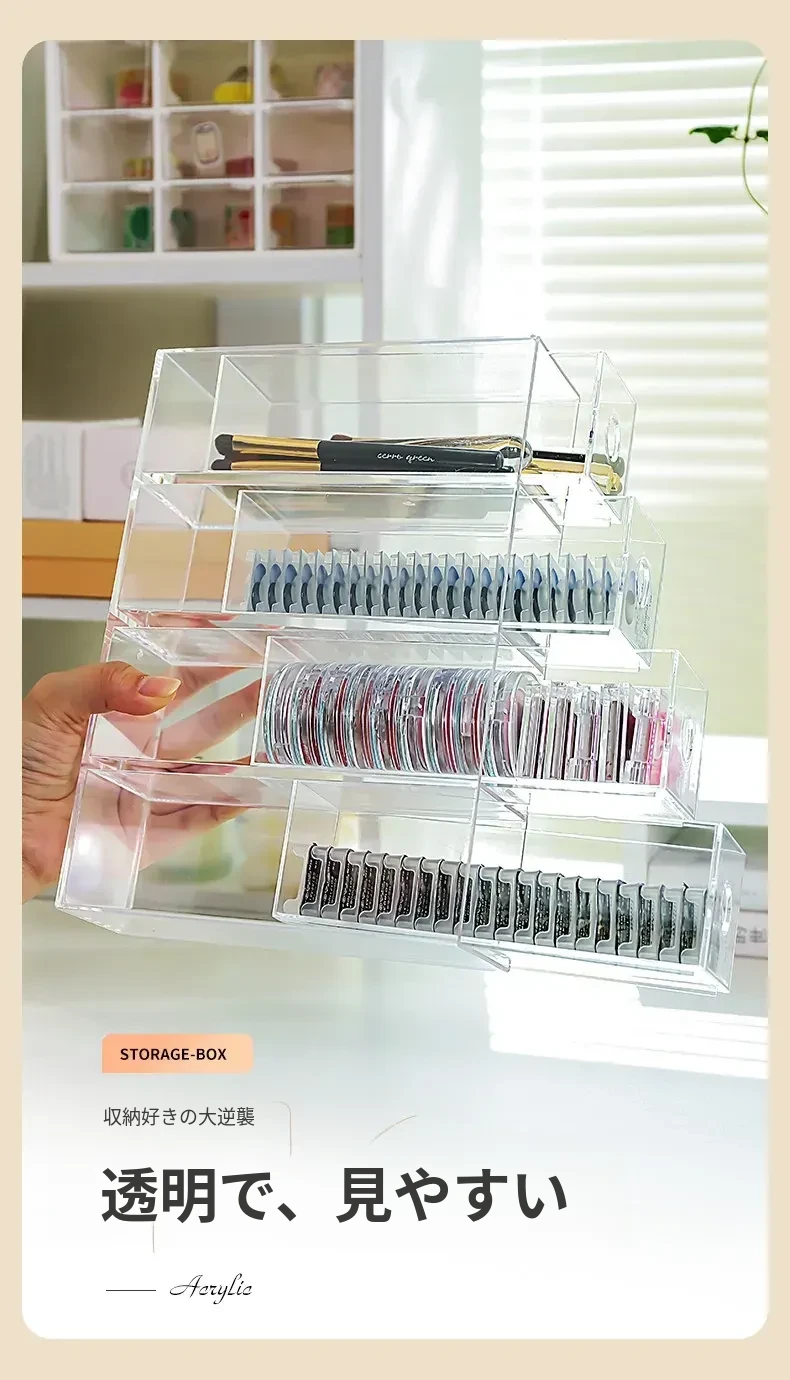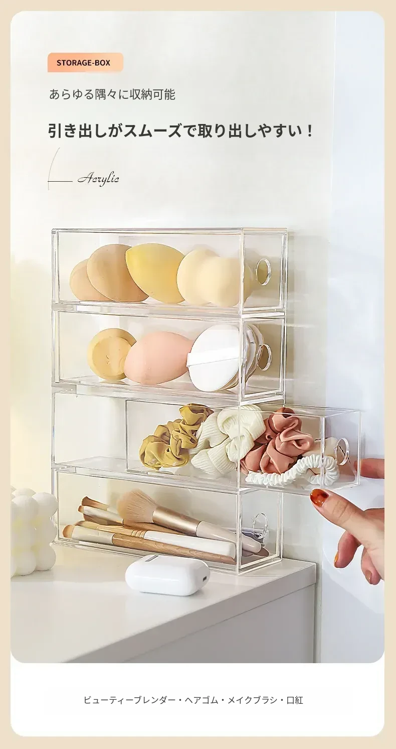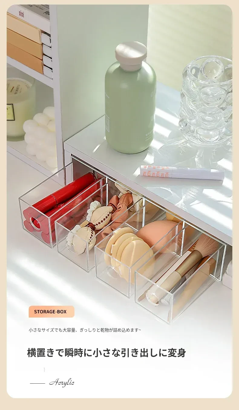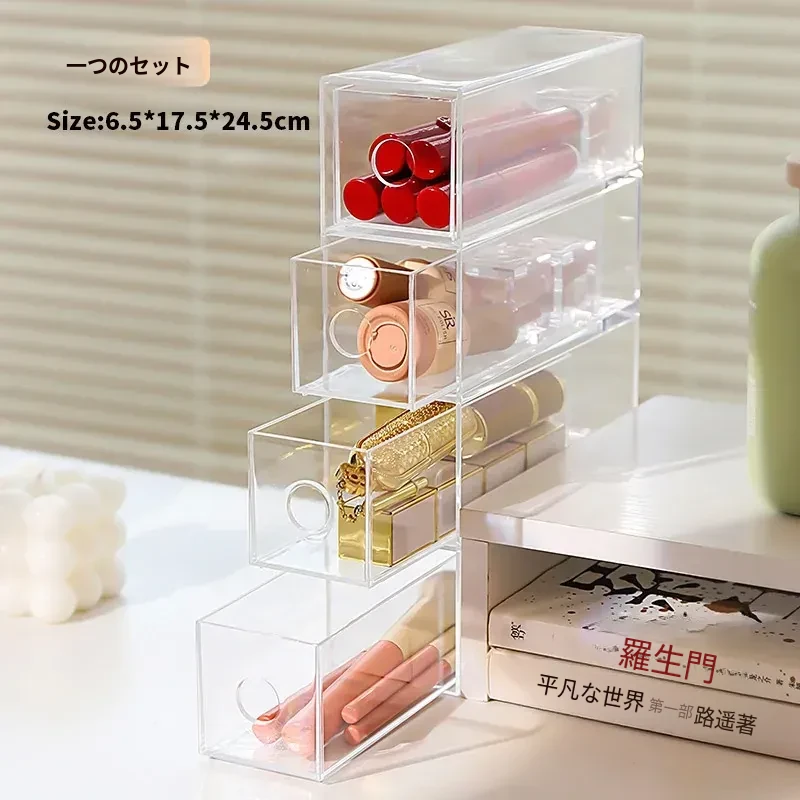 デスク上化粧品収納ボックス 透明アクリル製リップスティック引き出し 宿舎にも最適なメイクブラシスタンド!美しい整理であなたのメイクアップルーチンをグレードアップ!