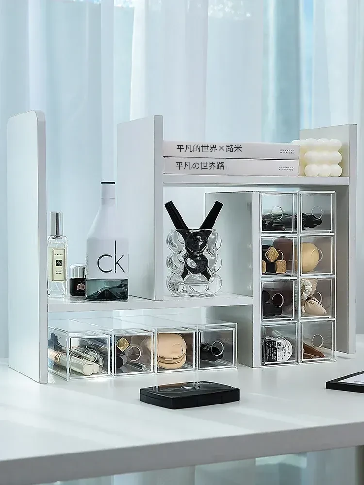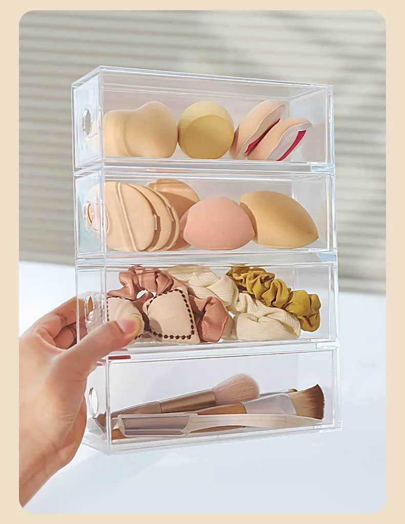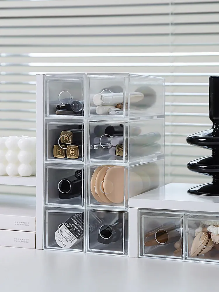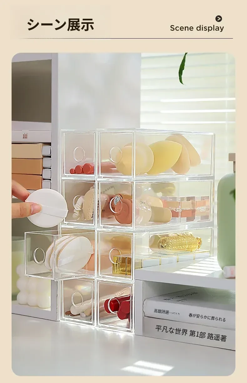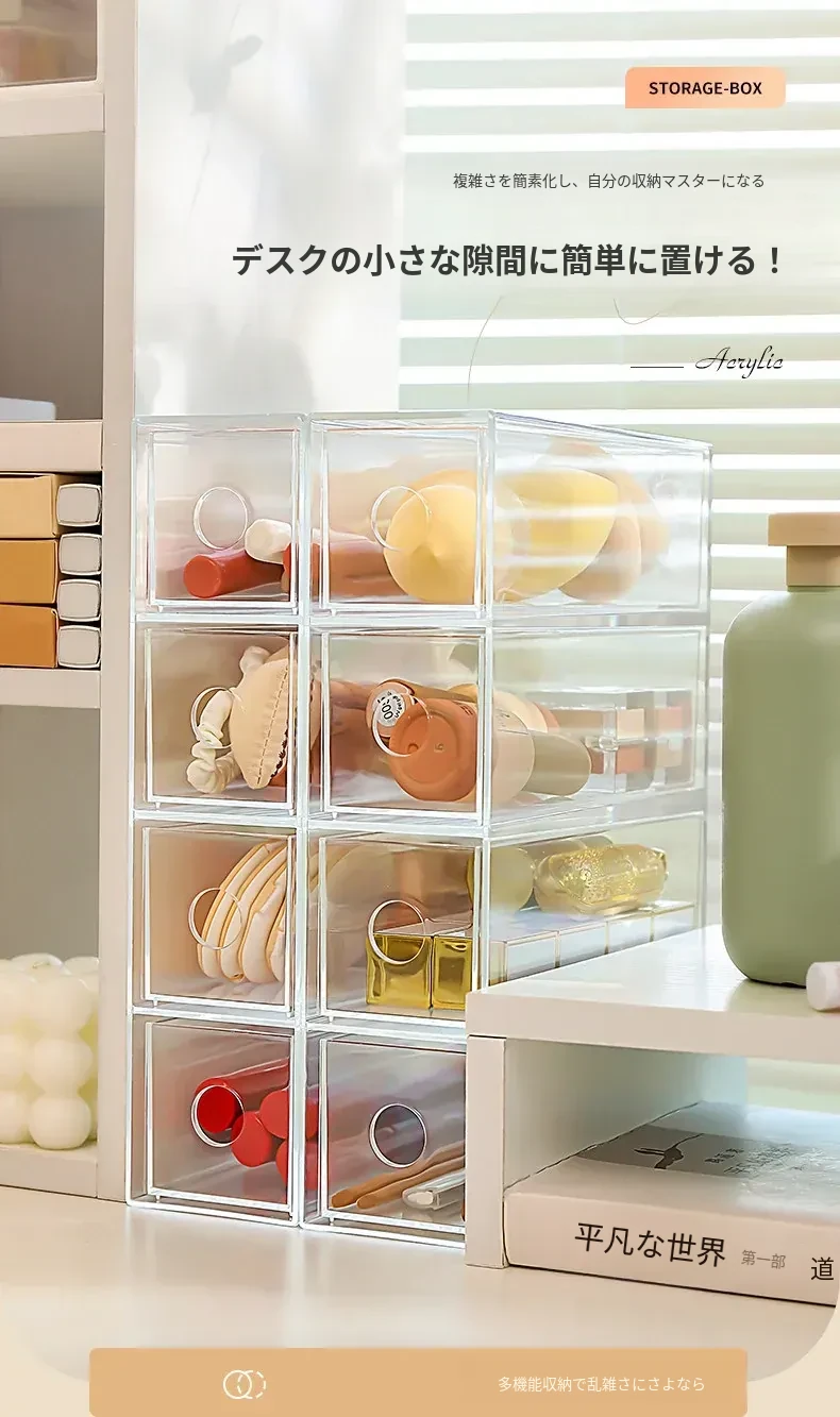 デスク上化粧品収納ボックス 透明アクリル製リップスティック引き出し 宿舎にも最適なメイクブラシスタンド!美しい整理であなたのメイクアップルーチンをグレードアップ!