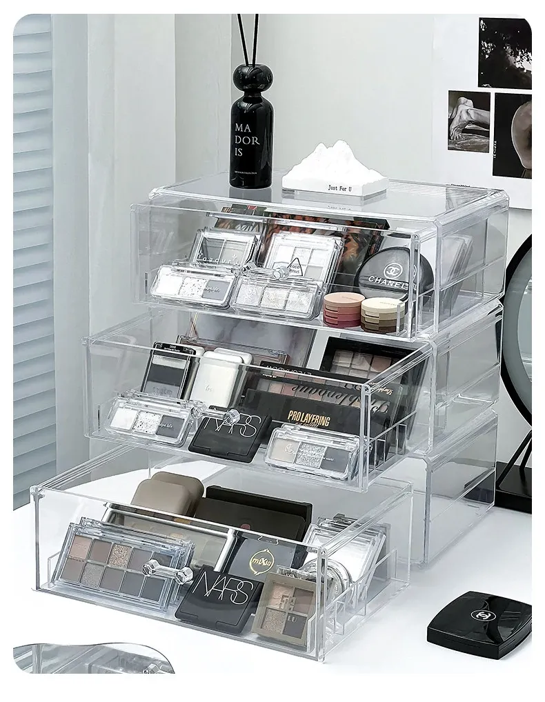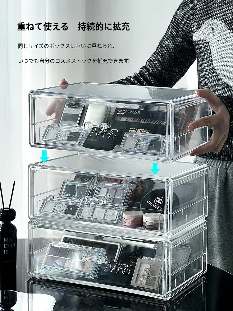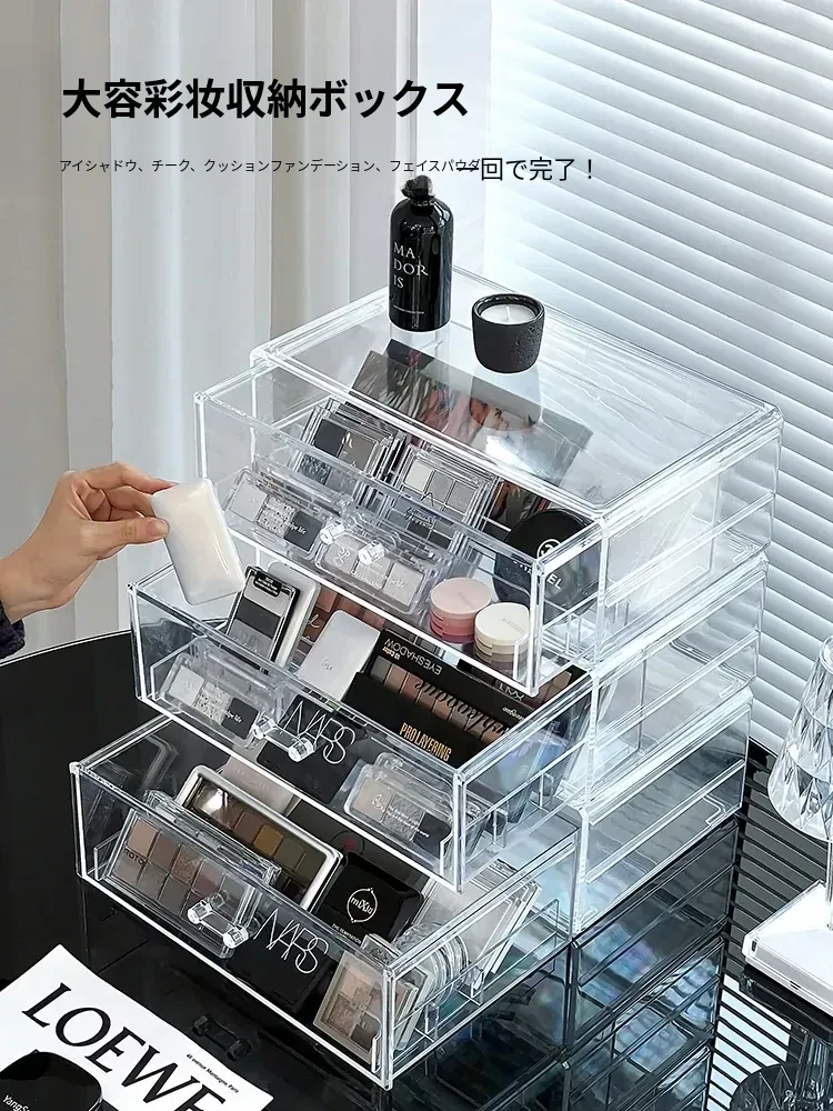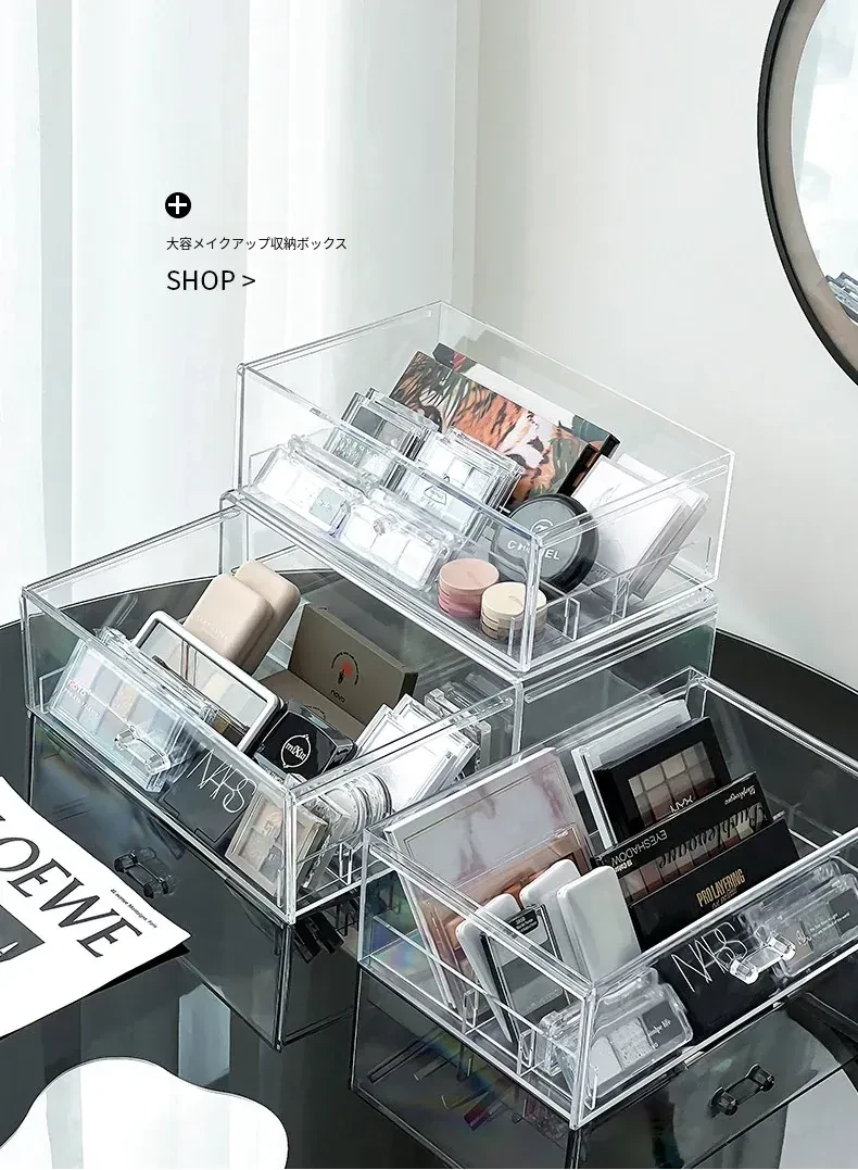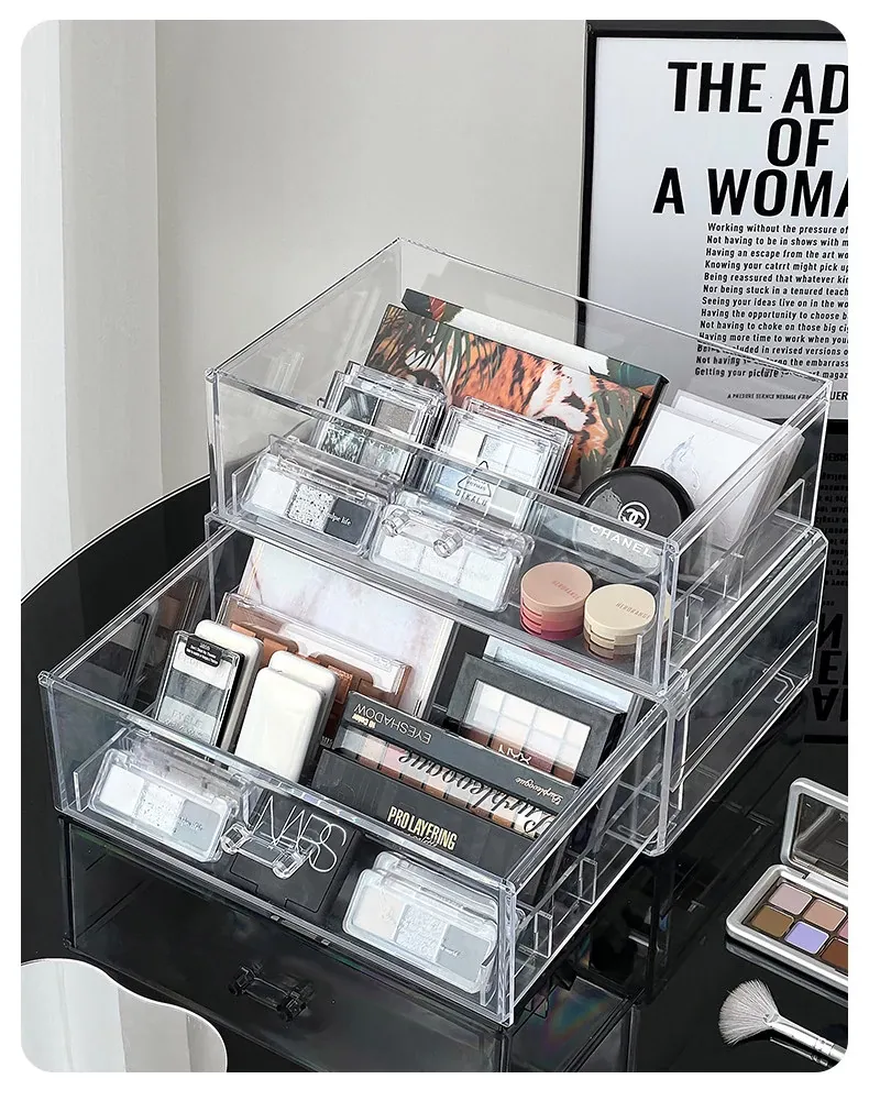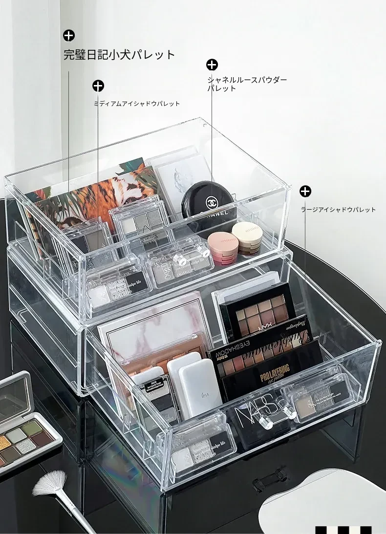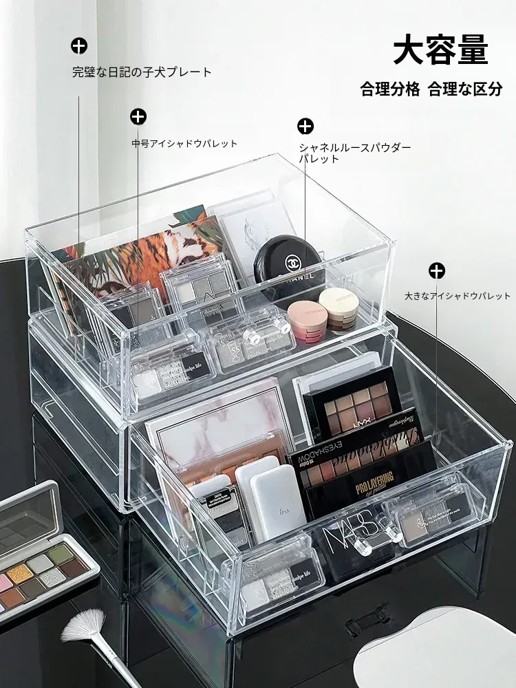 アイシャドウパレット収納ボックス アクリル製 パウダーファンデーション コスメティックオーガナイザー デスクトップ用 ネイルポリッシュ メイクアップリップスティック分け引き出しボックス - 美しさを引き立てる整理整頓!