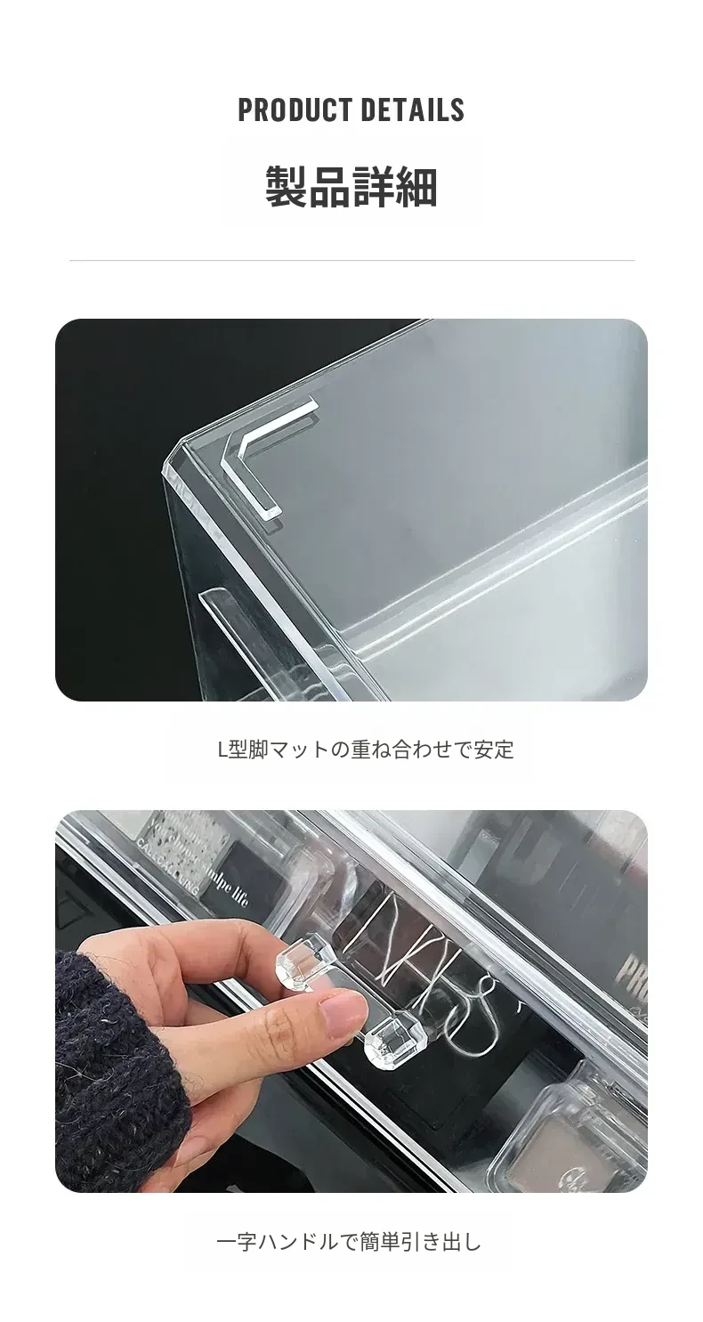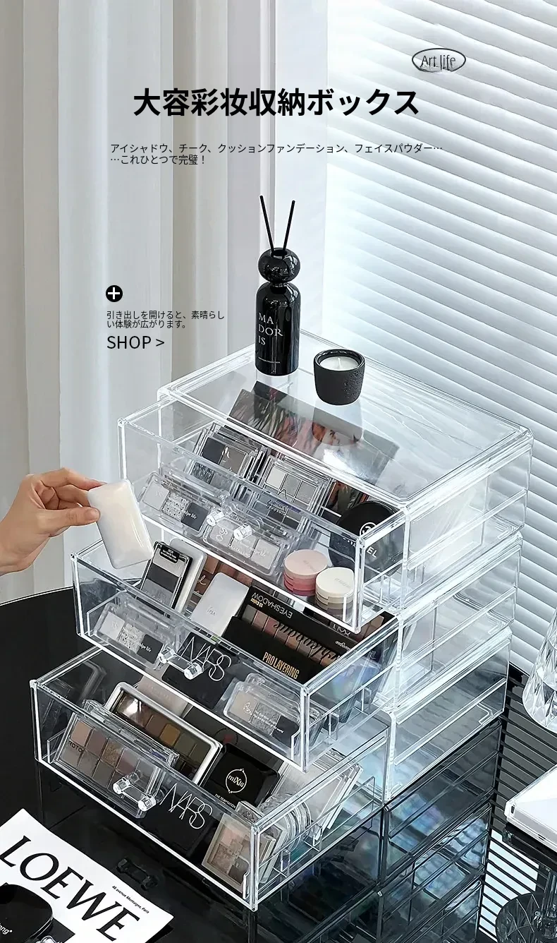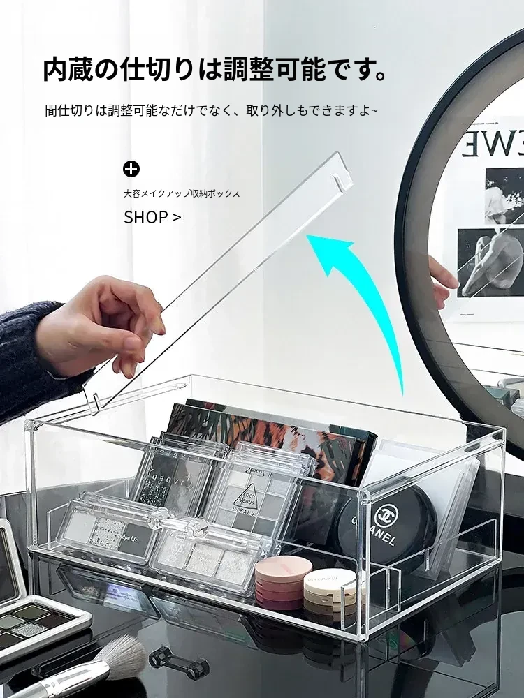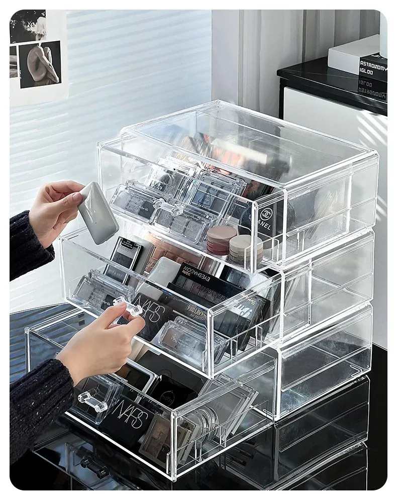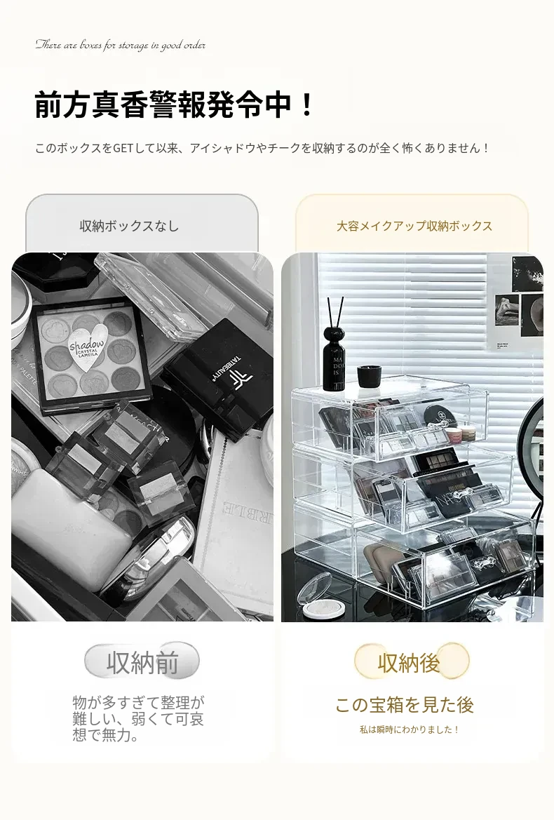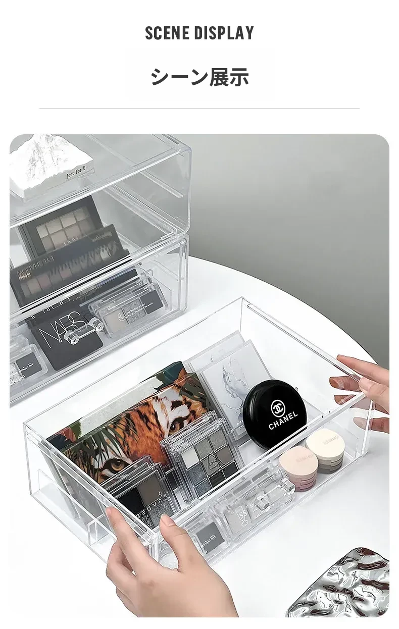 アイシャドウパレット収納ボックス アクリル製 パウダーファンデーション コスメティックオーガナイザー デスクトップ用 ネイルポリッシュ メイクアップリップスティック分け引き出しボックス - 美しさを引き立てる整理整頓!