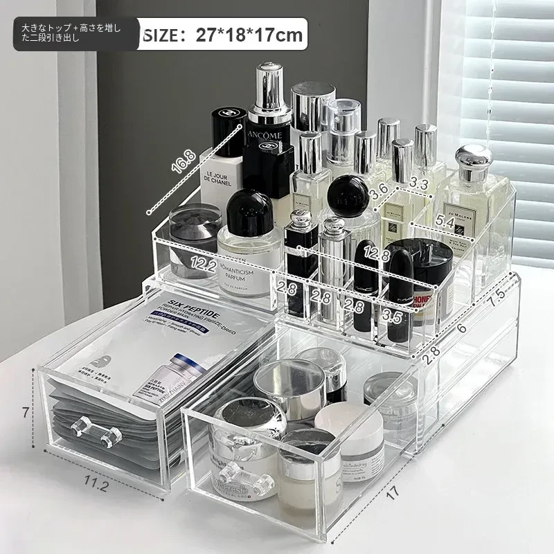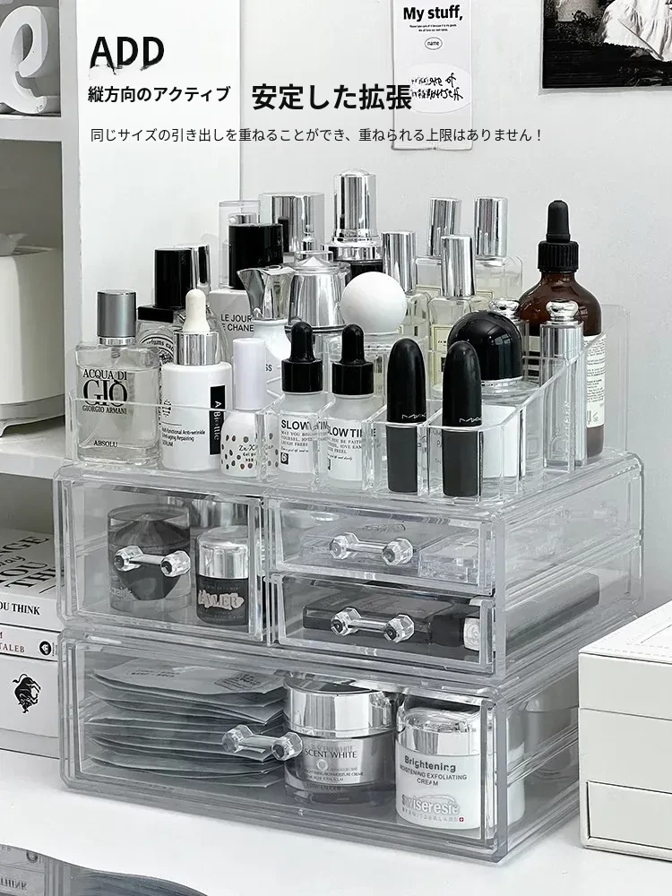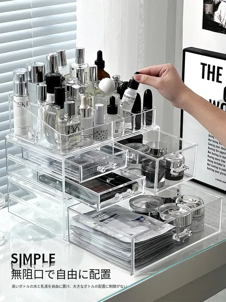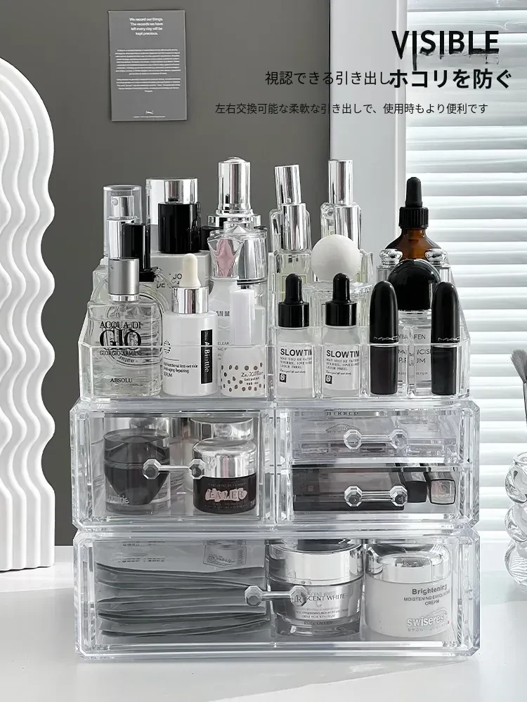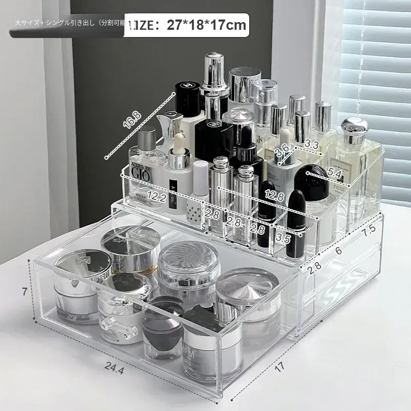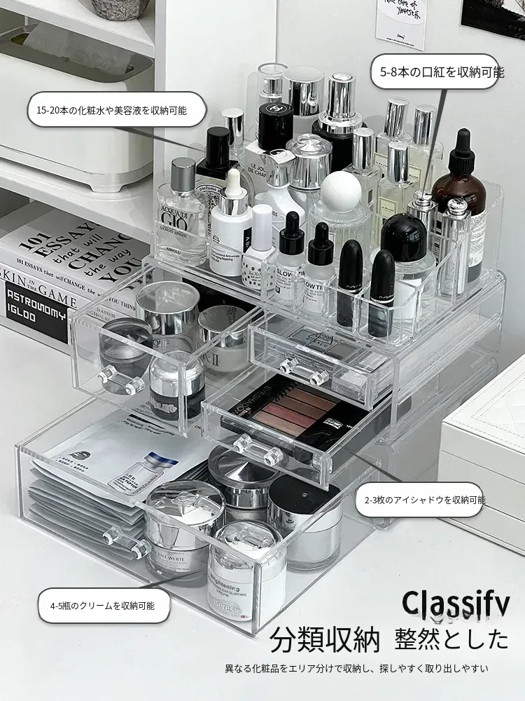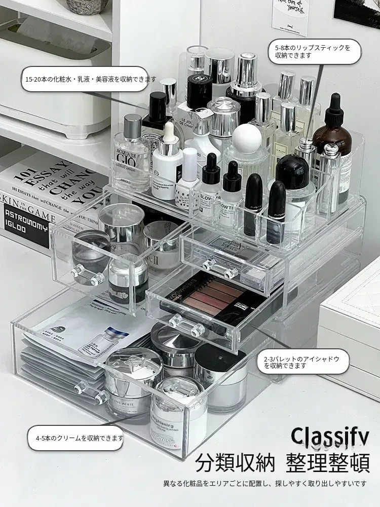 透明アクリル化粧品収納ボックス - デスクトップ引き出し式リップスタンド、メイク台に最適なスキンケアアイテム収納ラック!整理整頓で美しさを引き立てる!