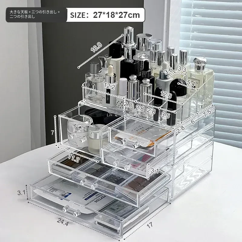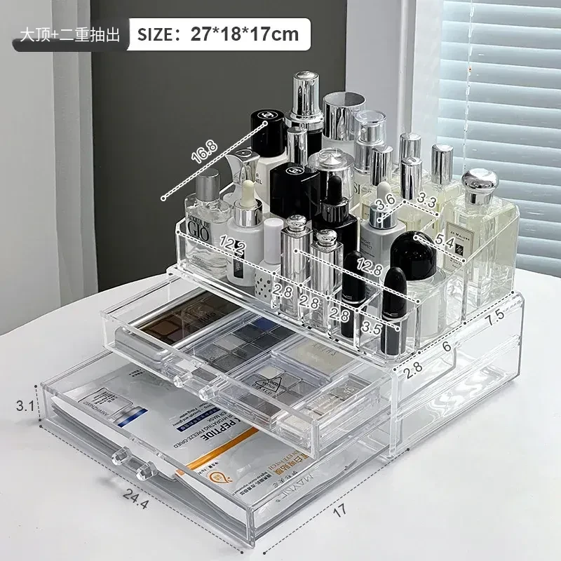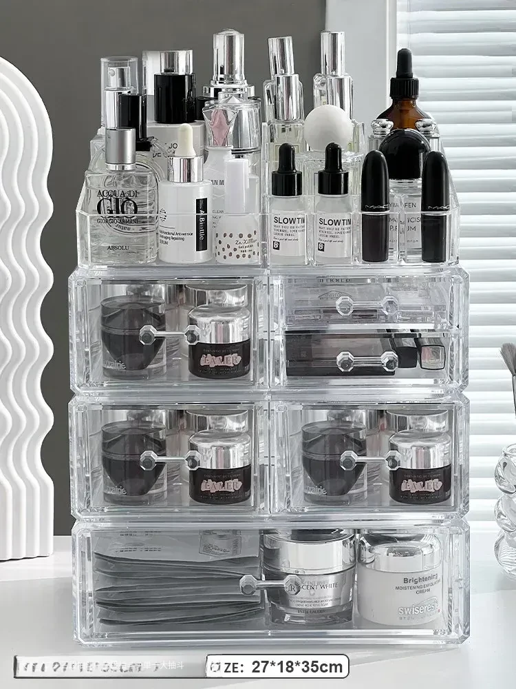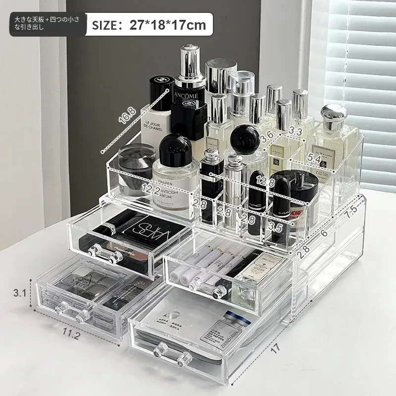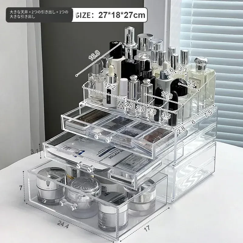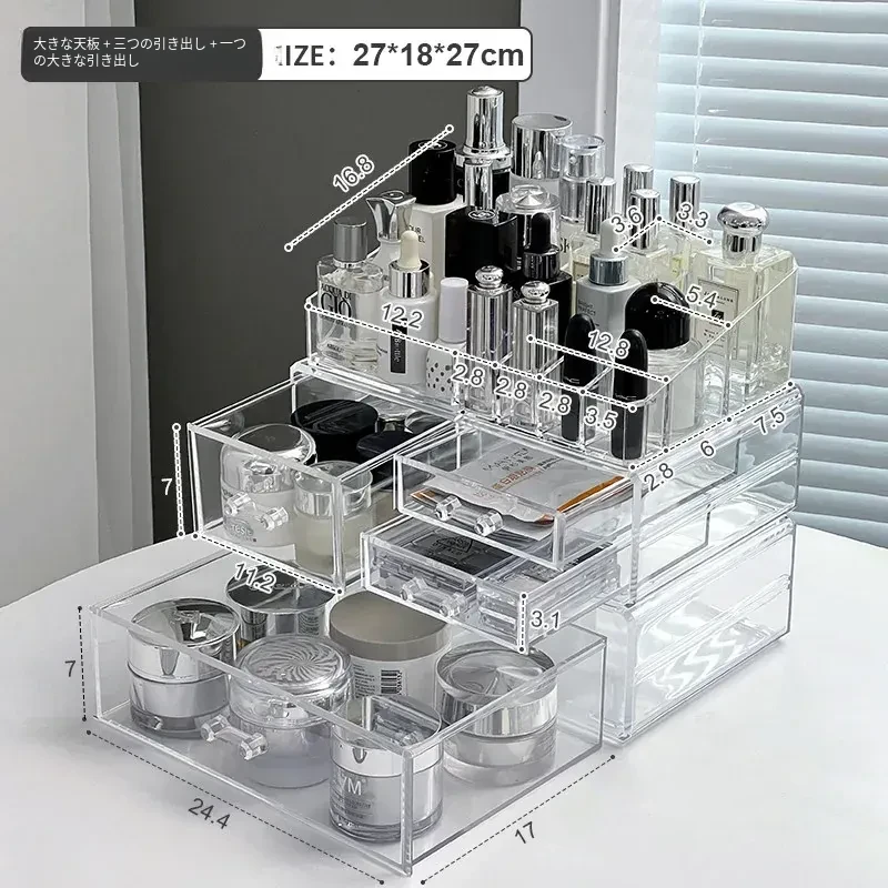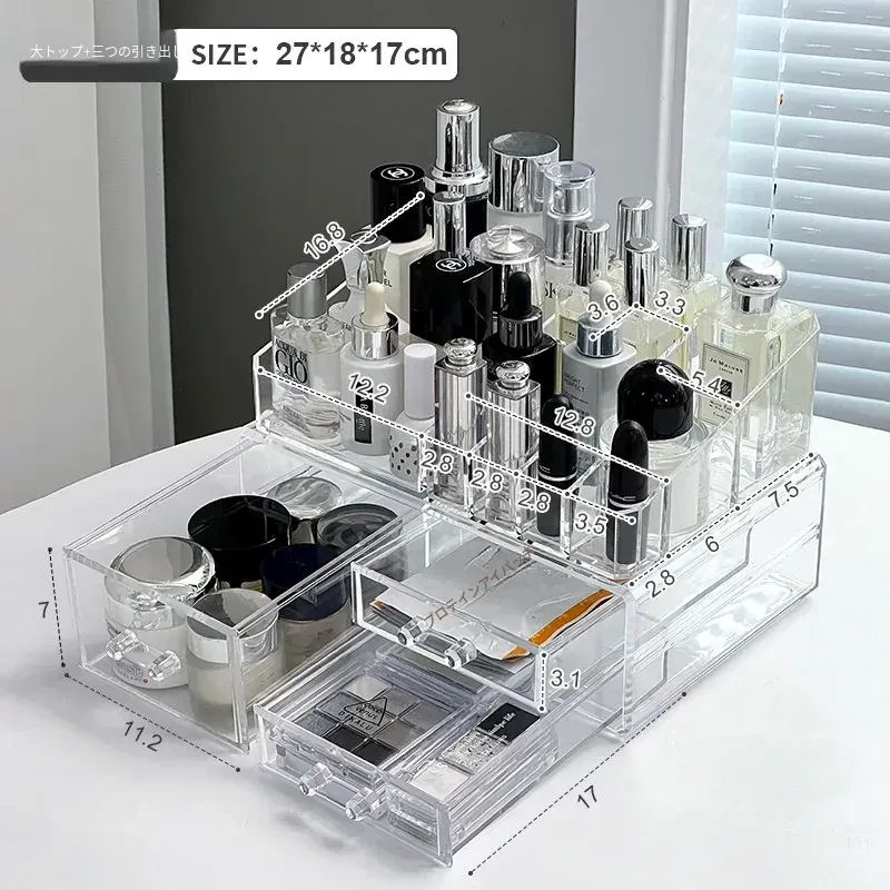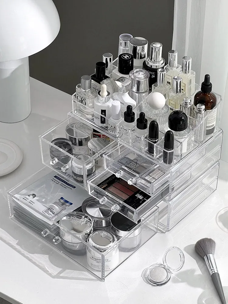 透明アクリル化粧品収納ボックス - デスクトップ引き出し式リップスタンド、メイク台に最適なスキンケアアイテム収納ラック!整理整頓で美しさを引き立てる!