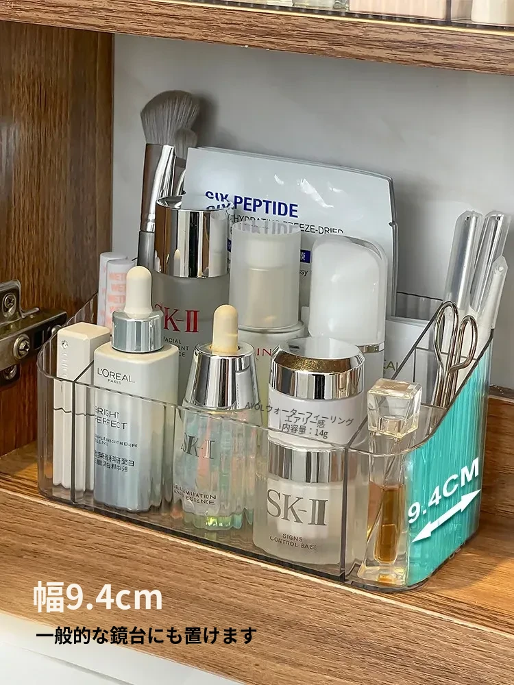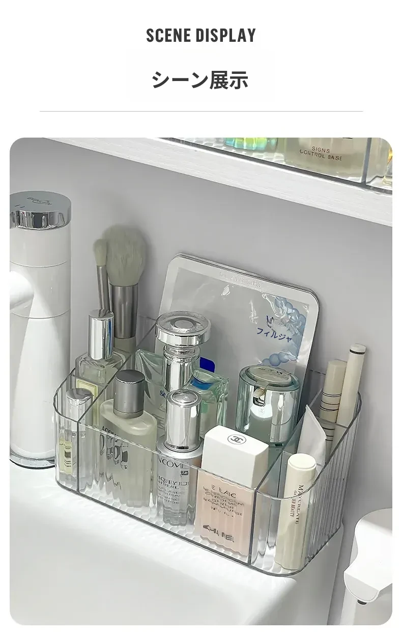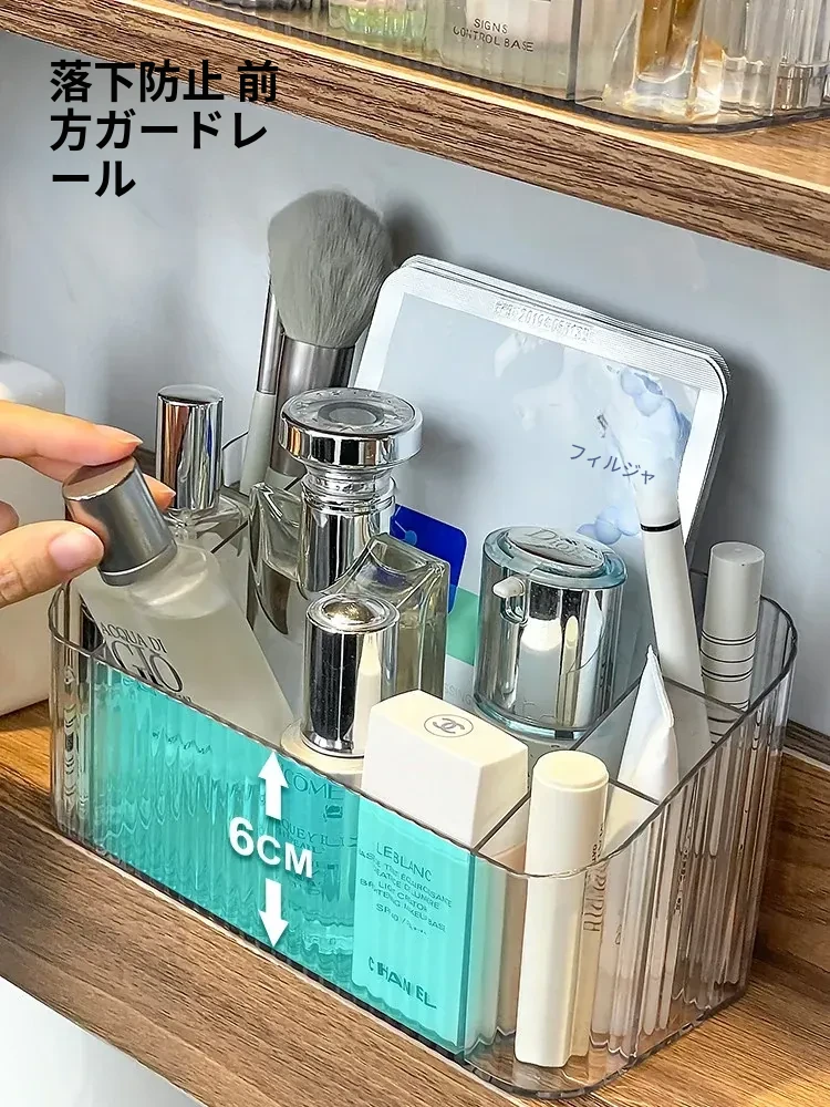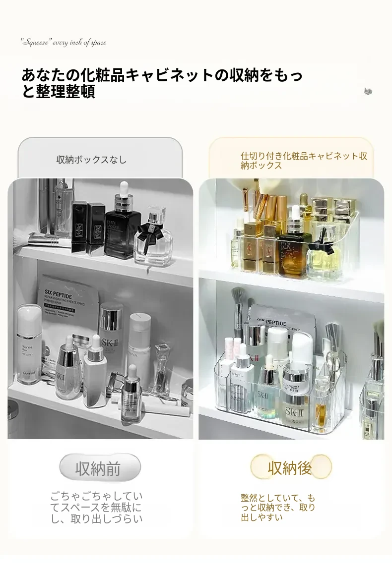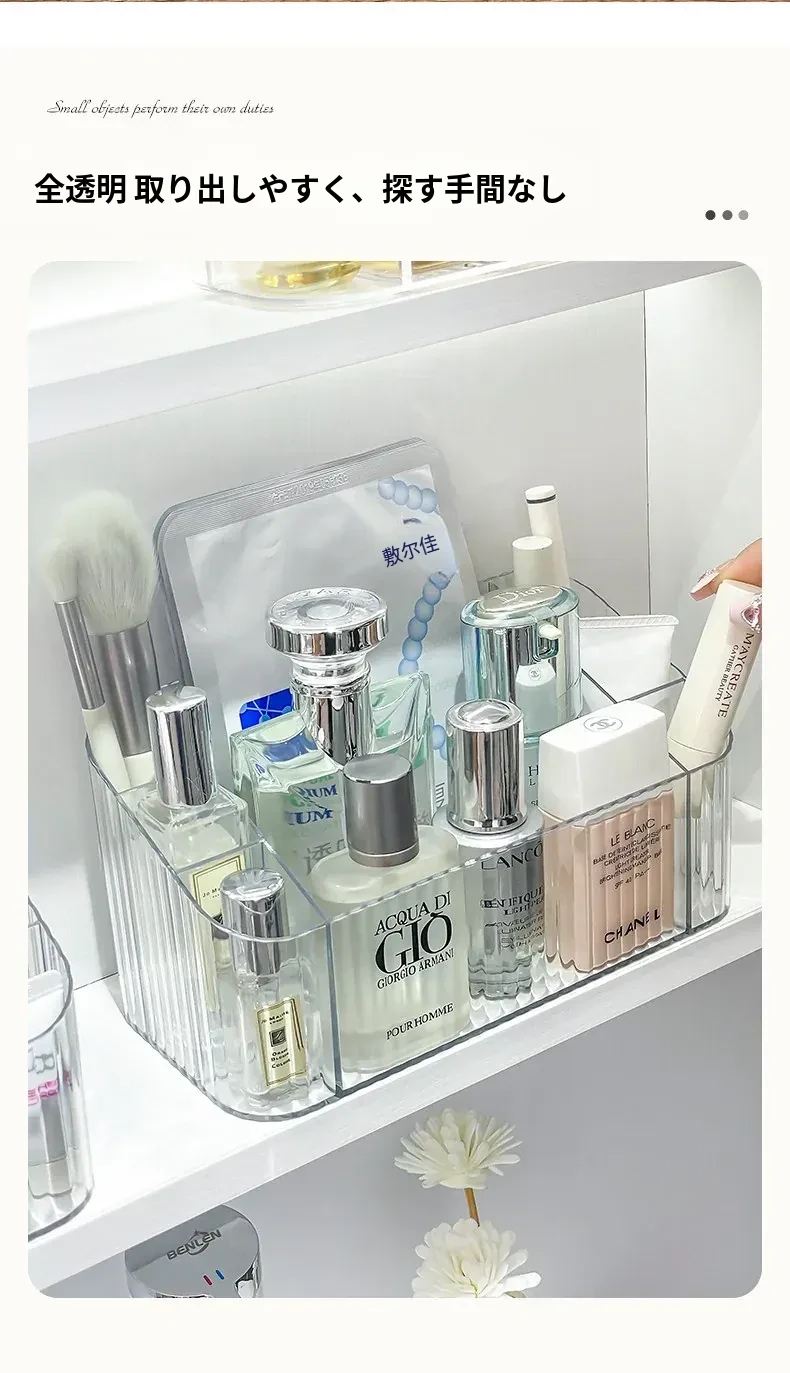 透明アクリル製化粧品収納ボックス - バスルームミラーキャビネット用分割整理トレー。メイクブラシやリップスティックを美しく整理し、スタイリッシュな空間を演出!