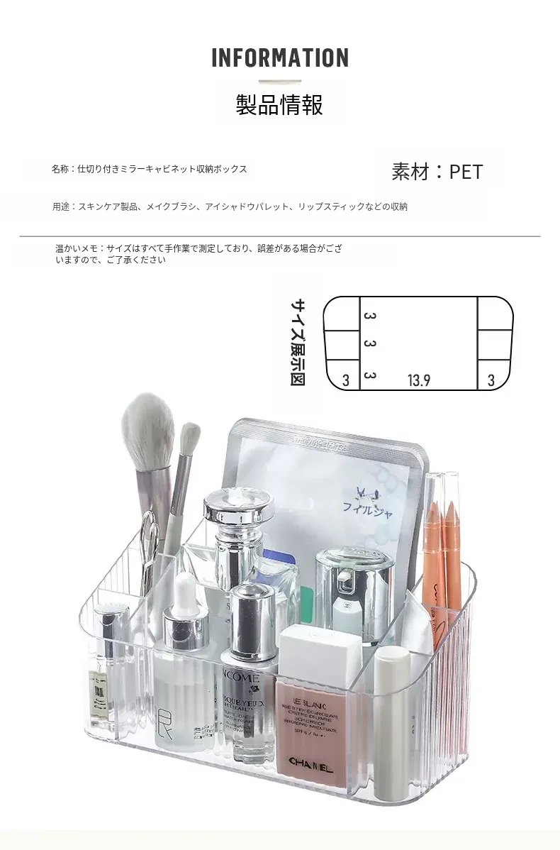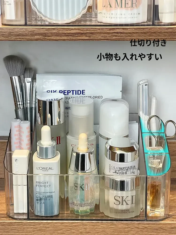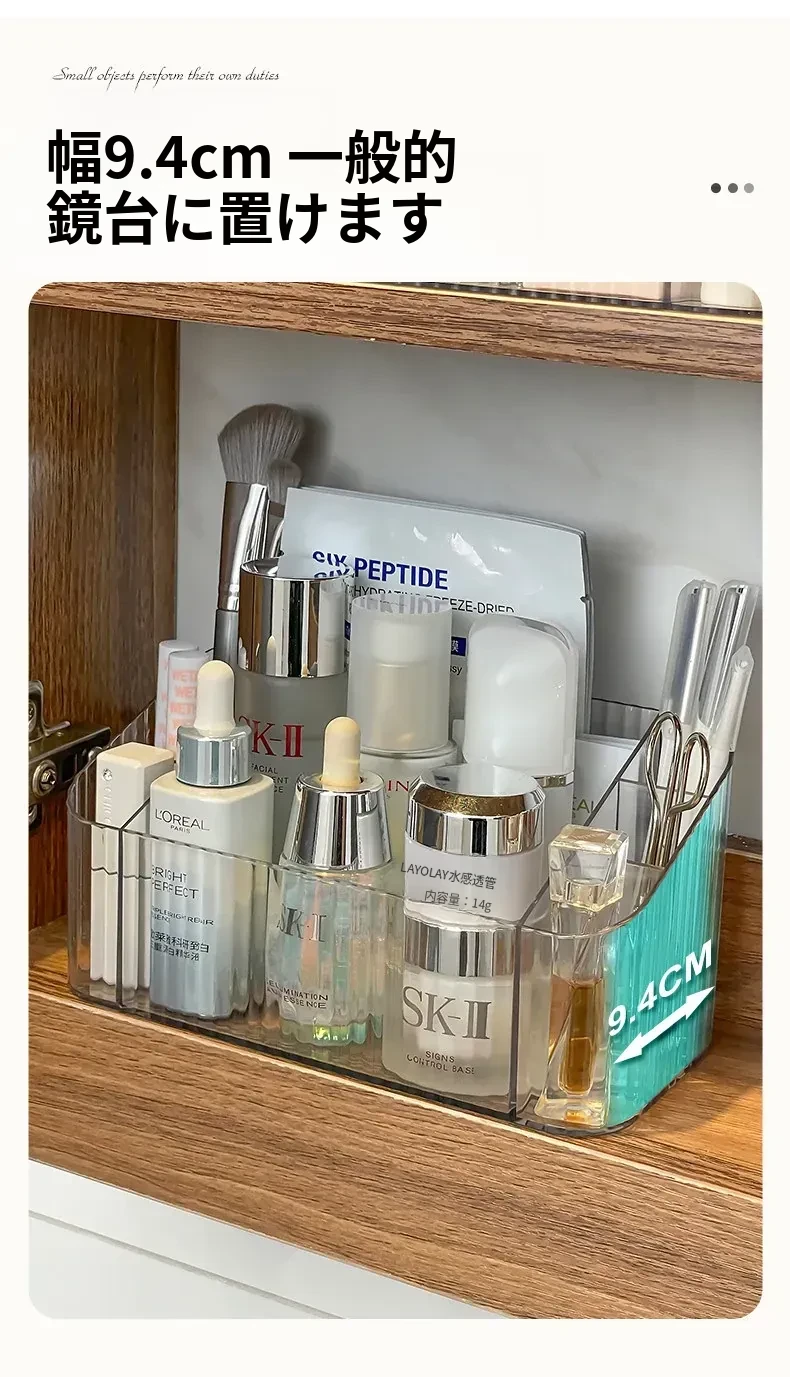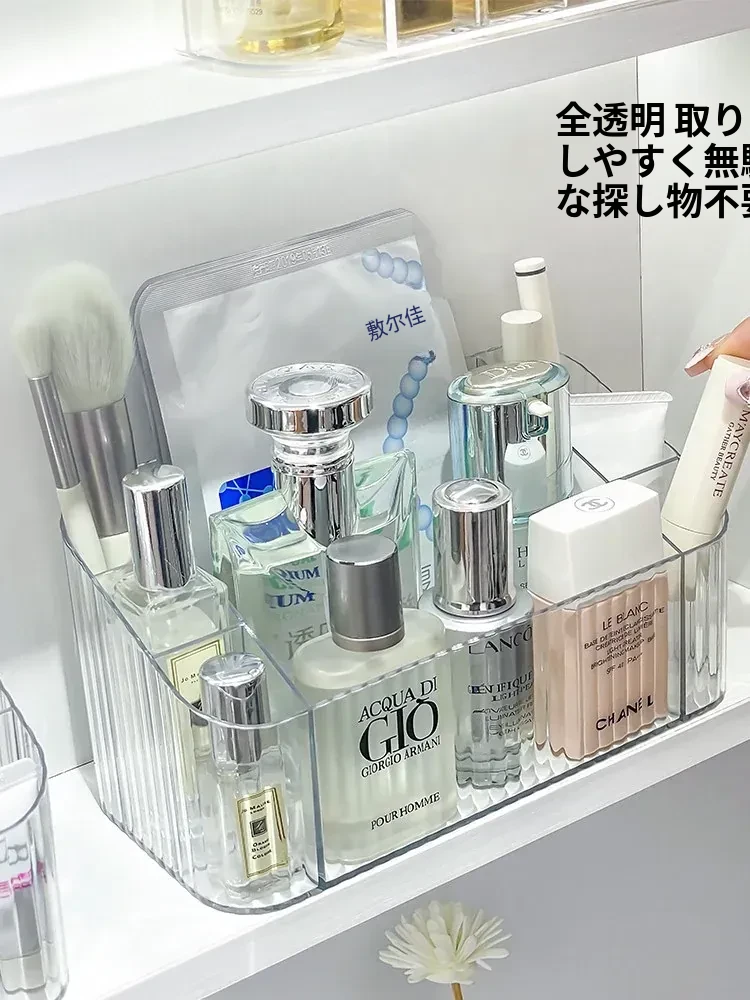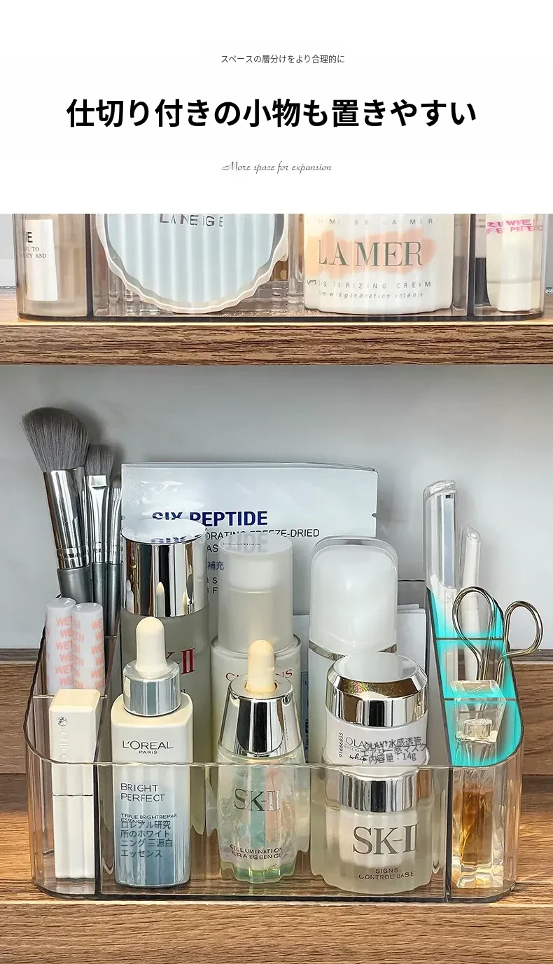 透明アクリル製化粧品収納ボックス - バスルームミラーキャビネット用分割整理トレー。メイクブラシやリップスティックを美しく整理し、スタイリッシュな空間を演出!
