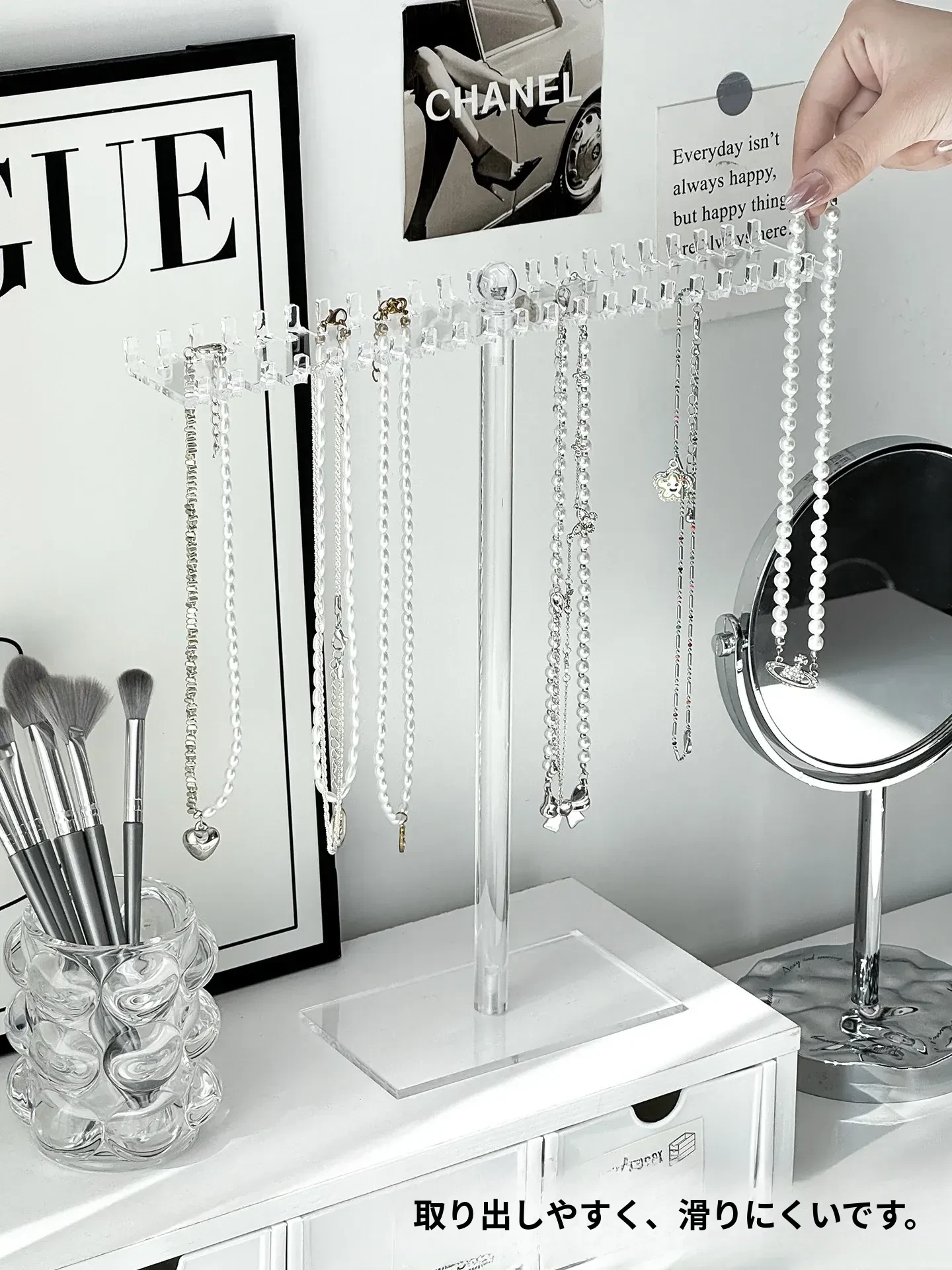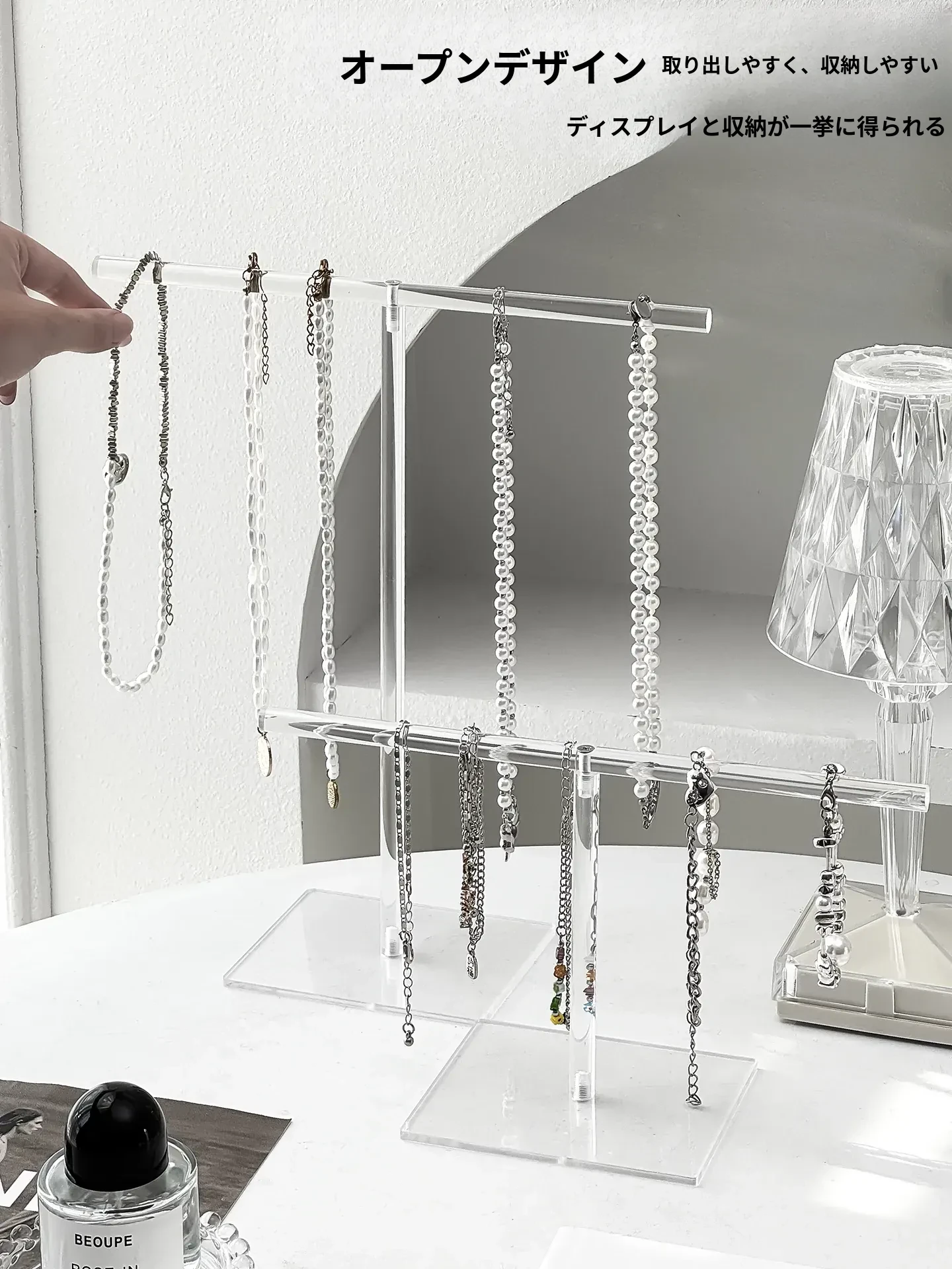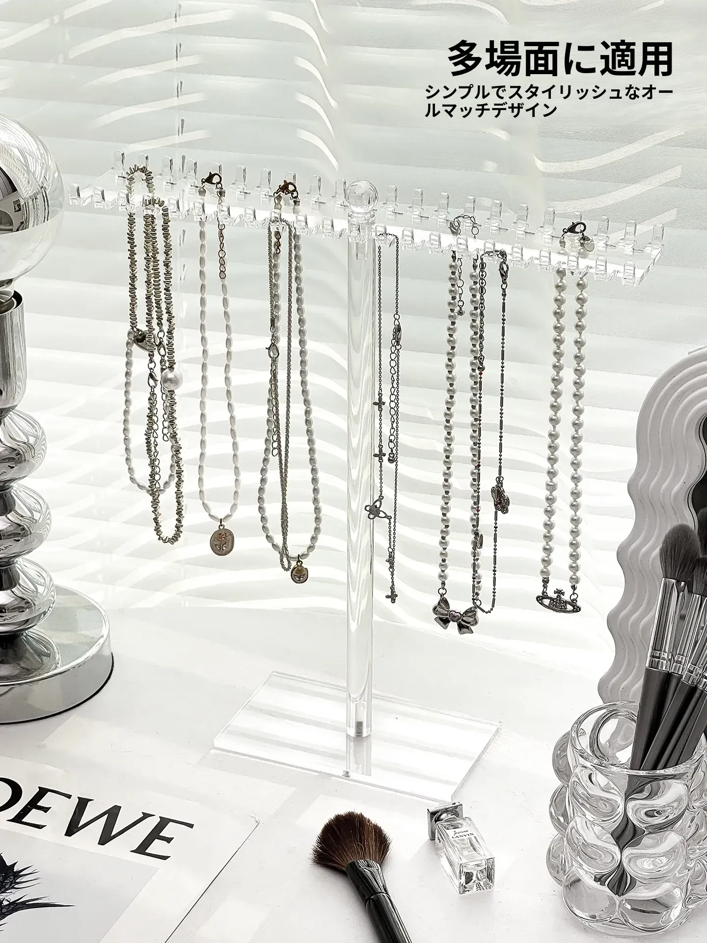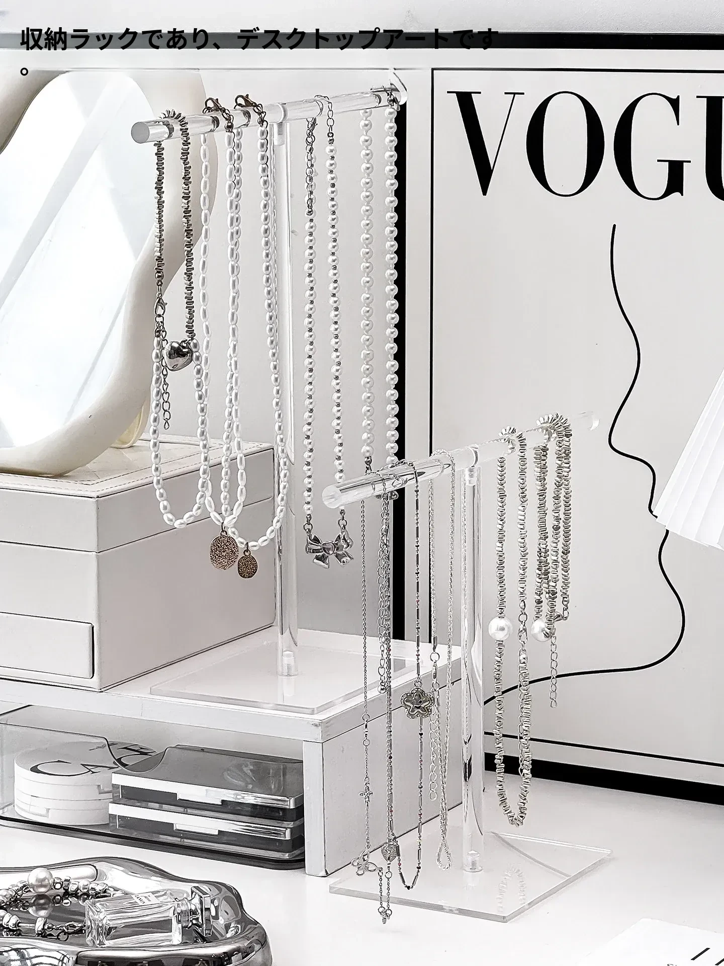 アクリルネックレスディスプレイスタンドデスクトップジュエリー収納ボックス、ブレスレット・ペンダントフック、文玩手串の美しい展示架。おしゃれにアクセサリーを整理して、空間を華やかに演出!