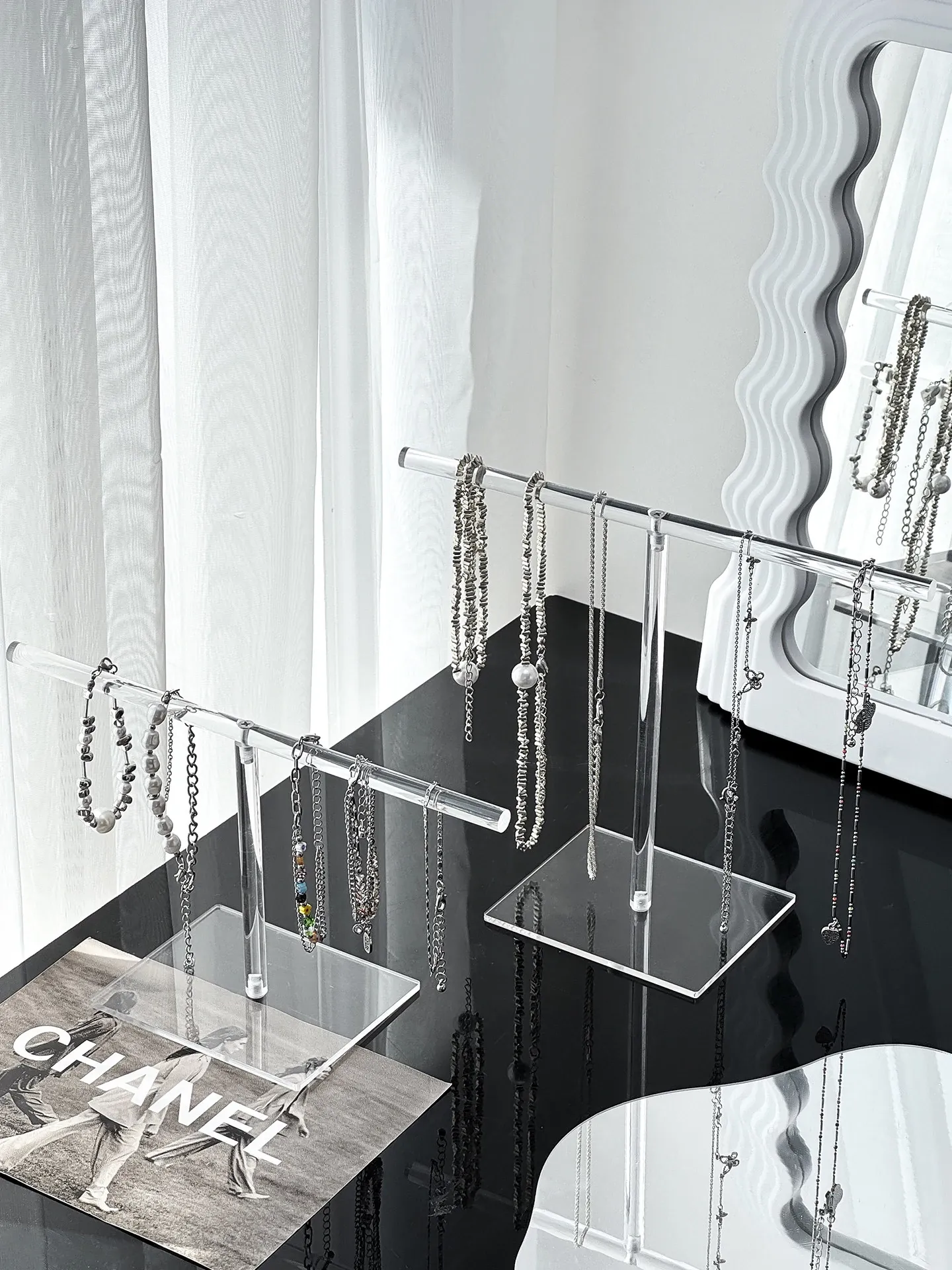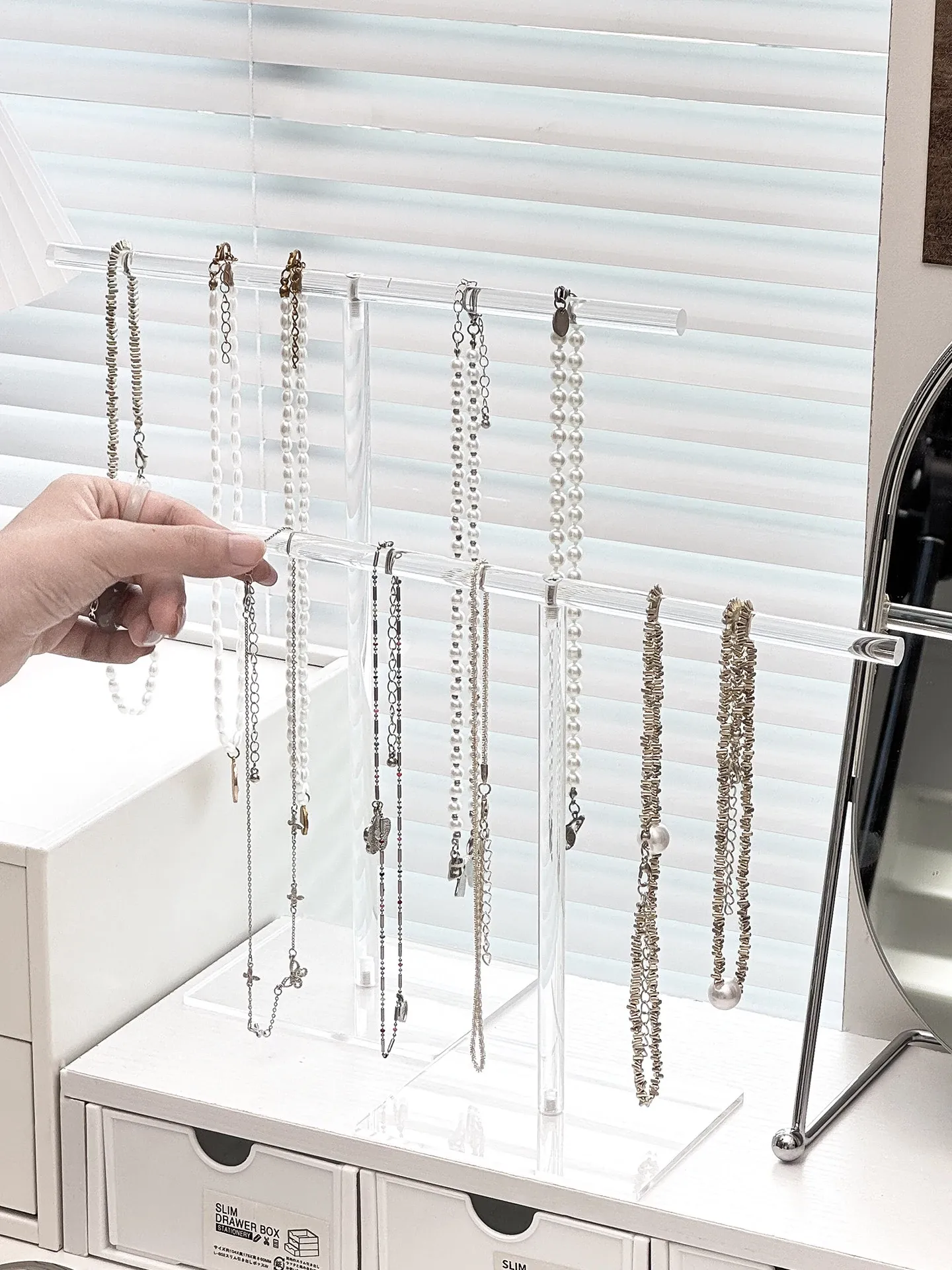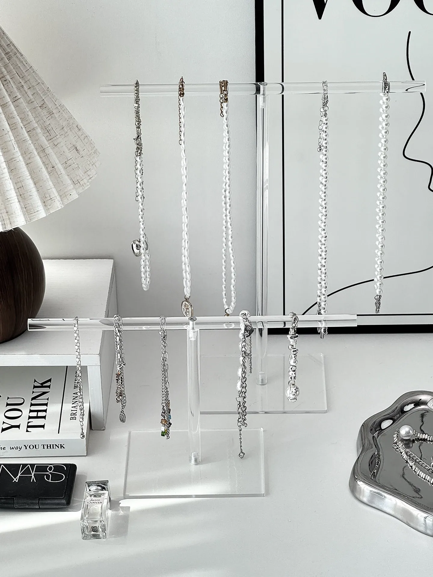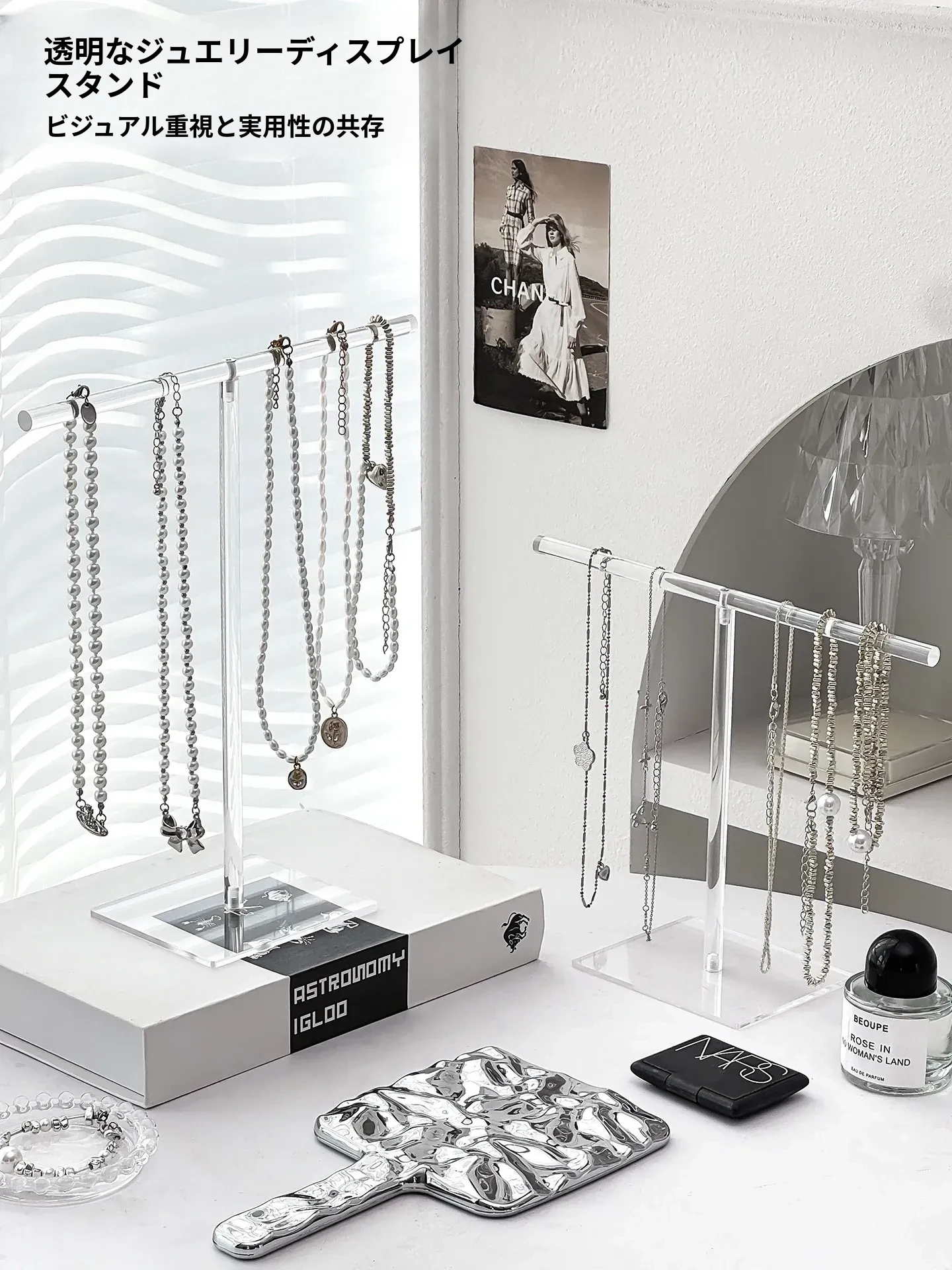 アクリルネックレスディスプレイスタンドデスクトップジュエリー収納ボックス、ブレスレット・ペンダントフック、文玩手串の美しい展示架。おしゃれにアクセサリーを整理して、空間を華やかに演出!
