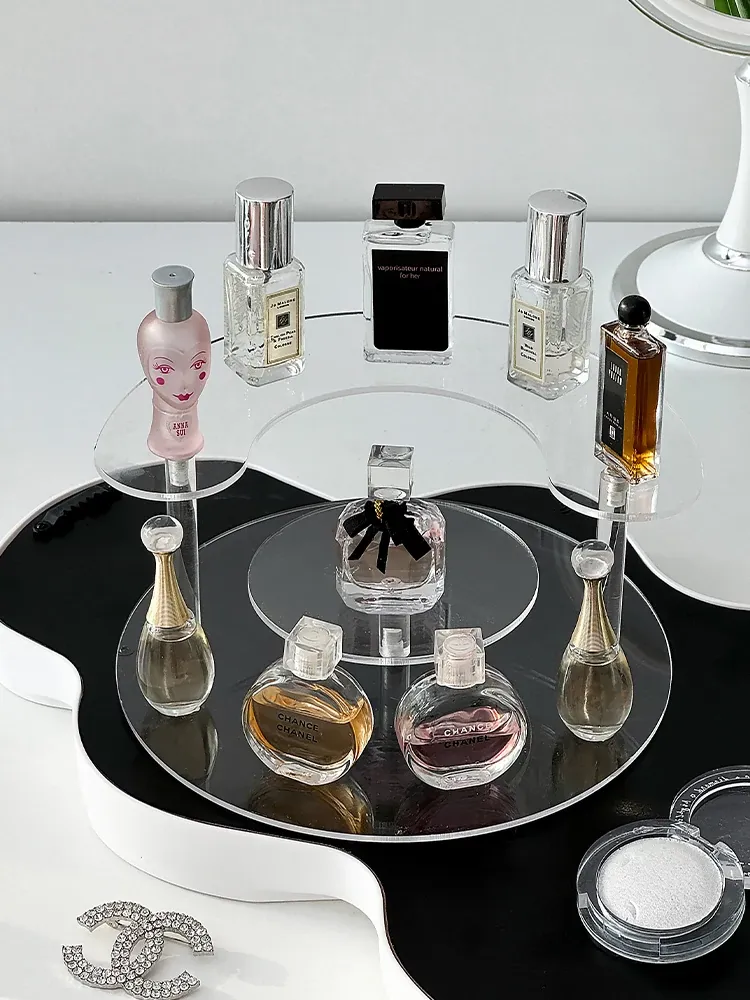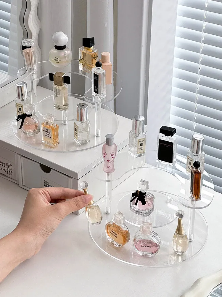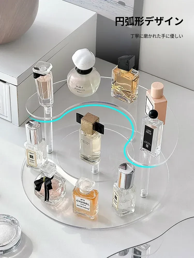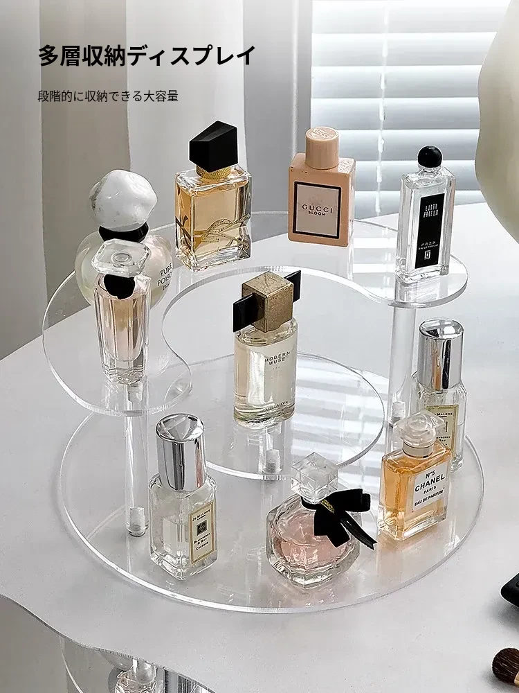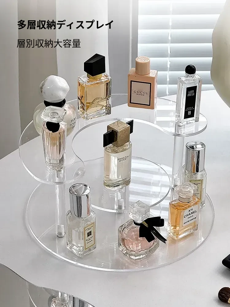 香水収納ラック アクリル製 サンプル用化粧品ディスプレイ 高級感あふれる多層トレイ デスクトップ用リップスティック展示ラック