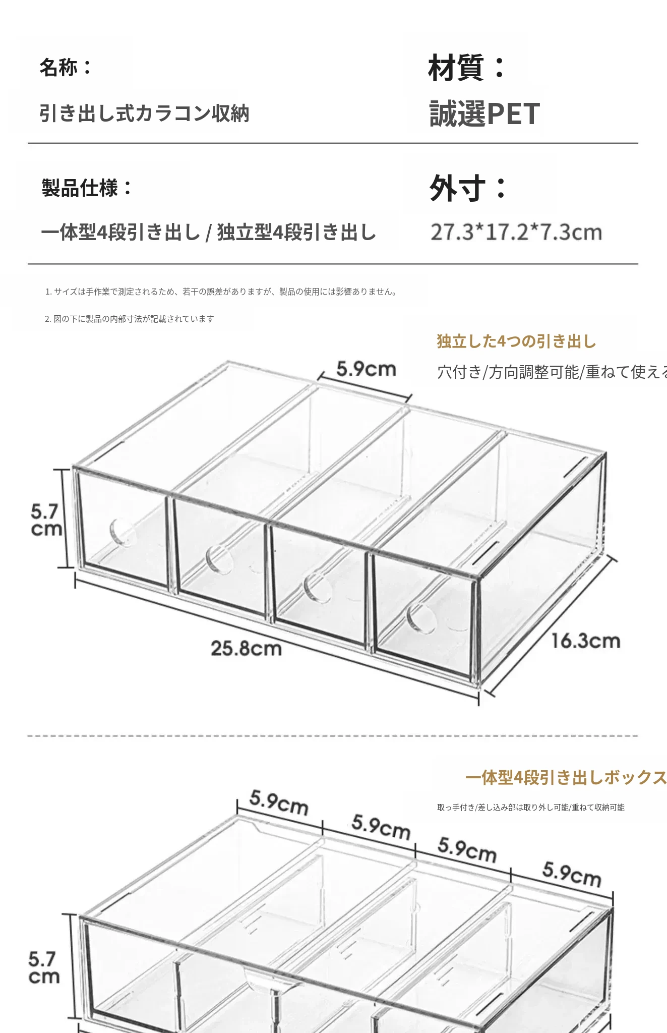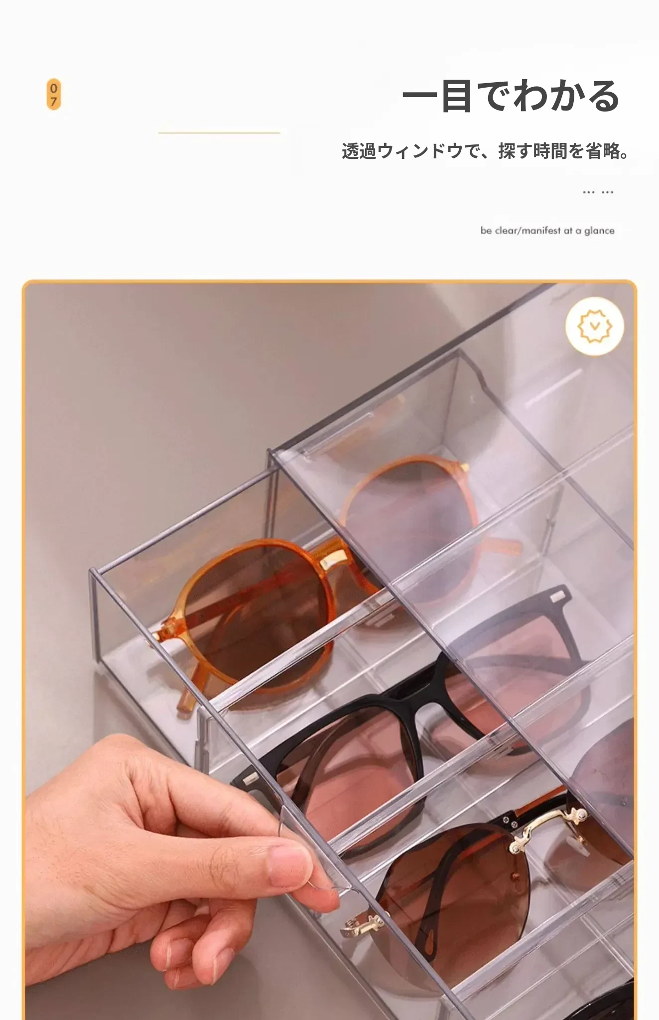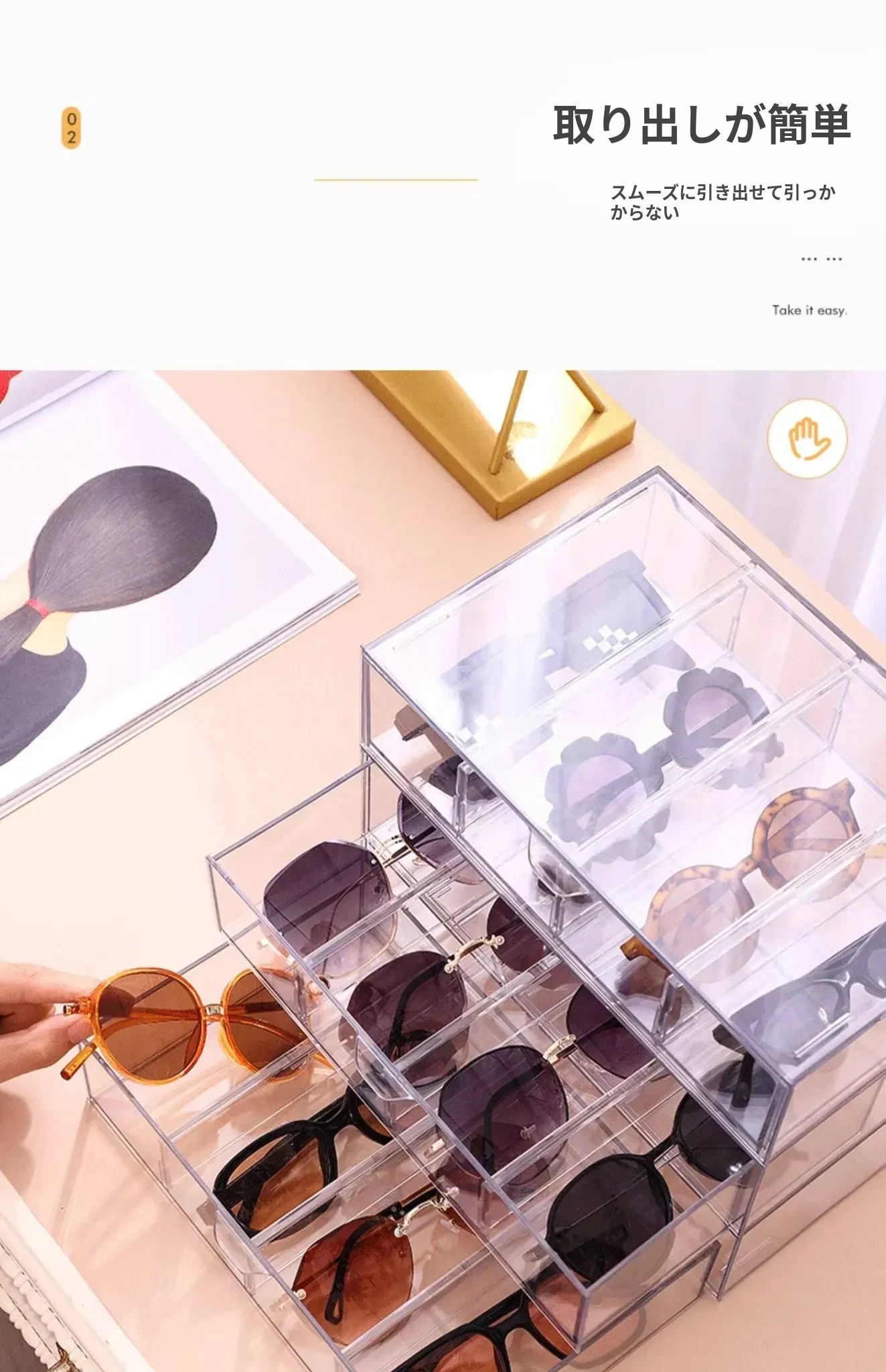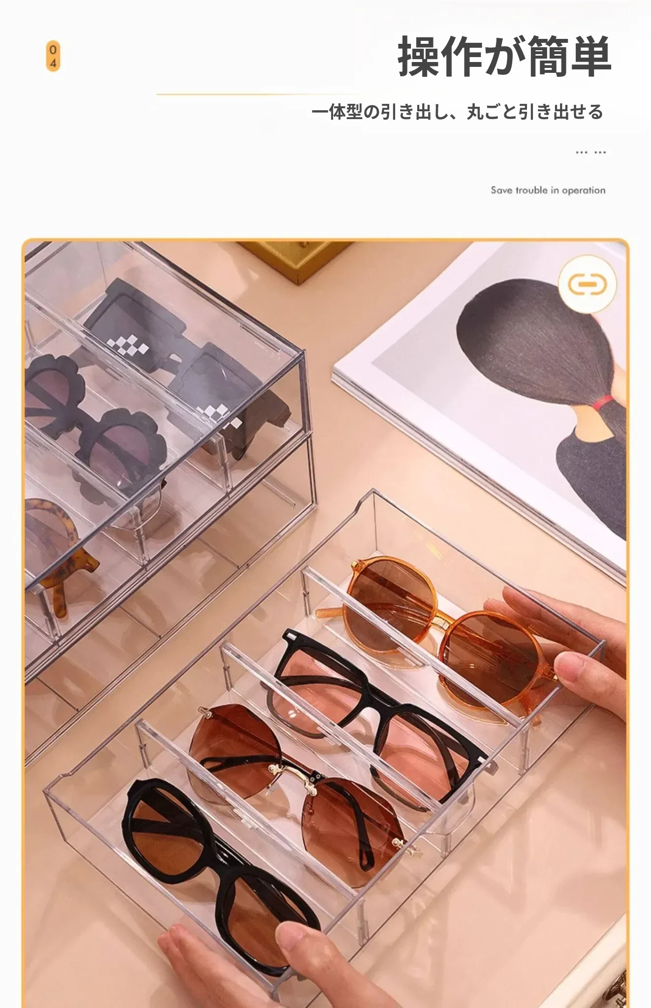 アクリル製デスク用メガネ・サングラス収納ボックス 抽屉仕切り付き 透明防塵 重ねて使える化粧品・リップ収納ラック!おしゃれで実用的な整理整頓アイテム!