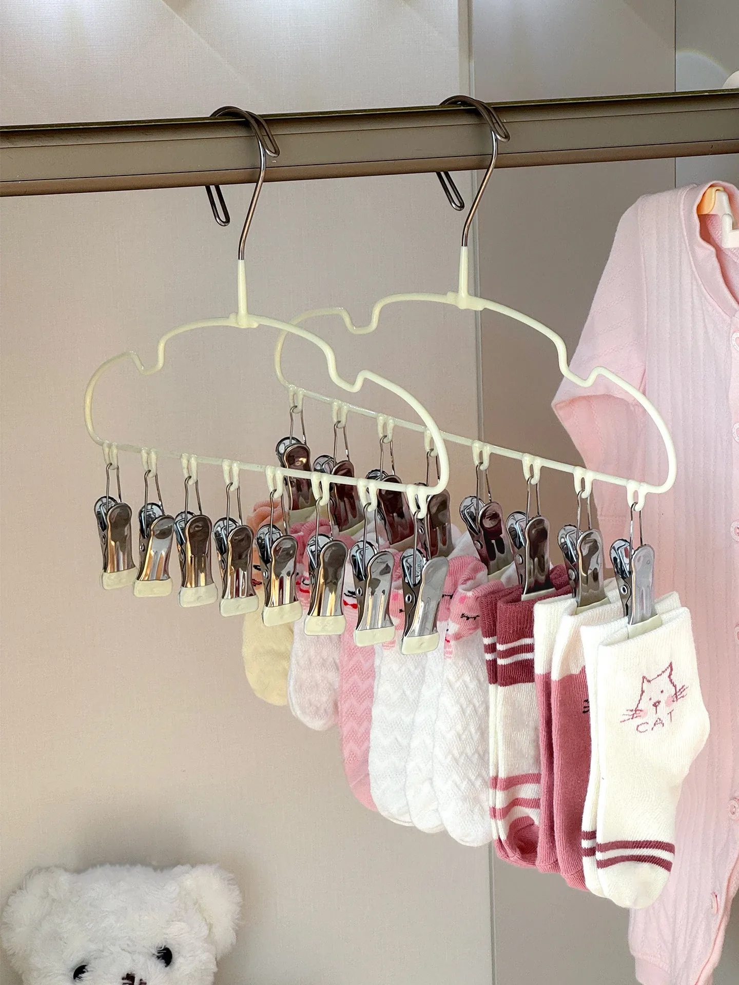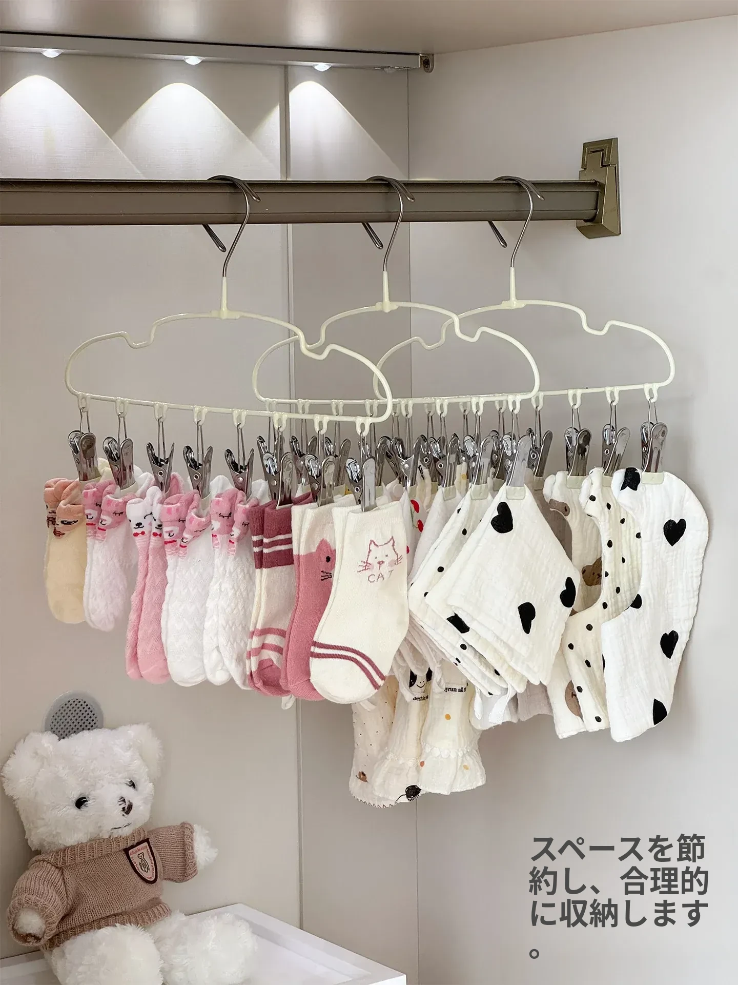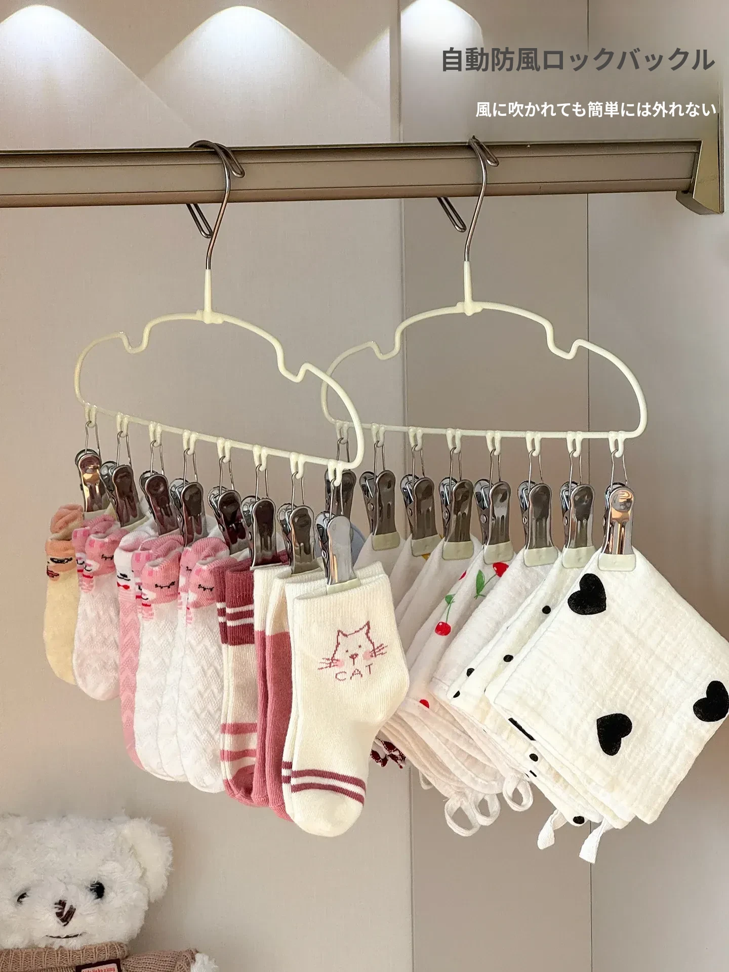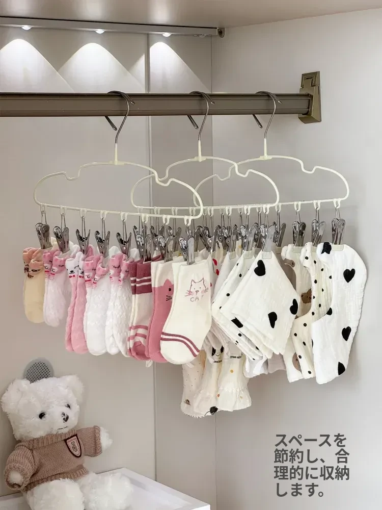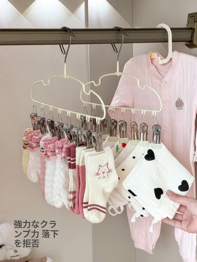 新生児専用ハンガー!赤ちゃんの靴下もすっきり干せる多機能ハンガー。赤ちゃんの衣類を簡単に整理整頓!家庭用に最適な便利アイテムです。