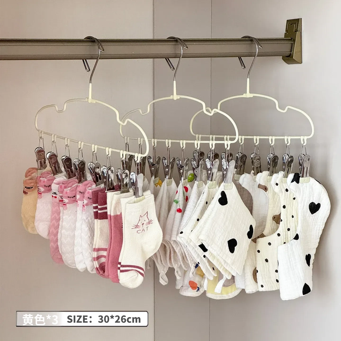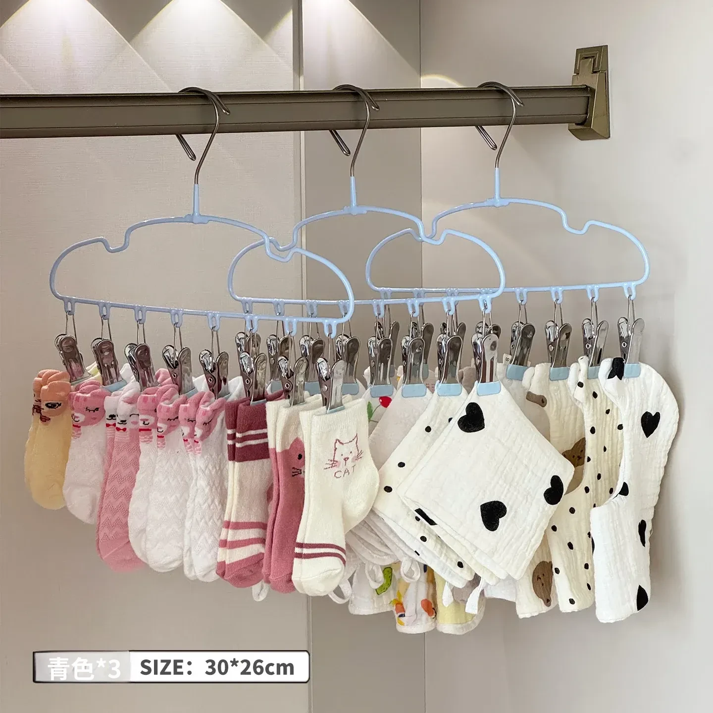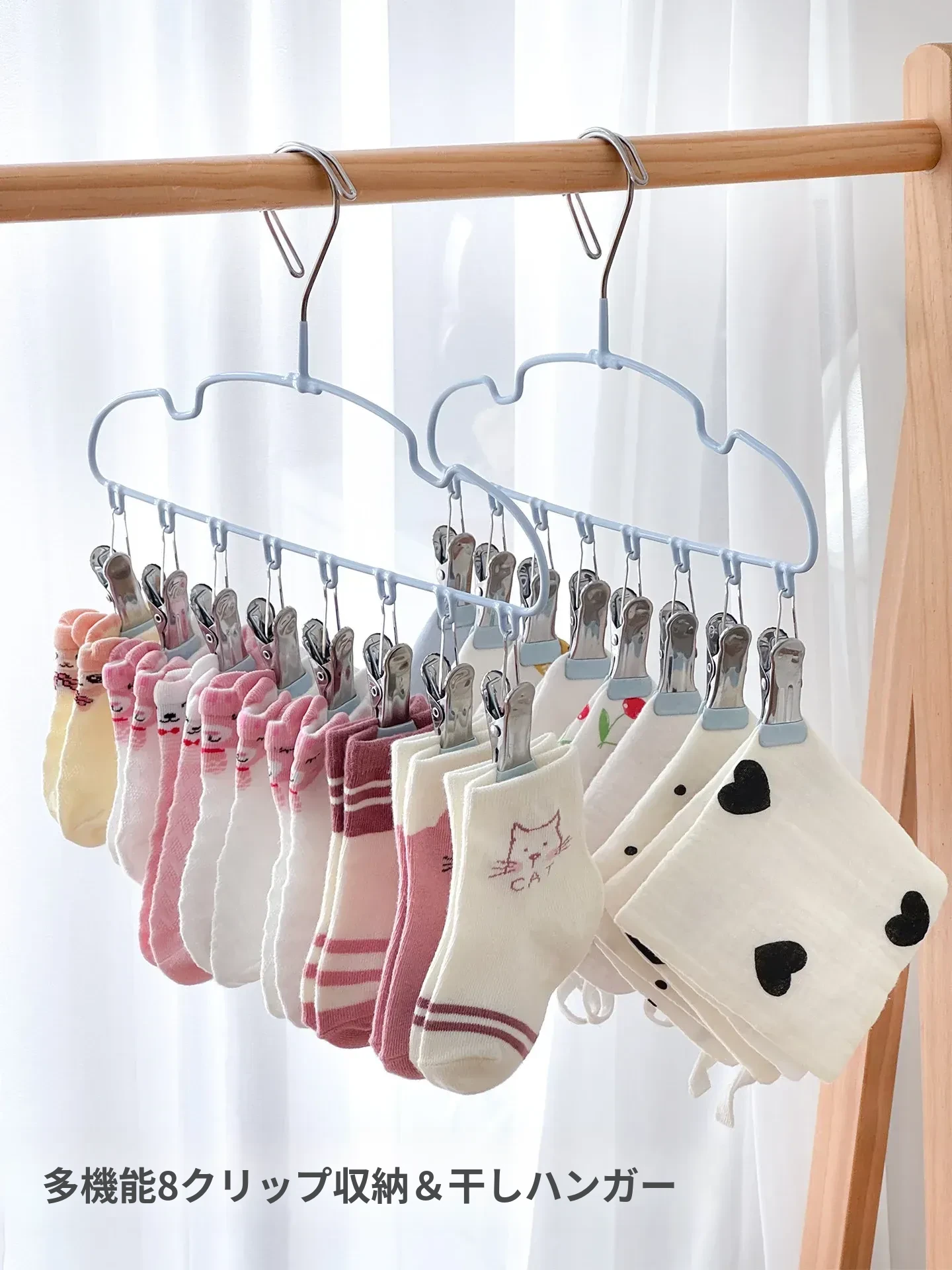 新生児専用ハンガー!赤ちゃんの靴下もすっきり干せる多機能ハンガー。赤ちゃんの衣類を簡単に整理整頓!家庭用に最適な便利アイテムです。