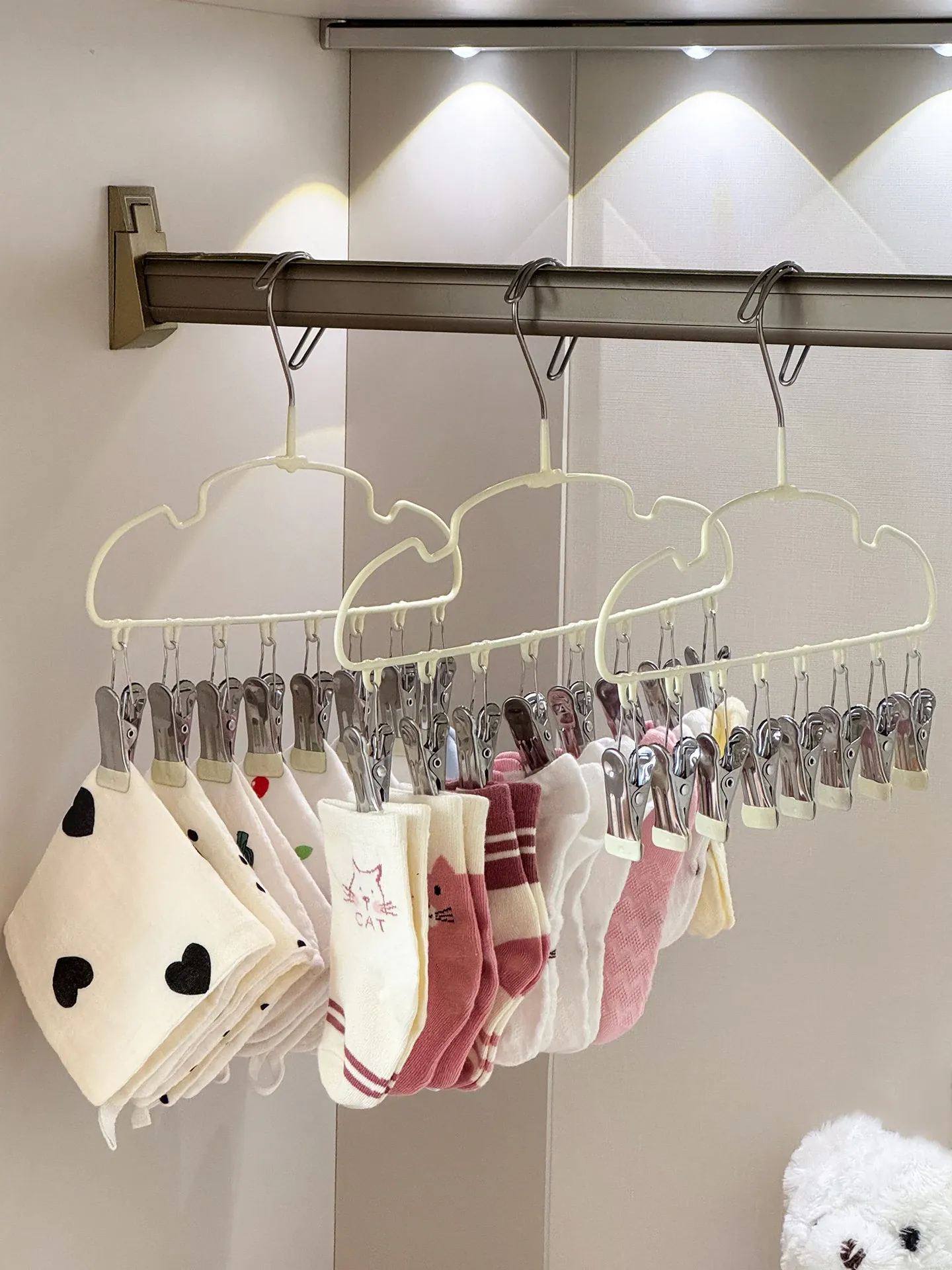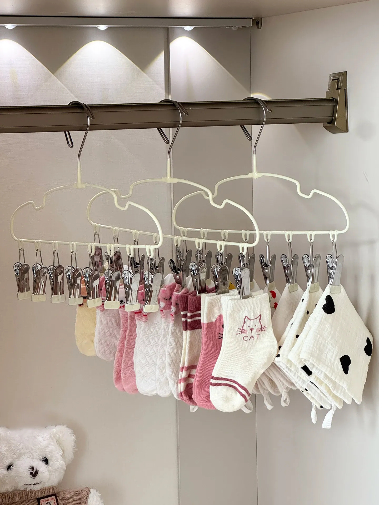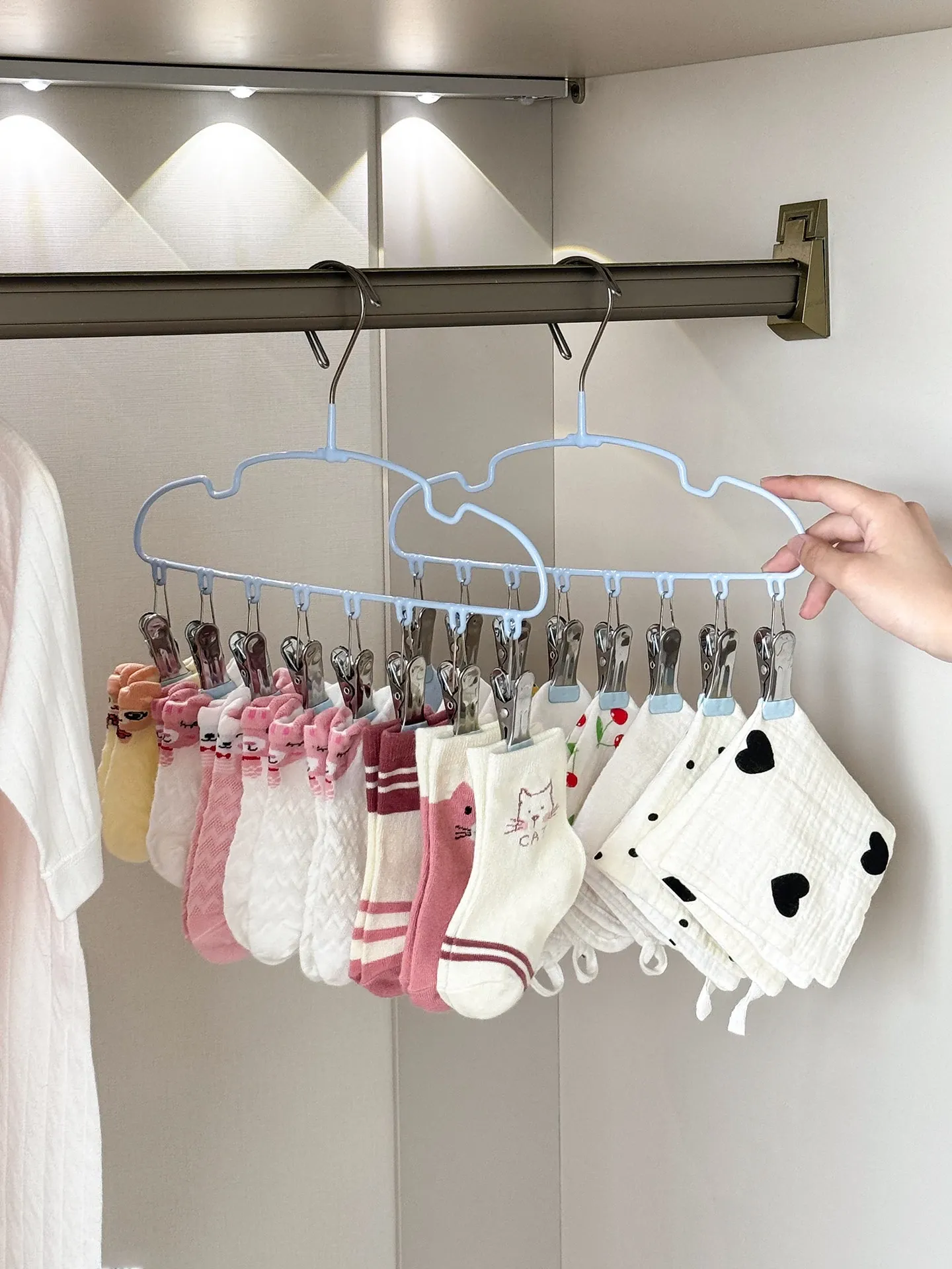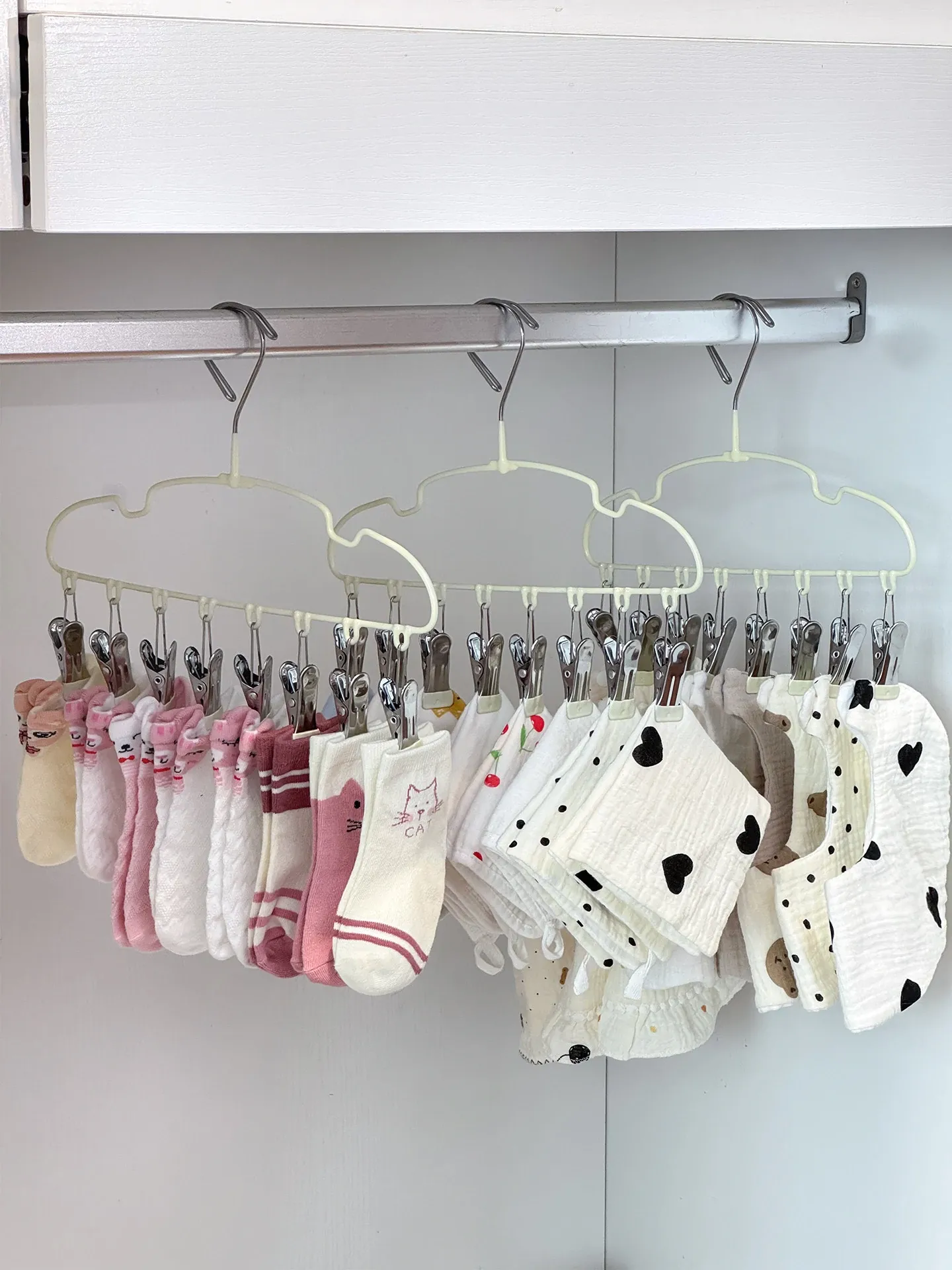 新生児専用ハンガー!赤ちゃんの靴下もすっきり干せる多機能ハンガー。赤ちゃんの衣類を簡単に整理整頓!家庭用に最適な便利アイテムです。