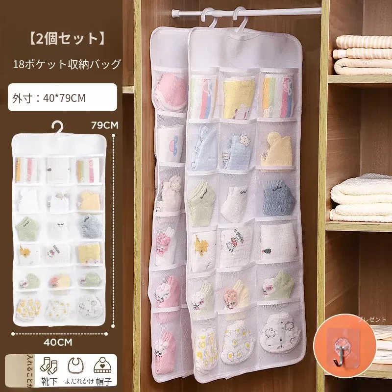 【2個セット-フック付き】18マス収納ハンガーバッグ