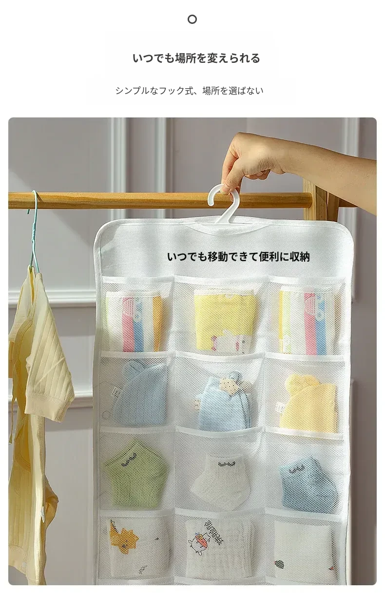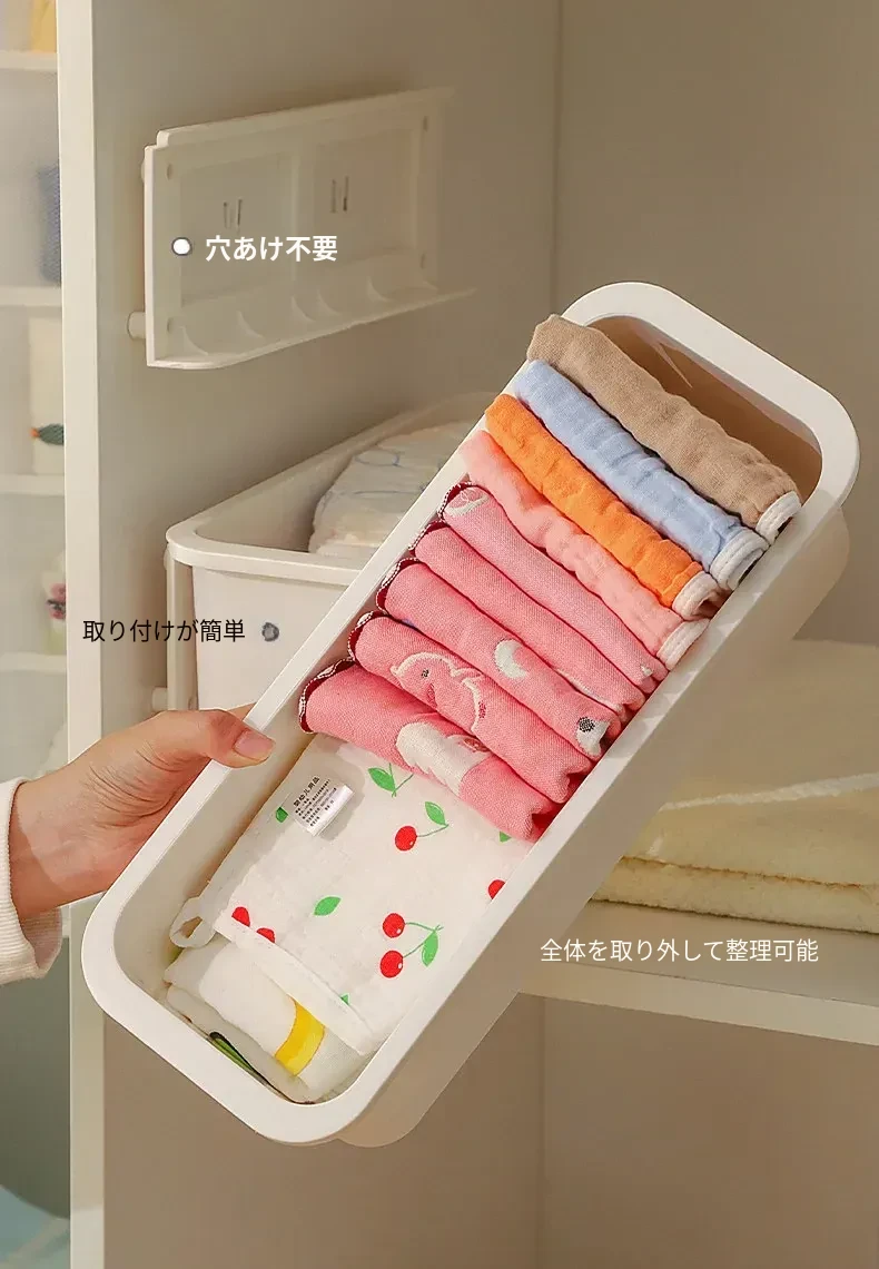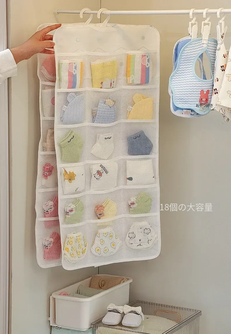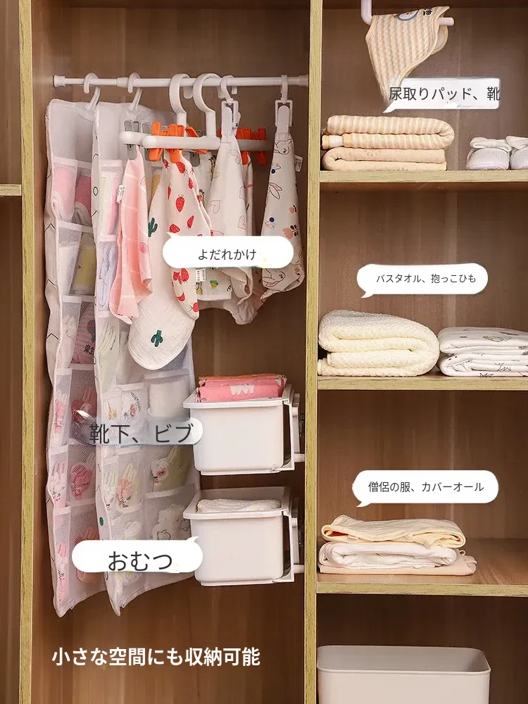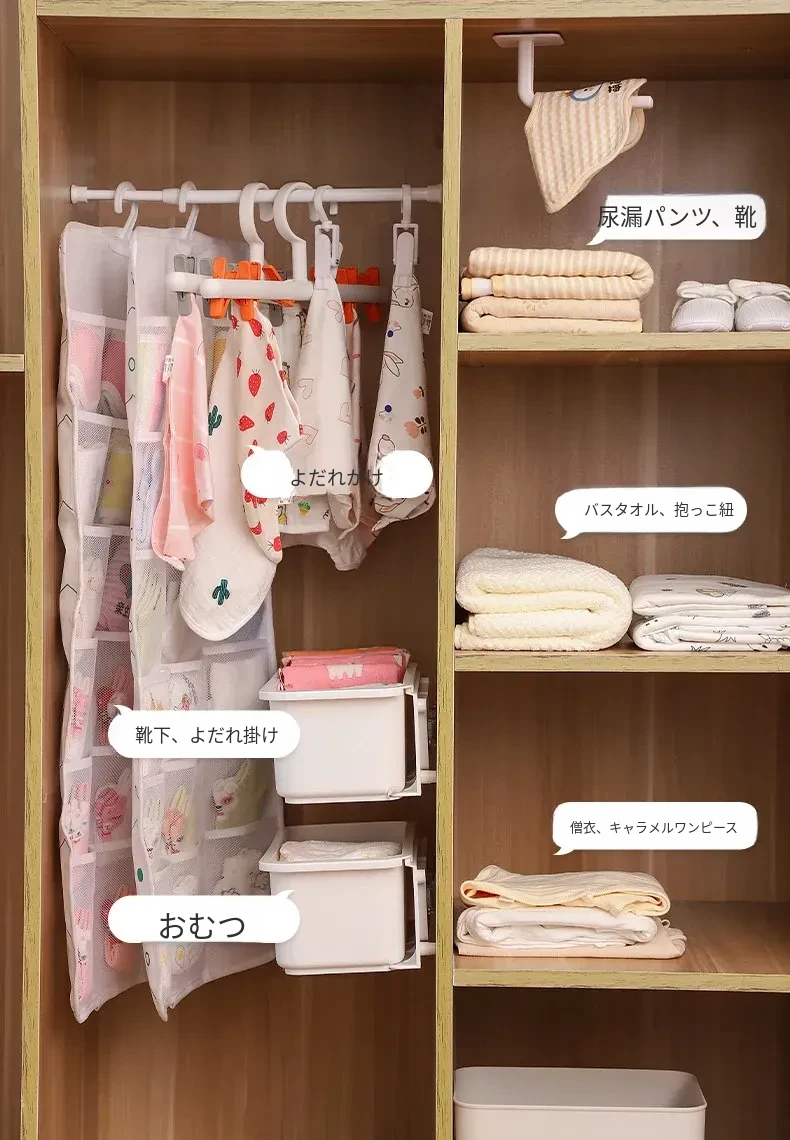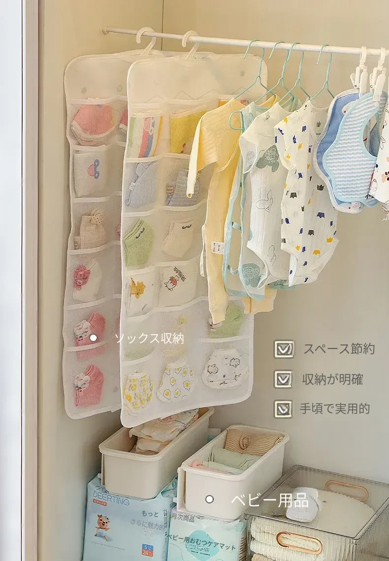 赤ちゃん用衣類収納ボックス - 掛けられる便利な無穴収納!お洒落なデザインで、よだれかけや靴下をスッキリ整理。お部屋を広く使える、育児をもっと楽にする必需品!