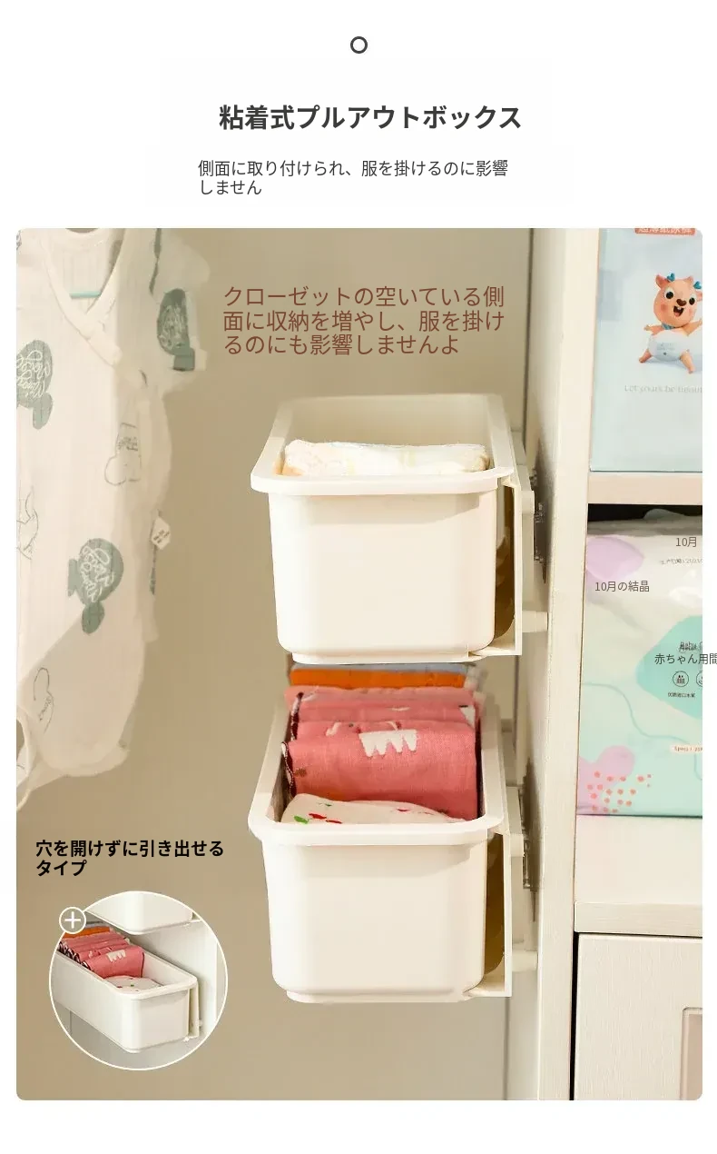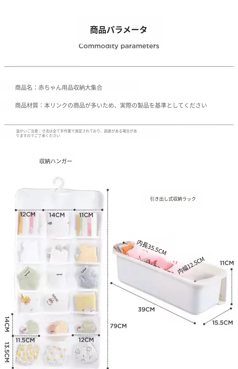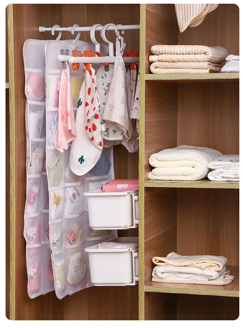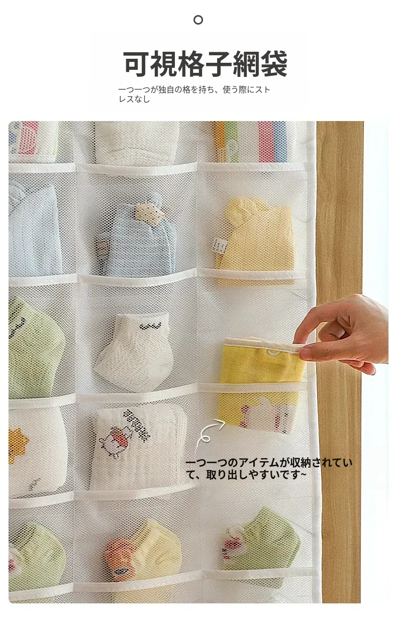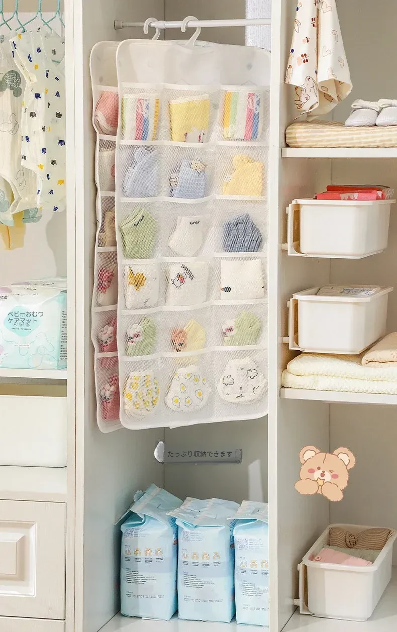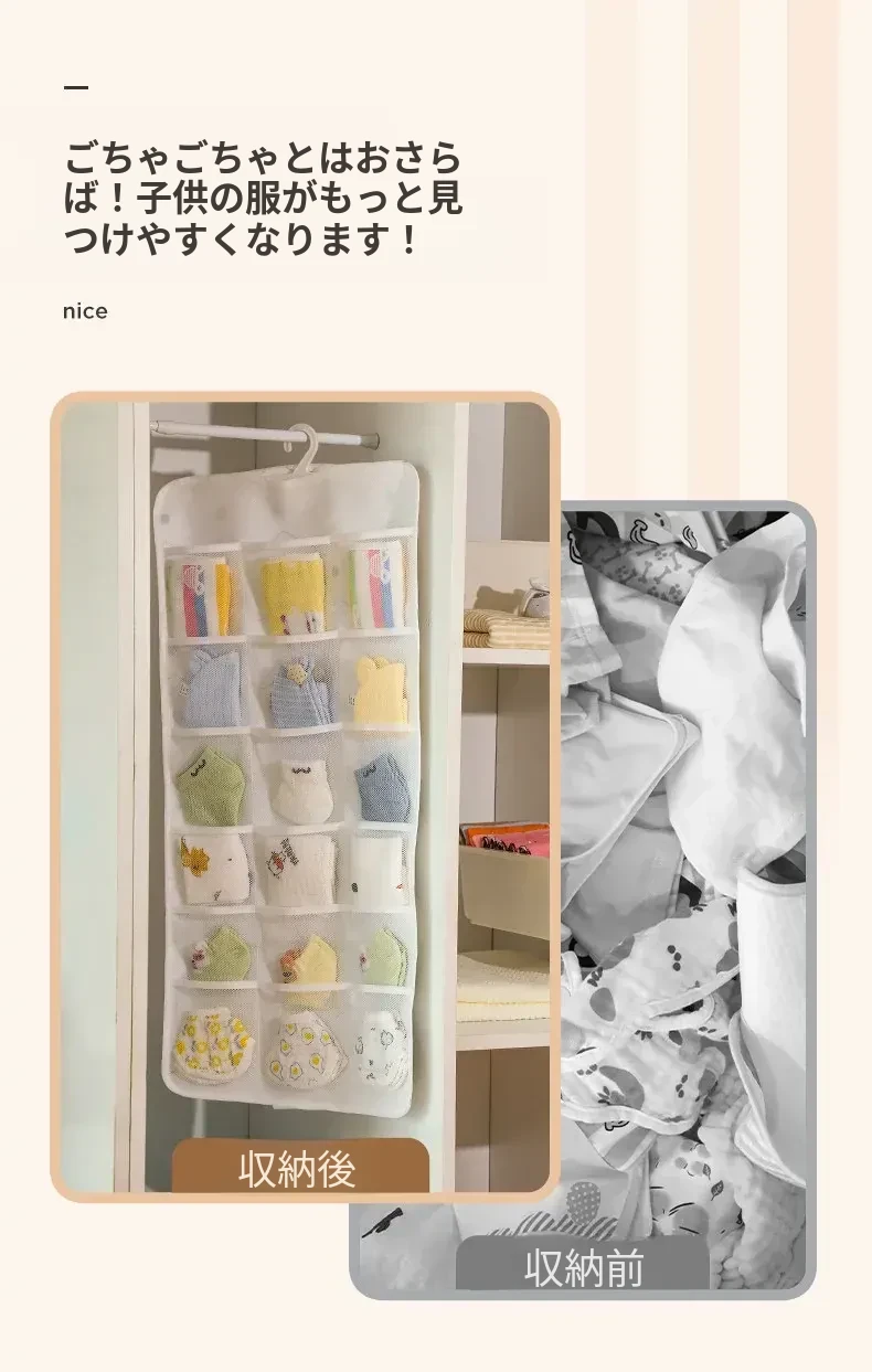 赤ちゃん用衣類収納ボックス - 掛けられる便利な無穴収納!お洒落なデザインで、よだれかけや靴下をスッキリ整理。お部屋を広く使える、育児をもっと楽にする必需品!