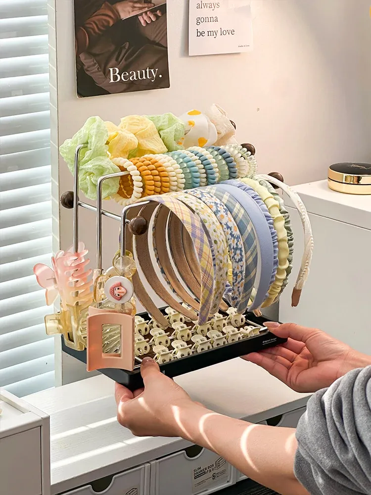 Children's Hair Accessories Organizer - Headbands, Hair Ties, Clips, and Shark Clips Storage Rack with Large Capacity Jewelry Display Stand