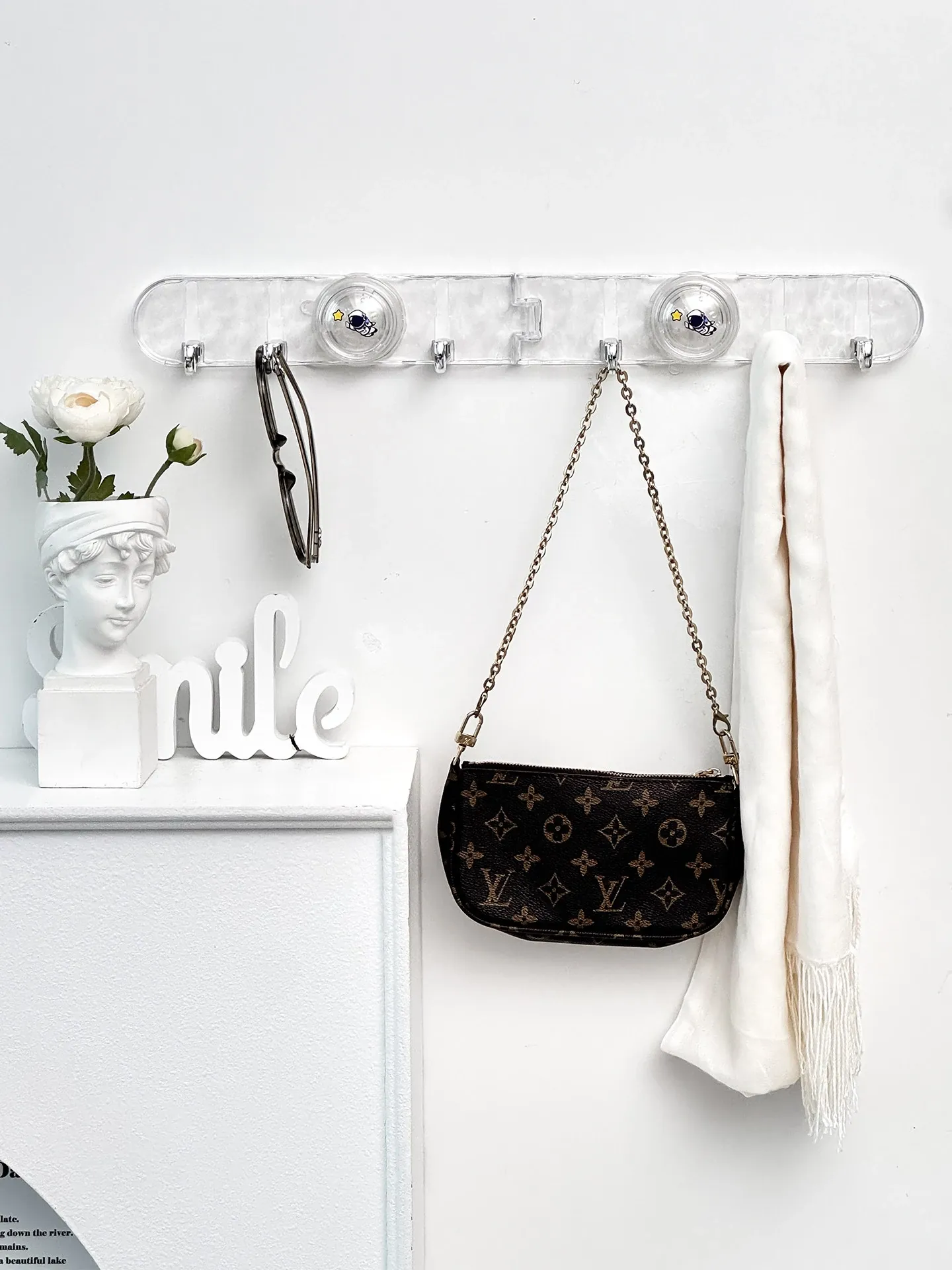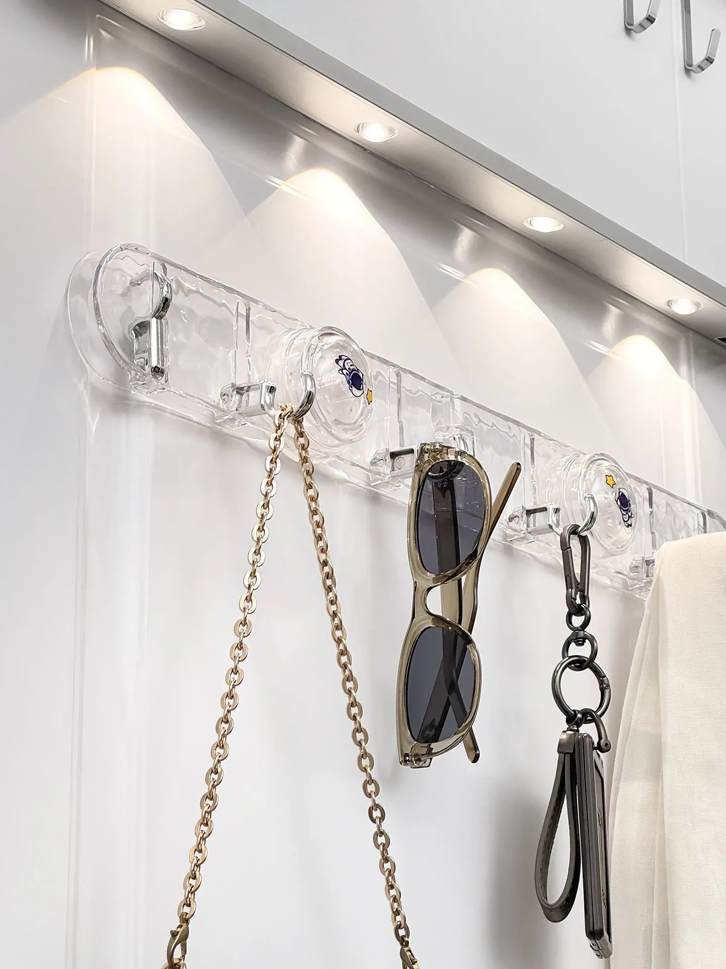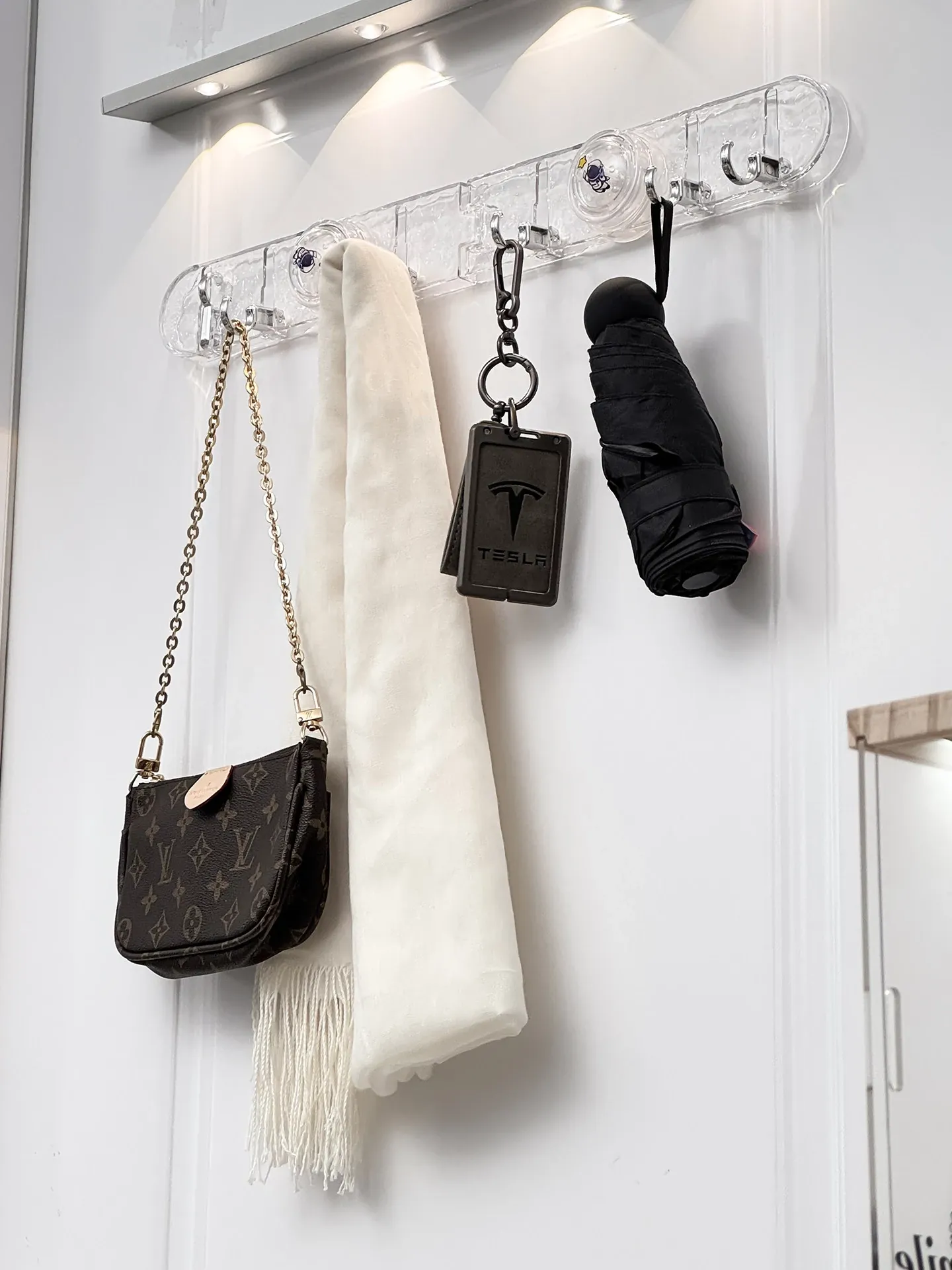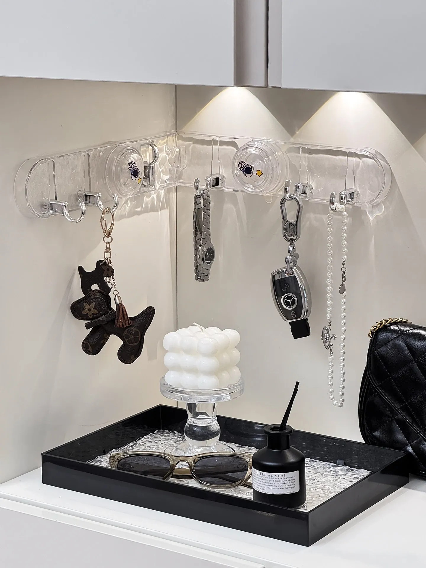 玄関用吸盤型コーナー連結フック!入室ドアの裏に隠せる折りたたみ式収納ラックで、鍵や帽子をスッキリ整理。スペースを有効活用して、すっきりした玄関を実現!