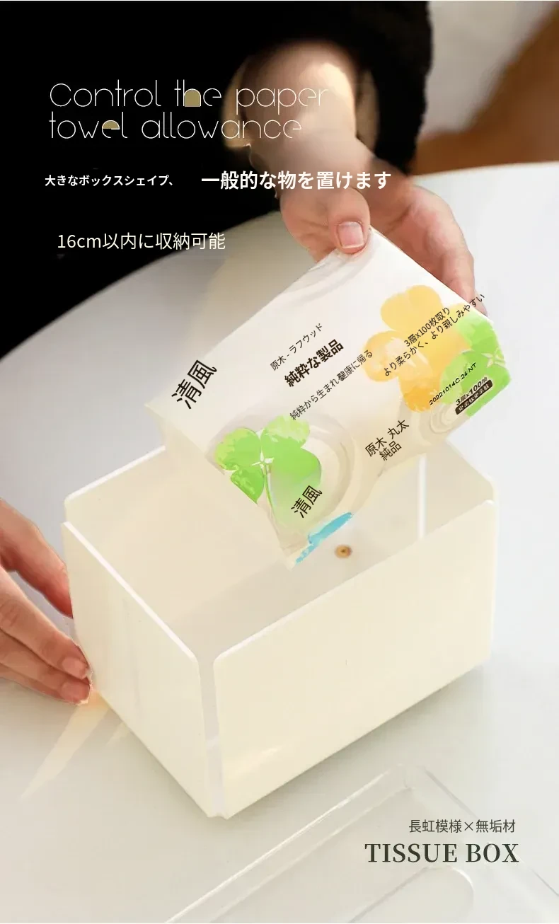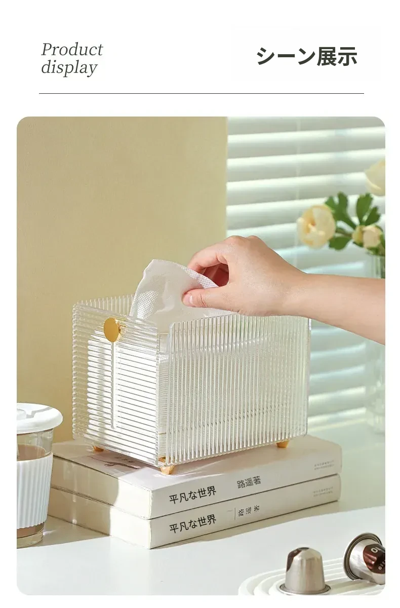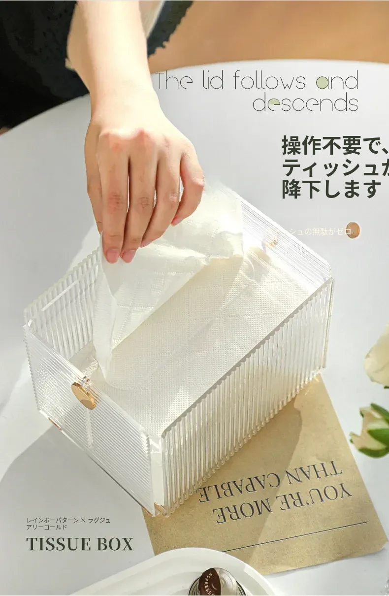 おしゃれなアクリル製ティッシュボックス|リビングやトイレに最適な収納ソリューション|洗顔タオルやナプキンもスッキリ整理!
