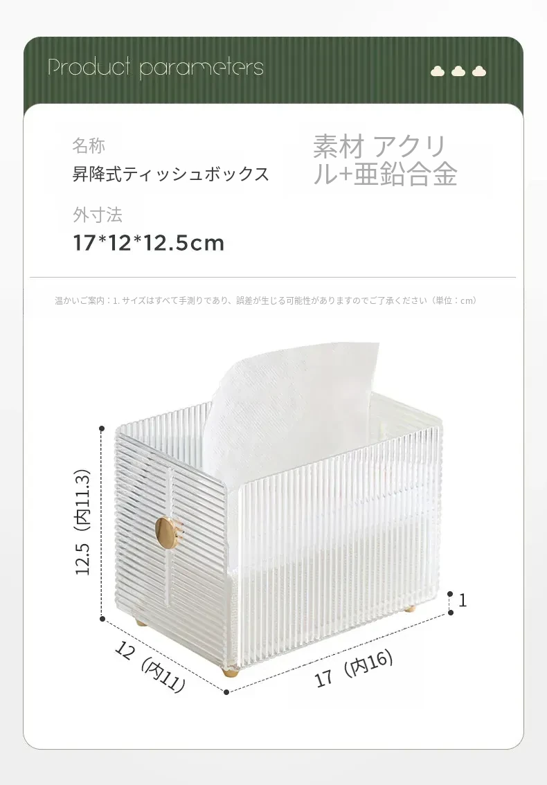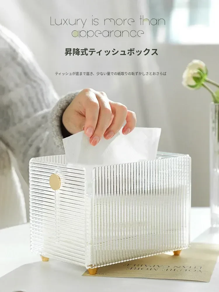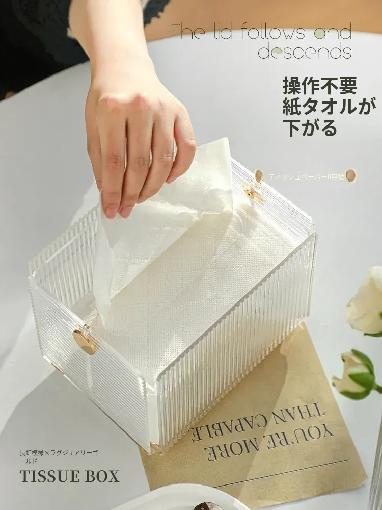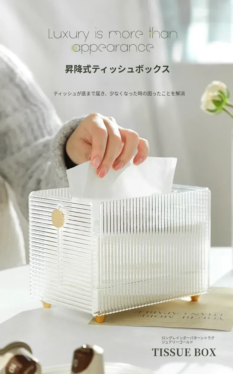おしゃれなアクリル製ティッシュボックス|リビングやトイレに最適な収納ソリューション|洗顔タオルやナプキンもスッキリ整理!