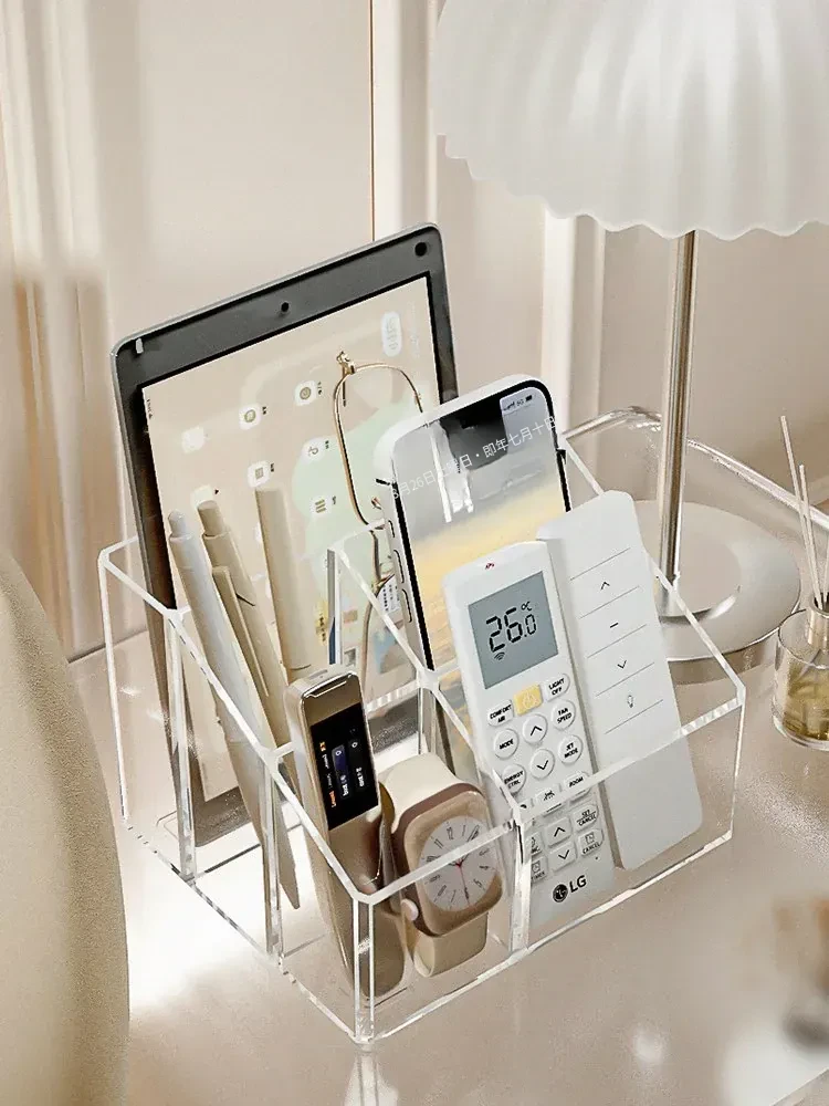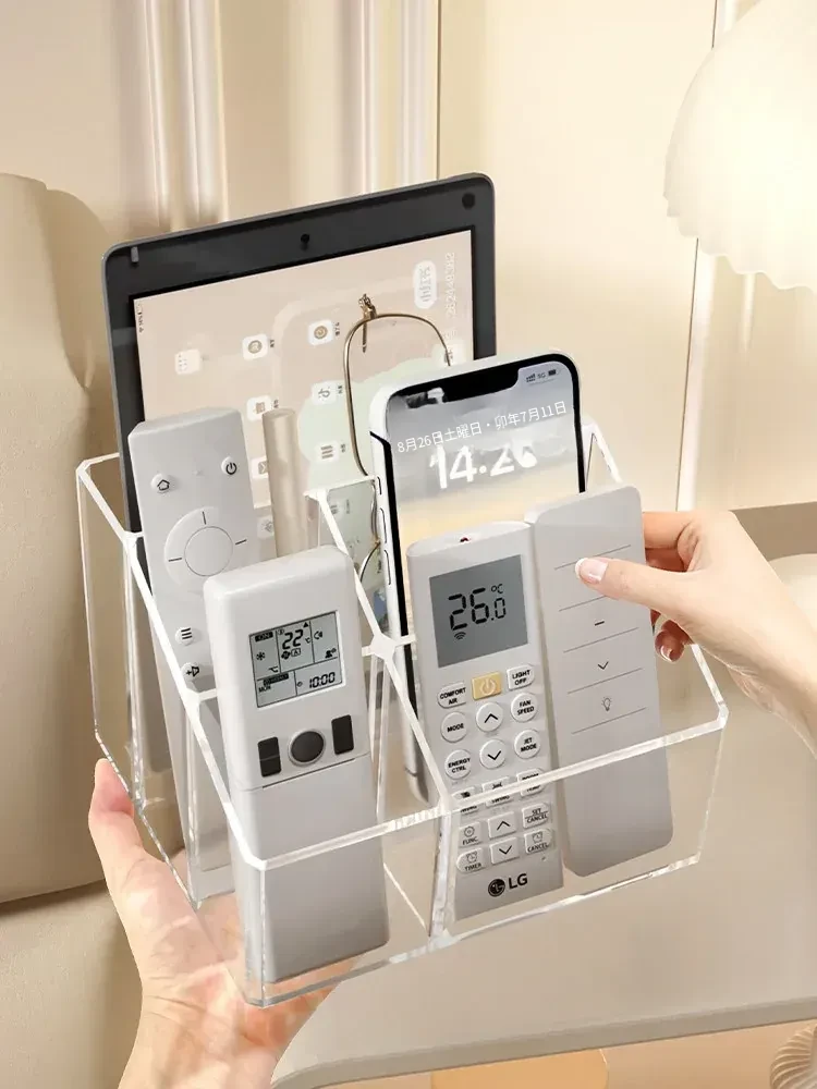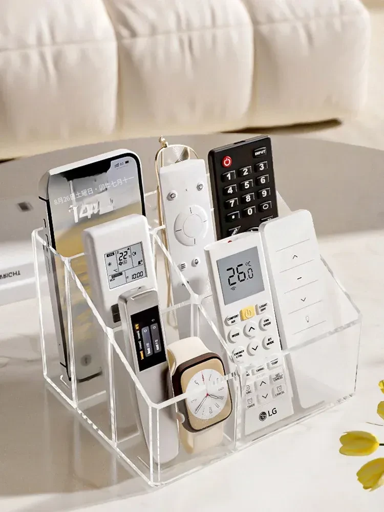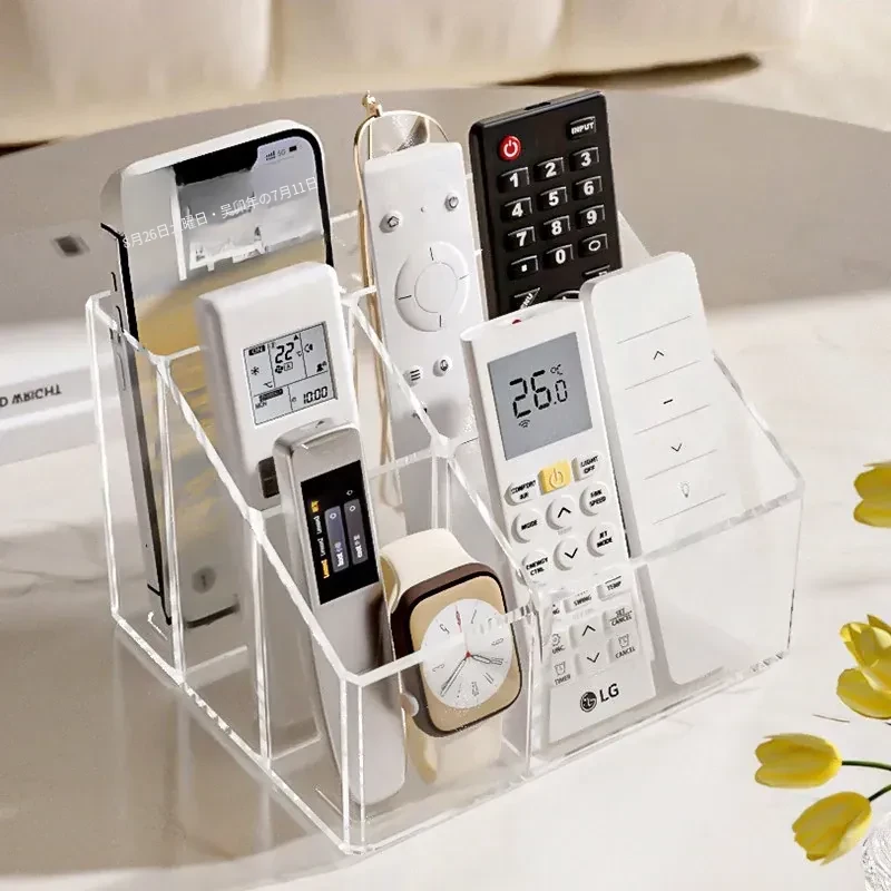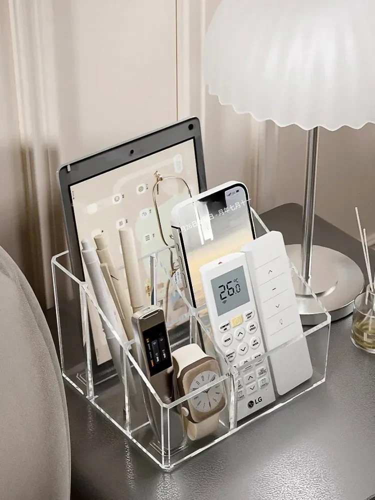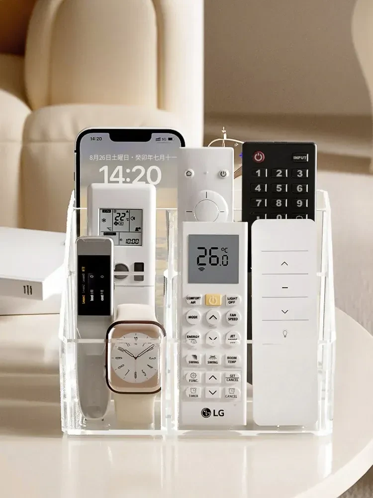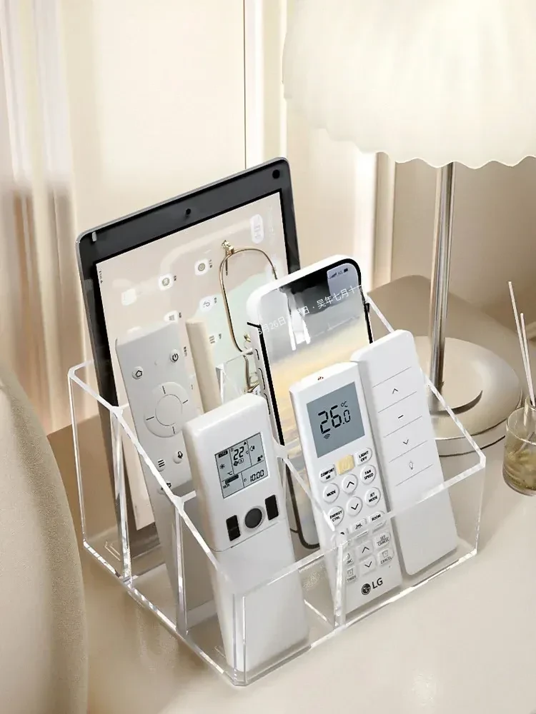 リモコン収納ボックス - リビングにぴったりのクリエイティブな仕切り付き!テレビやエアコンのリモコンをスッキリ整理。ベッドサイドにも最適な多機能ラックで、生活空間をもっと便利に!
