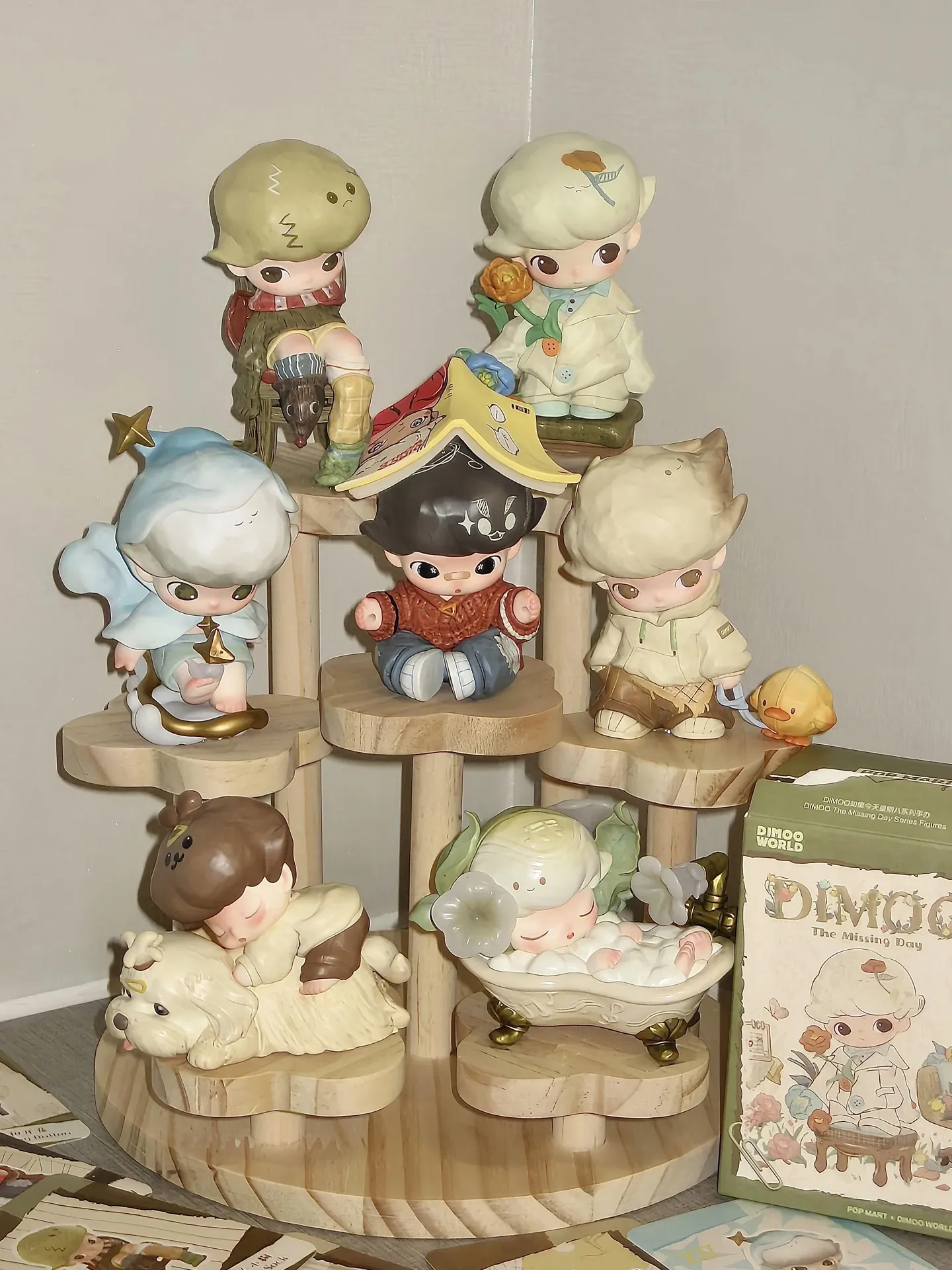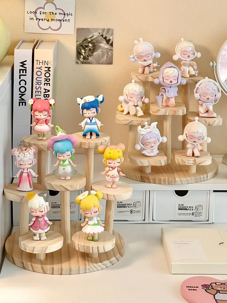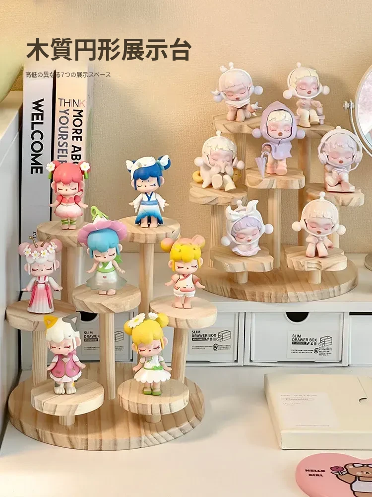 DIMOOコレクション用階段式ディスプレイラック - おしゃれな木製の盲箱収納で、あなたのフィギュアを魅力的に飾ろう!収納と展示を兼ね備えたアイテムで、部屋をスタイリッシュに演出します。